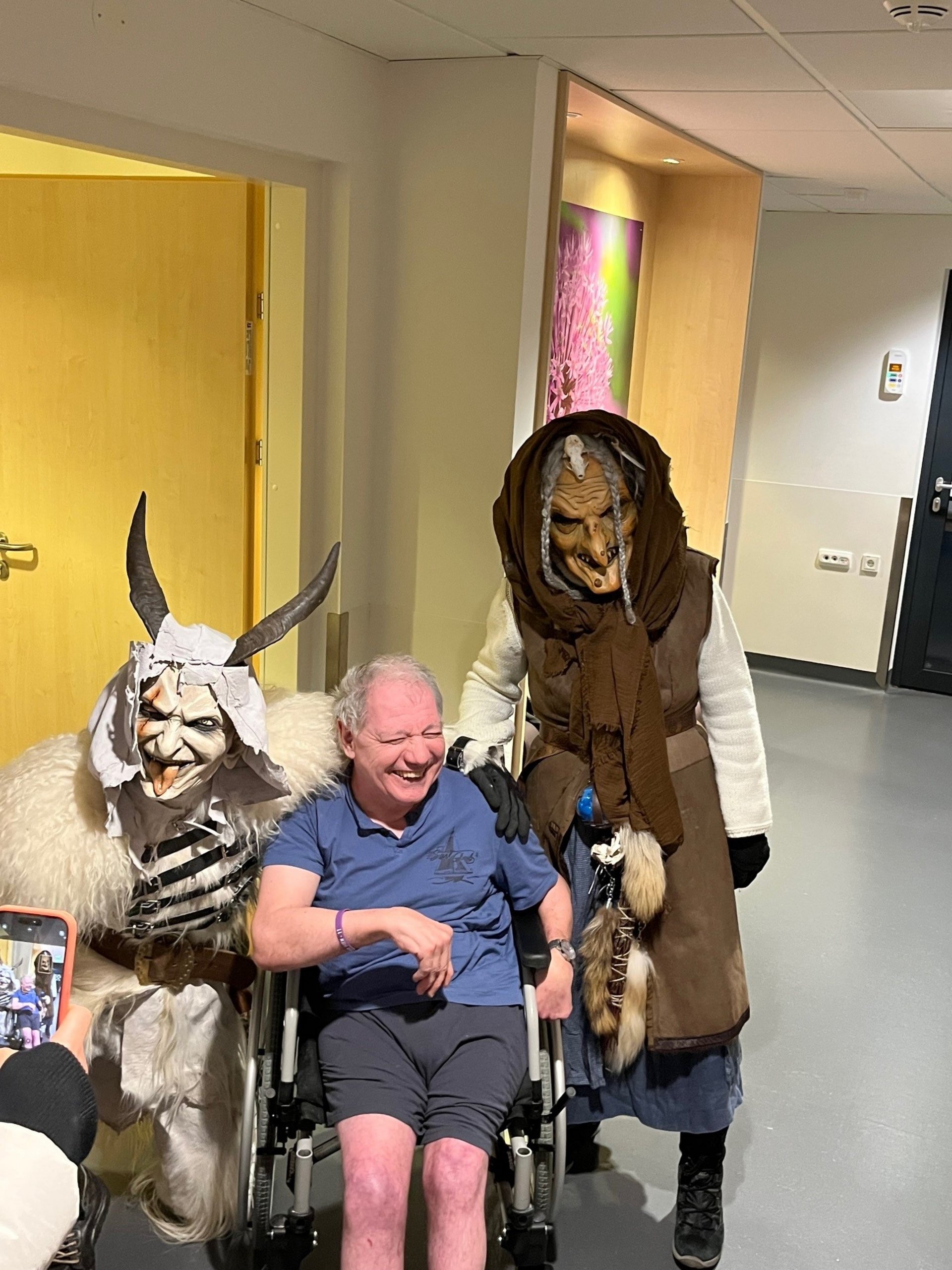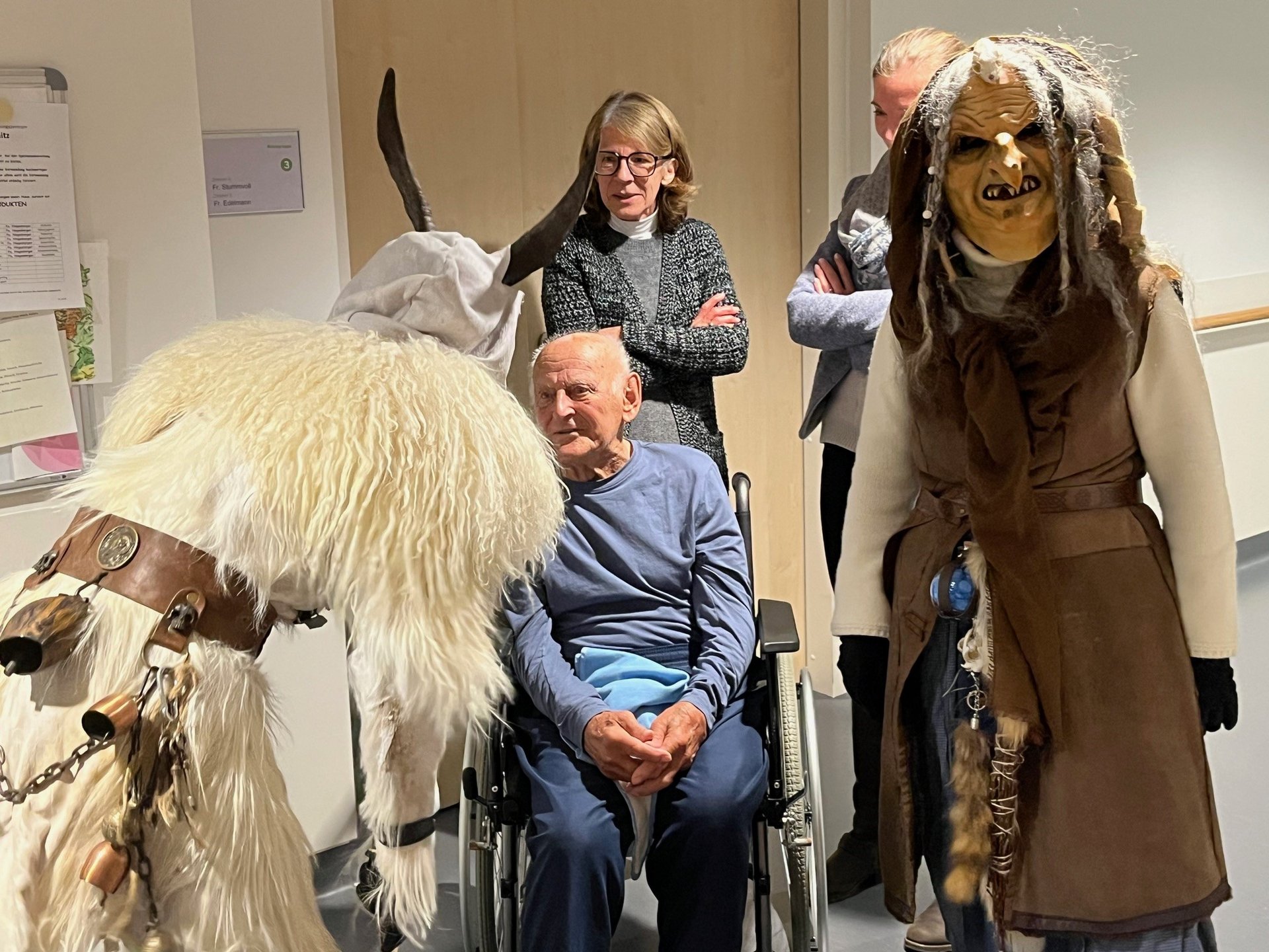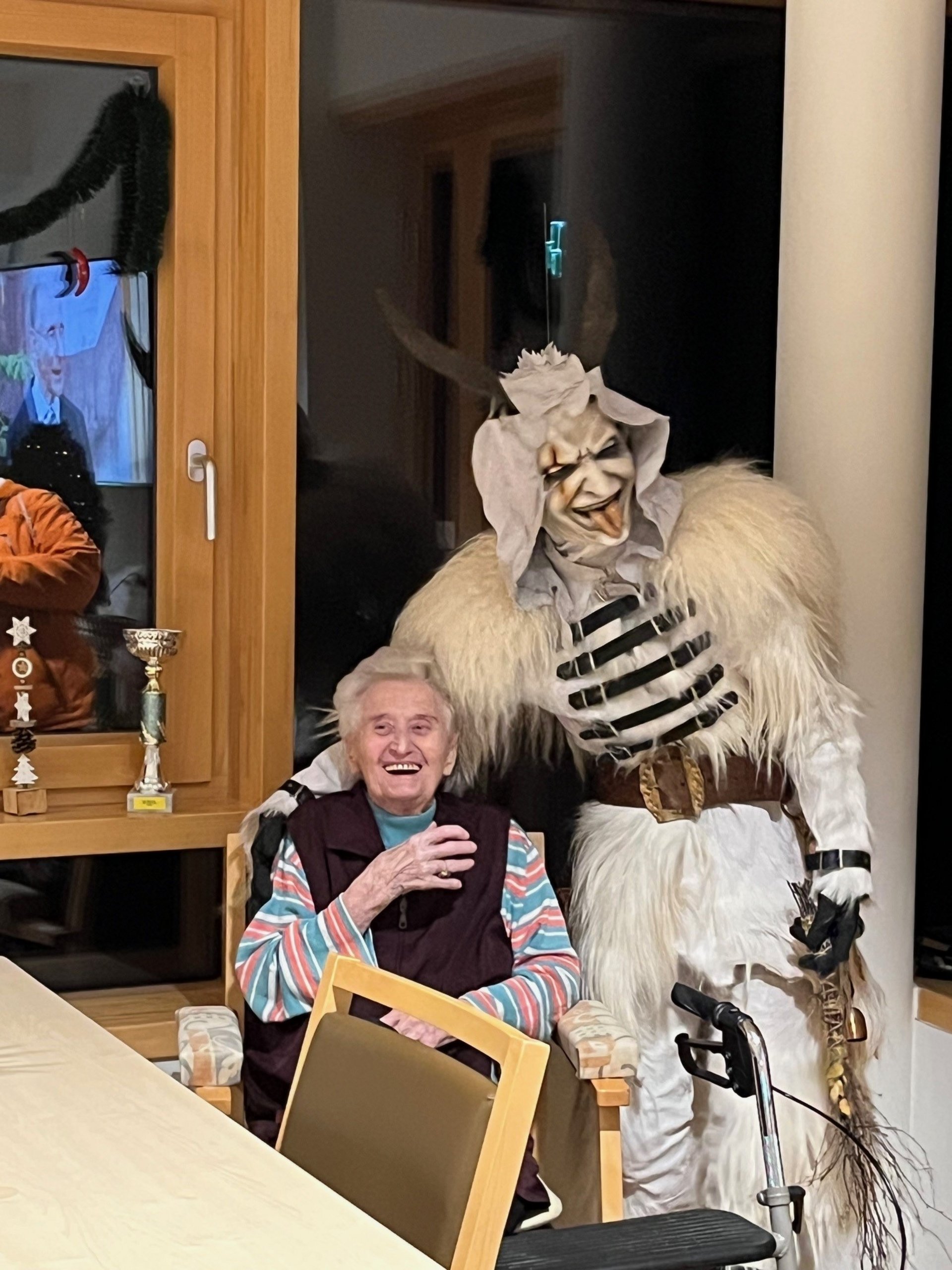 D'Schrambäcka Stointeifen sorgten gegen 17:00 Uhr für Staunen und Begeisterung. Zuerst verbreiteten sie vor dem PBZ Angst und Schrecken, im Anschluss begleiteten sie uns sogar noch ins Haus, um auch den Bewohnerinnen und Bewohnern eine kleine Überraschung zu bereiten – vielleicht ein wenig Schrecken, aber vor allem sehr viel Freude!