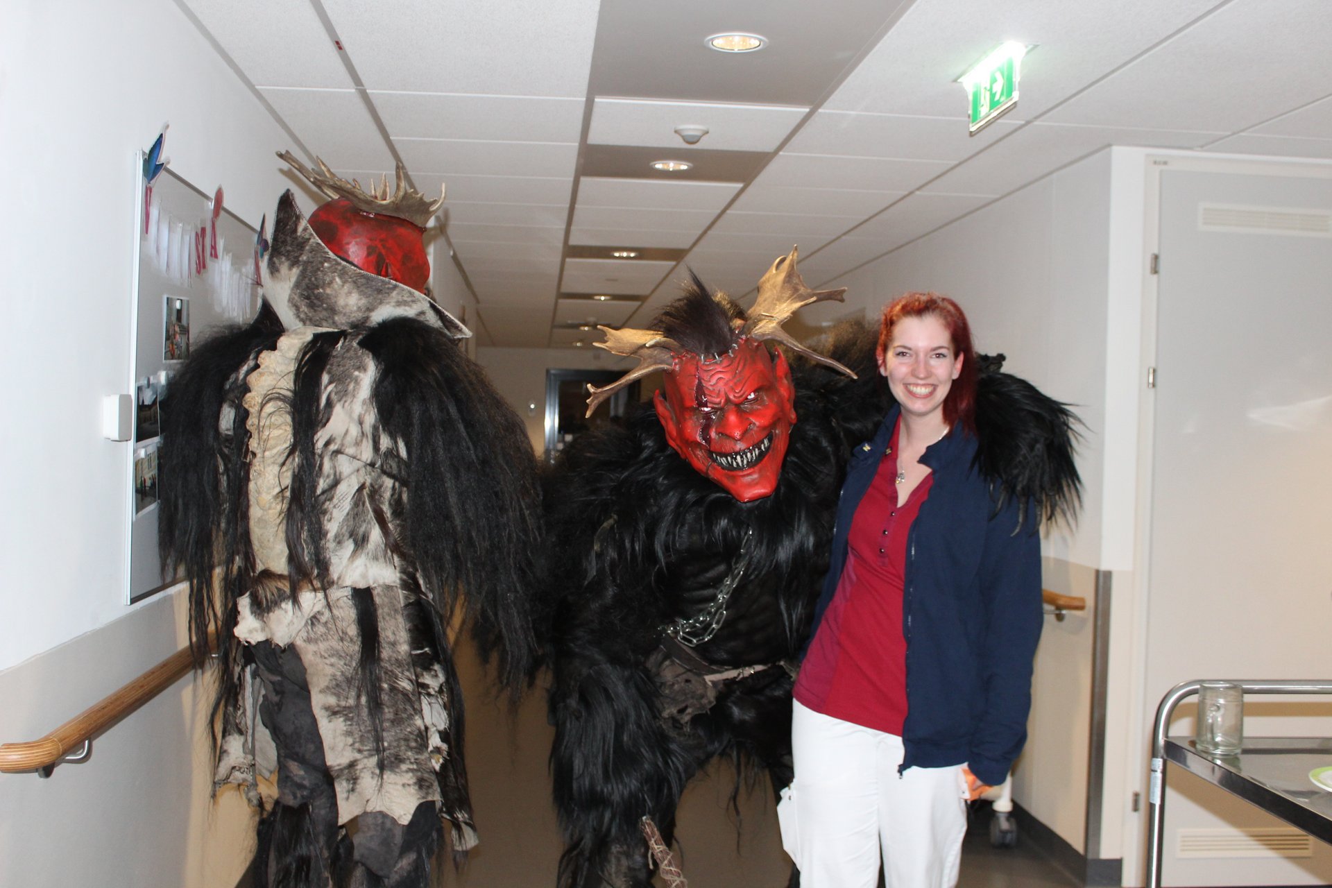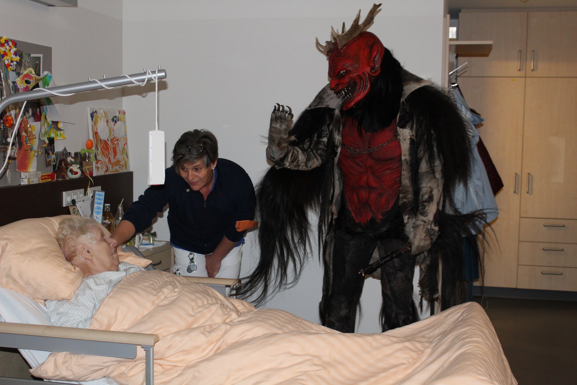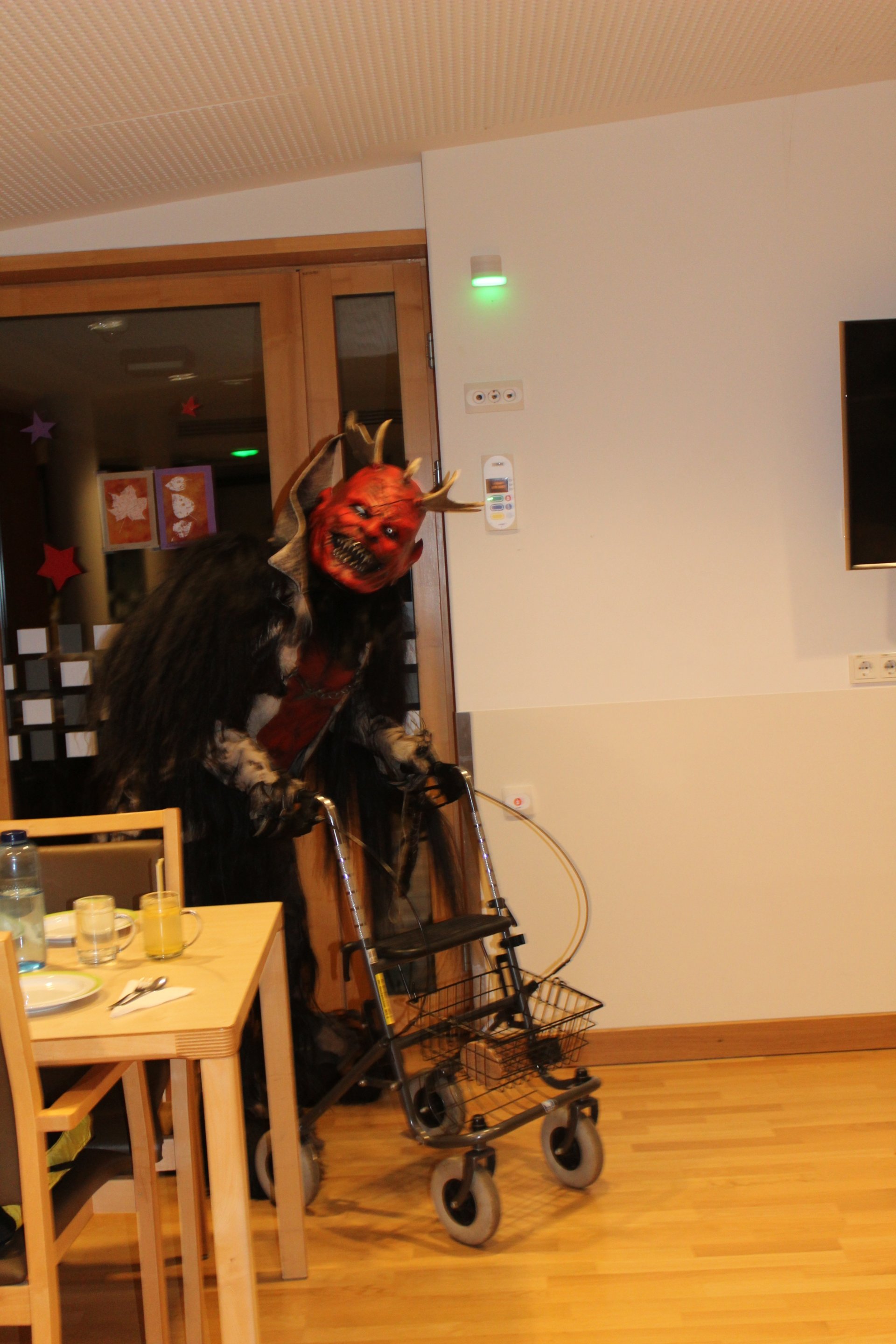 Am 2.12.2022 heizten die Krampusse von Mantus Pass den Besucherinnen und Bewohnern unseres Adventmarktes kräftg ein. Bereits am Nachmittag startete das rege Treiben bei den selbstgestalteten Weihnachtsbastelein unserer BewohnerInnen, diese konnten im Eingansbereich des PBZ bestaunt und erworben werden, ebenso frischer Honig der Imkerei Ritzengruber. Am Vorplatz gab es ein gemütliches Beisammensein bei Punsch der Marktgemeinde Türnitz und belegten Broten aus der Küche des PBZ Türnitz. Am frühen Abend kam dann die Krampustruppe aus Hainfeld und feuerte die Stimmung an. Natürlich statteten sie auch den BewohnerInnen die im Haus blieben einen kleinen Besuch ab.