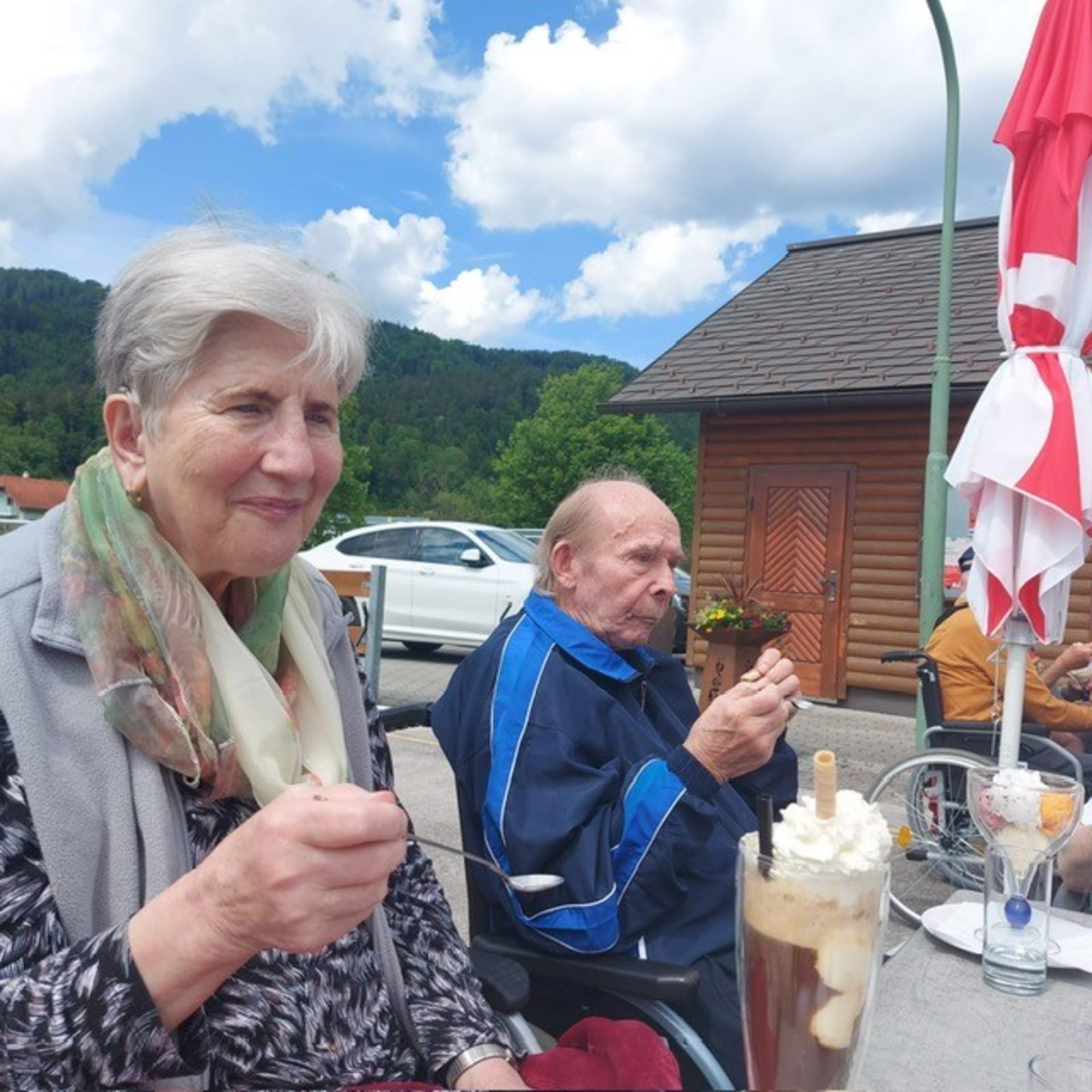 An warmen Tagen darf natürlich eines nicht fehlen: ein leckeres Eis! Unsere Ehrenamtlichen begleiten regelmäßig kleine Ausflüge, bei denen gemeinsam geschlemmt, gelacht und geplaudert wird. Diese süßen Auszeiten sind für viele ein echtes Highlight und bieten eine willkommene Gelegenheit zum Austausch in entspannter Atmosphäre.
