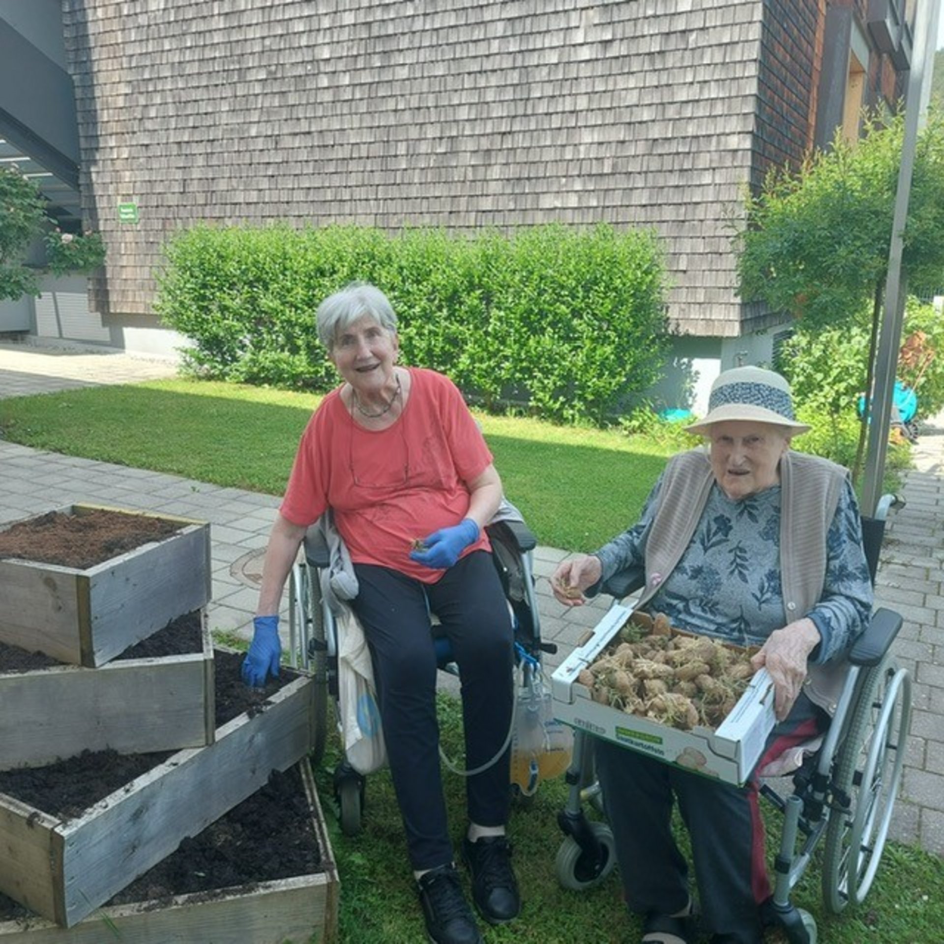 Wenn die Sonne lacht, zieht es viele nach draußen – auch unsere Bewohnerinnen und Bewohner. Dank der tatkräftigen Unterstützung unserer Ehrenamtlichen wird der Garten des PBZ Türnitz jedes Jahr liebevoll für den Sommer vorbereitet. Gemeinsam werden Beete gepflegt, Blumen gesetzt und sogar Erdäpfel gepflanzt. Das gemeinsame Gärtnern weckt Erinnerungen, stärkt das Gemeinschaftsgefühl und bringt frisches Leben in unseren Alltag. Und wenn die ersten Erdäpfel geerntet werden können, ist der Stolz bei allen Beteiligten groß!