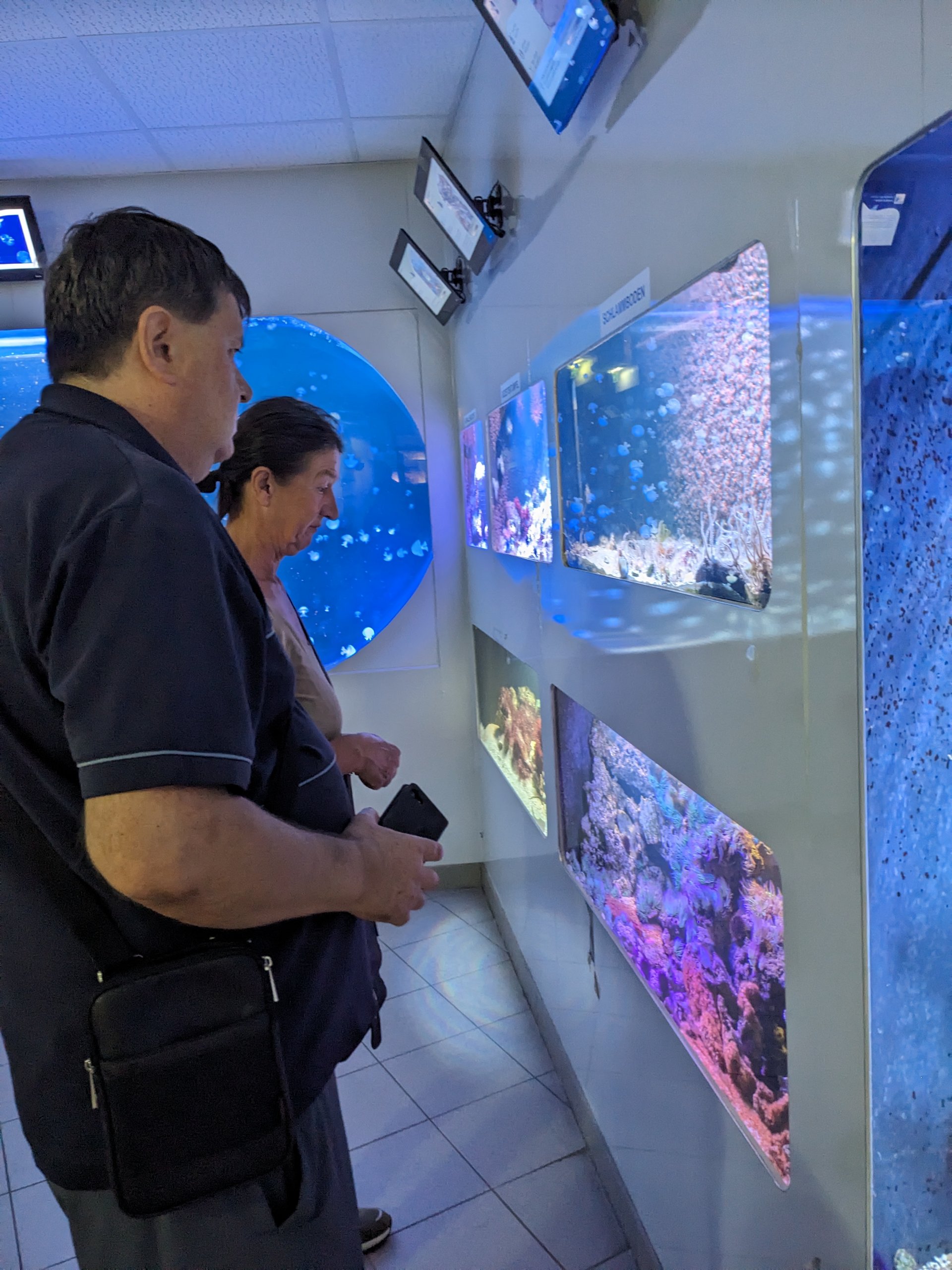 Am 27.09.2023 machten einige unserer Bewohnerinnen und Bewohner, gemeinsam mit Mitarbeiterinnen und Mitarbeitern, sowie ehrenamtlichen Mitarbeiterinnen und Mitarbeitern, einen Ausflug nach Wien. Dort besuchten sie das „Haus des Meeres“ in Mariahilf. In kleine Gruppen aufgeteilt erkundeten die Bewohnerinnen und Bewohner der WGs 3, 5 und 6 die faszinierende Unterwasserwelt. Auch der Tropenbereich mit den Affen wurde voller Begeisterung besucht. Bevor man aufbrach machten noch einige Bewohnerinnen und Bewohner einen kleinen Zwischenstopp im Souvenirgeschäft und holten sich kleine Andenken an einen gelungenen Ausflug. Danach wurde im lauschigen Gastgarten des Medl Bräu herzhaft zu Mittag gegessen. Auf dem Weg nach Hause freuten sich alle über einen kurzen Zwischenstopp in Hainfeld, dort konnte man sich im Kaffeehaus „Mein Kaffee“ noch einmal mit Kaffee, Kuchen und Eis stärken.