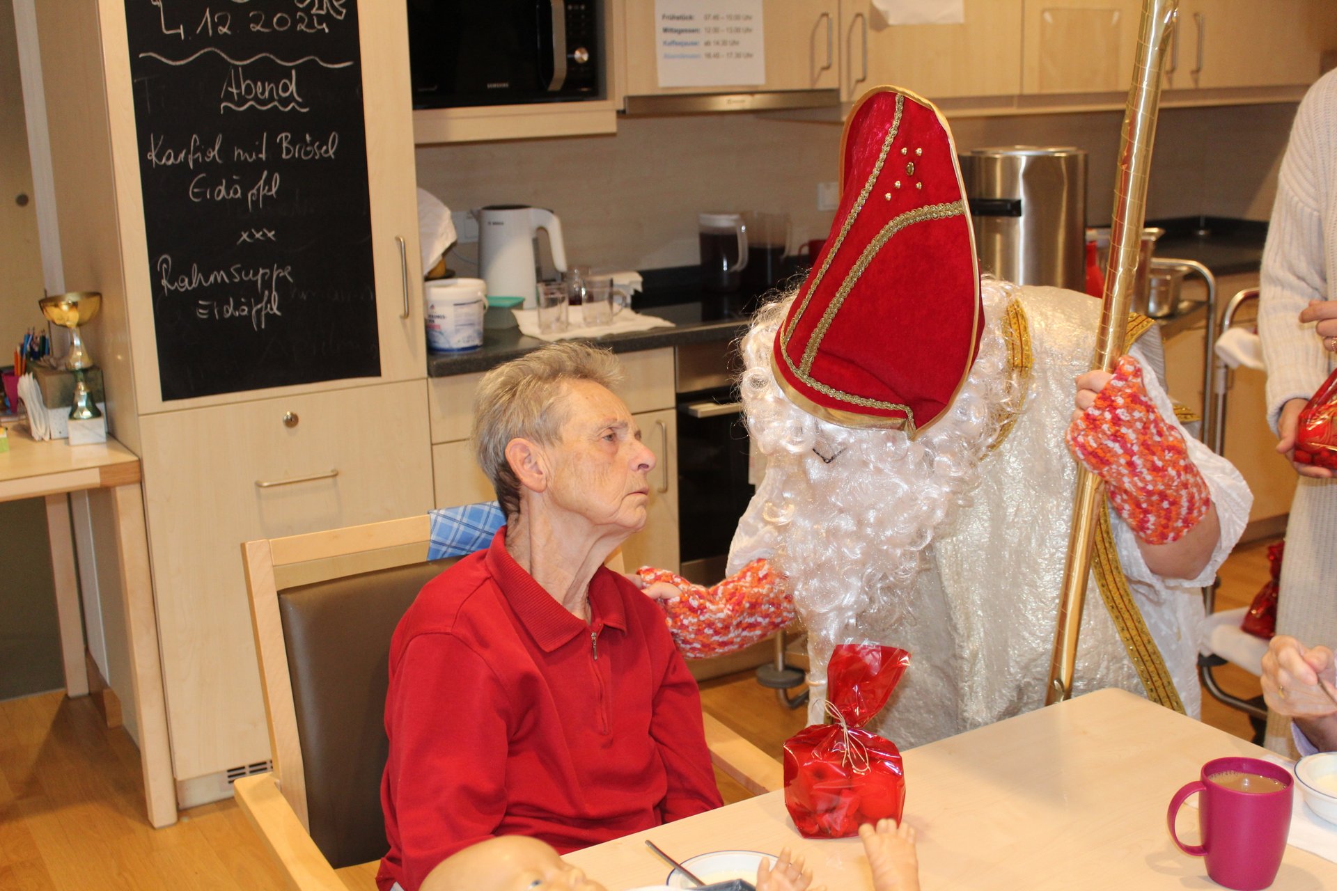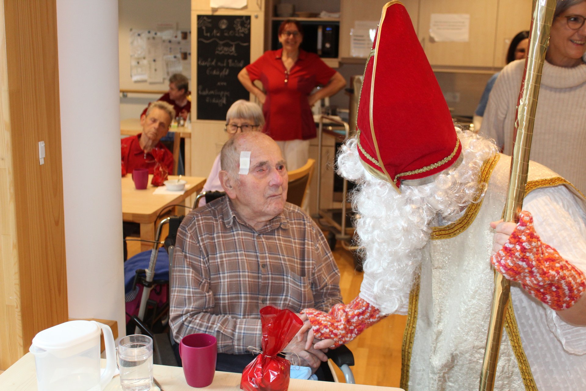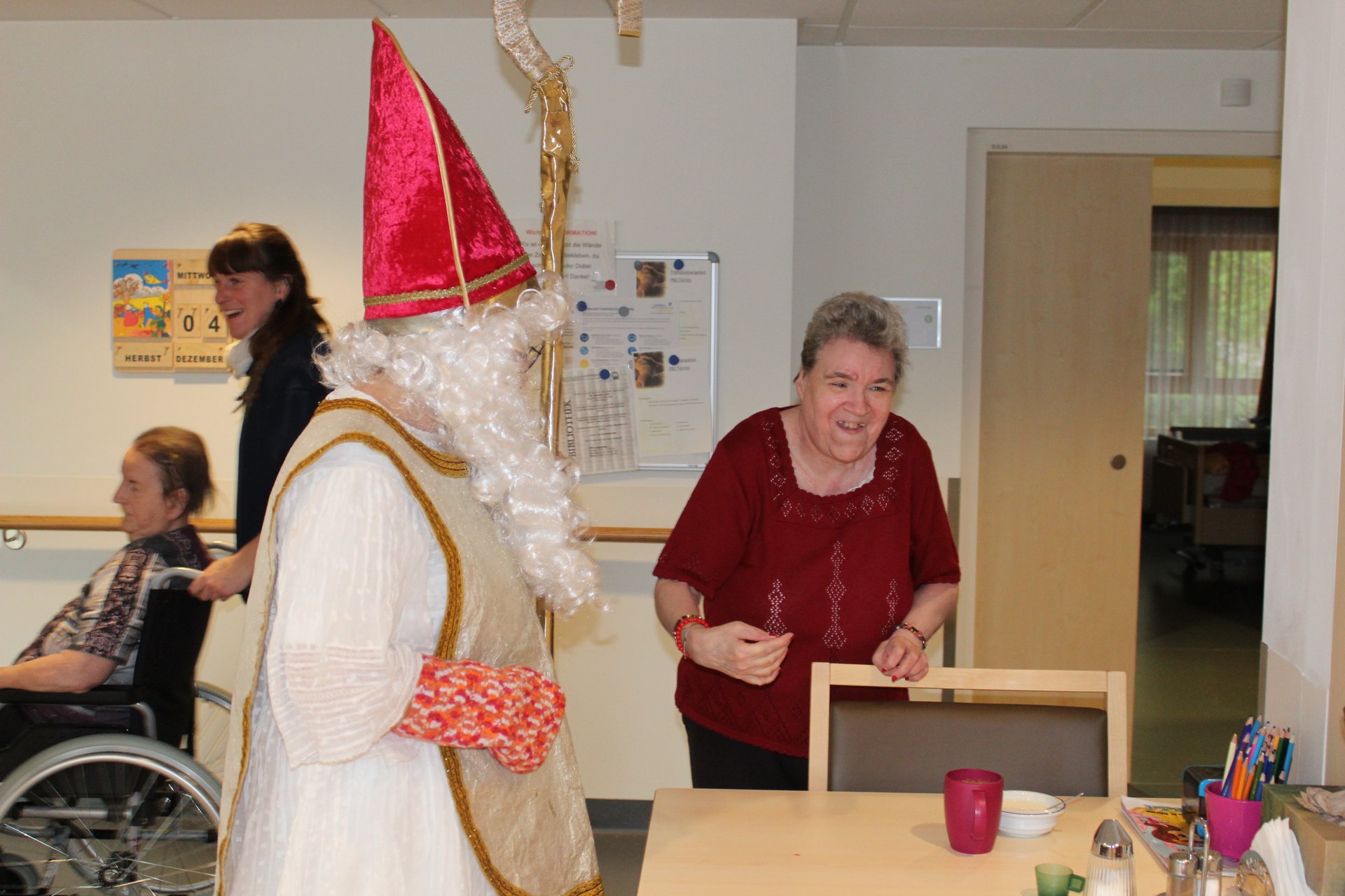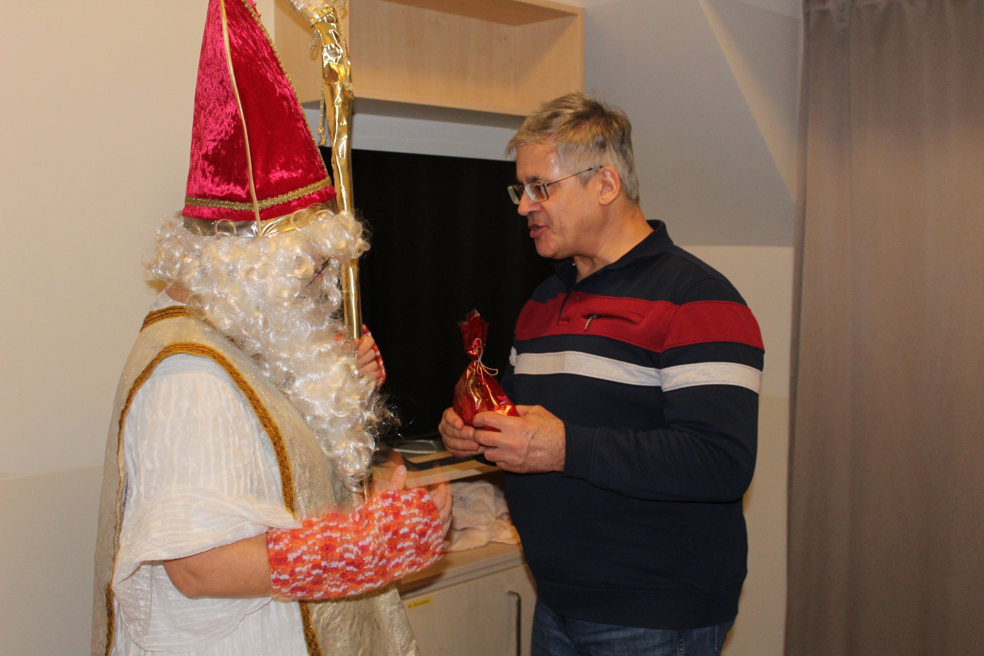 Unsere Bewohnerinnen und Bewohner füllten für den Nikolaus seine Geschenksackerl. Da er um diese Jahreszeit immer viel zu tun hat, setzten sich die netten und motivierten Helferlein zusammen und machten die Nikolosackerl für ihn fertig. So konnte der Nikolaus am 4. Dezember, zwar etwas verfrüht, aber schon heiß ersehnt, seine Sackerl an alle Bewohnerinnen und Bewohner mit voller Freude übergeben. Unsere Mitarbeiterinnen und Mitarbeiter bekamen neben einigen freundlichen Worten, auch ein Nikolaussackerl. Zwei Tage später, am 6. Dezember, besuchte der heilige Bischof den Kindergarten. Die Kindergartenkinder luden den heiligen Mann ein in ihrer Mitte Platz zu nehmen. Als Dankeschön für die Nikolaussackerl sangen sie ihm einige Lieder vor.