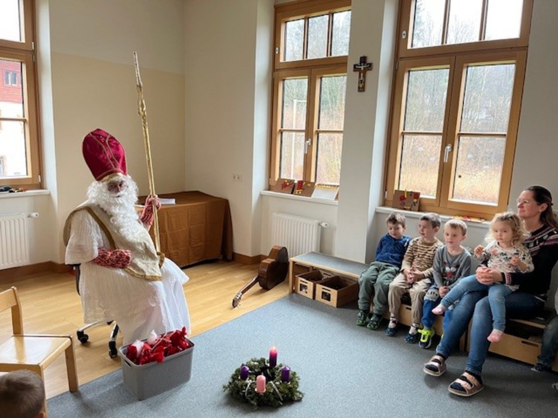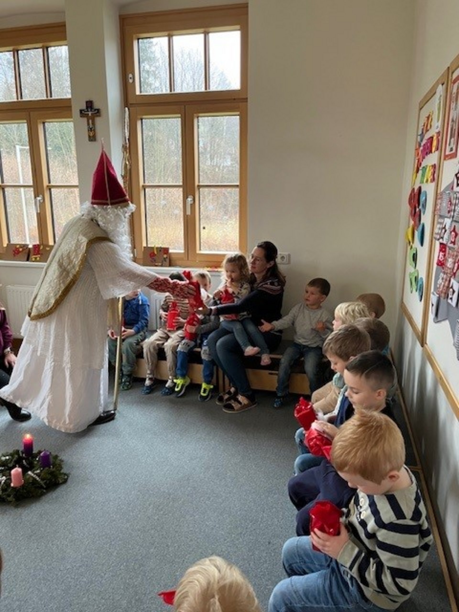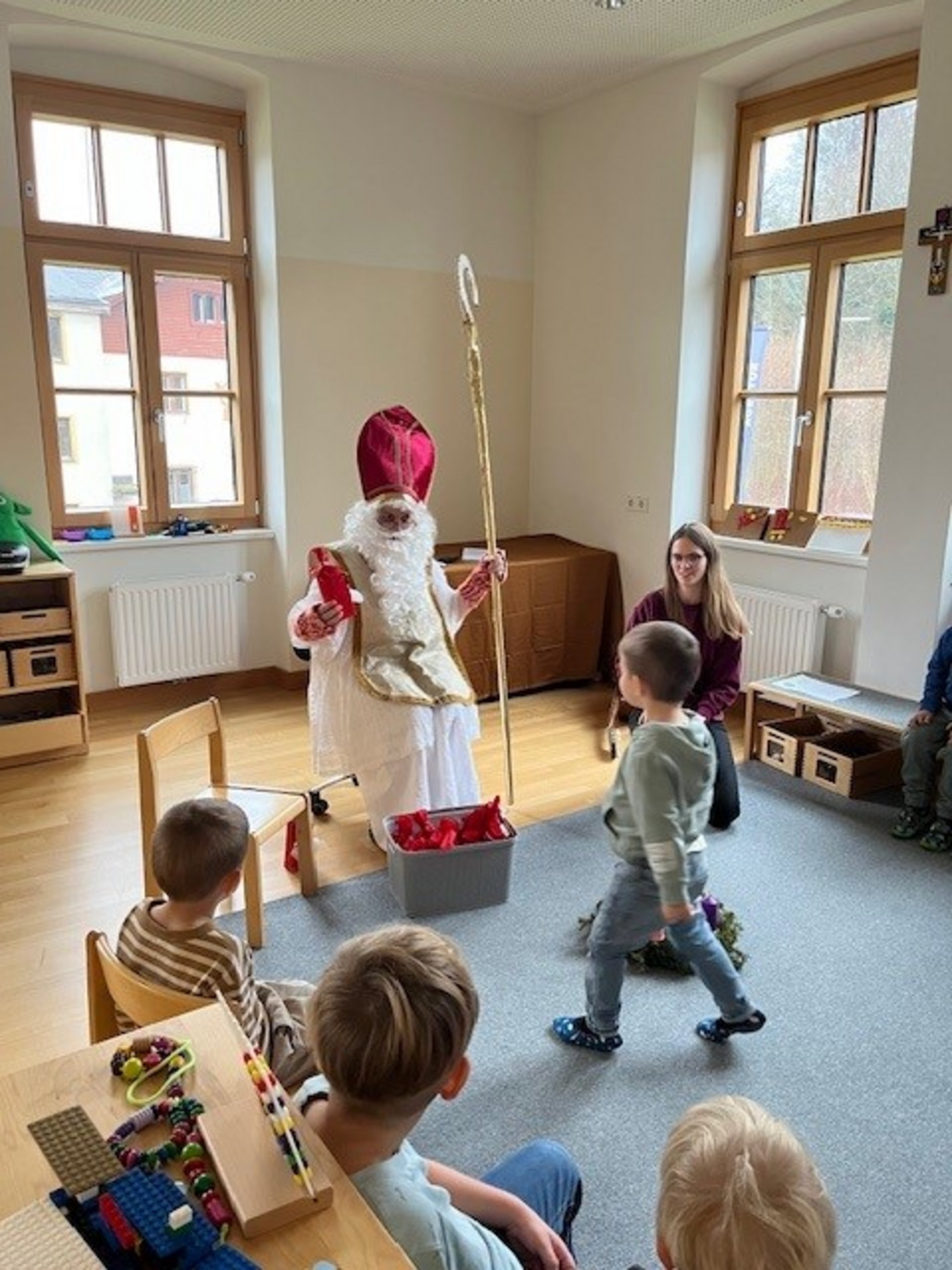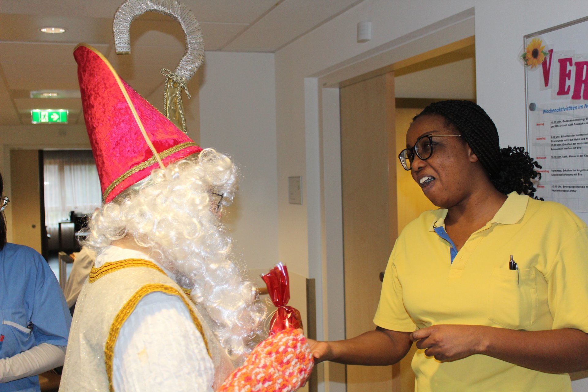 Unsere Bewohnerinnen und Bewohner füllten für den Nikolaus seine Geschenksackerl. Da er um diese Jahreszeit immer viel zu tun hat, setzten sich die netten und motivierten Helferlein zusammen und machten die Nikolosackerl für ihn fertig. So konnte der Nikolaus am 4. Dezember, zwar etwas verfrüht, aber schon heiß ersehnt, seine Sackerl an alle Bewohnerinnen und Bewohner mit voller Freude übergeben. Unsere Mitarbeiterinnen und Mitarbeiter bekamen neben einigen freundlichen Worten, auch ein Nikolaussackerl. Zwei Tage später, am 6. Dezember, besuchte der heilige Bischof den Kindergarten. Die Kindergartenkinder luden den heiligen Mann ein in ihrer Mitte Platz zu nehmen. Als Dankeschön für die Nikolaussackerl sangen sie ihm einige Lieder vor.