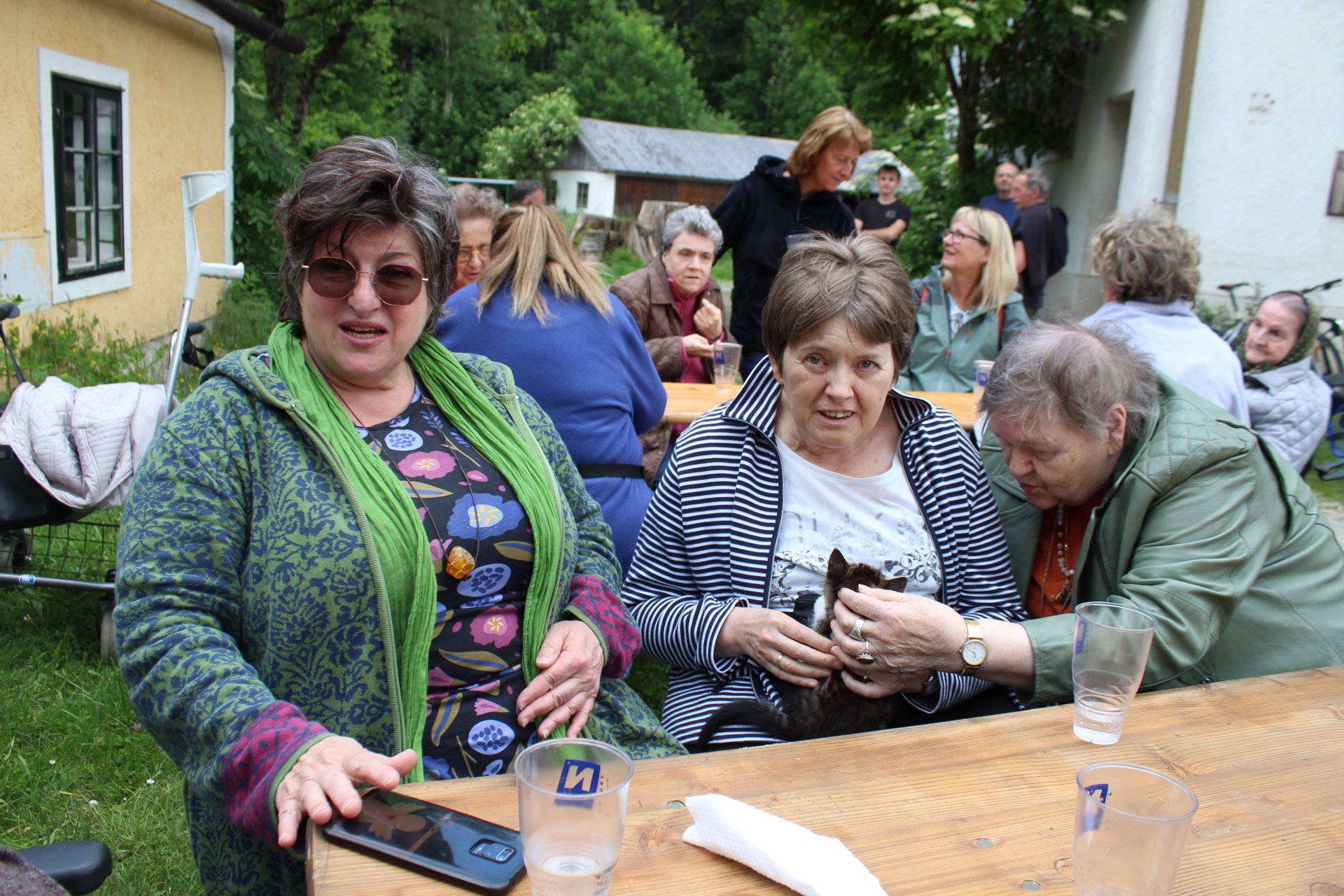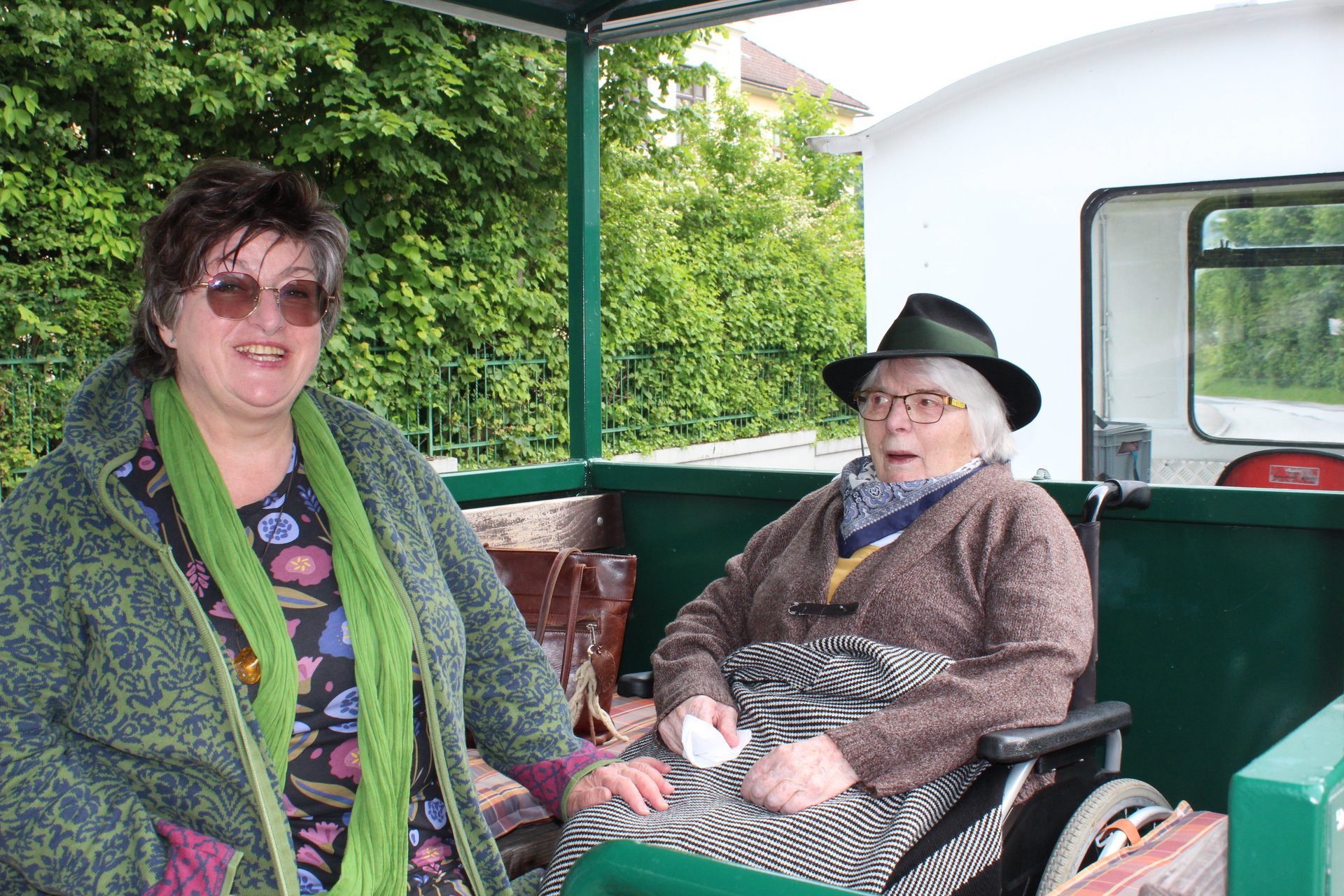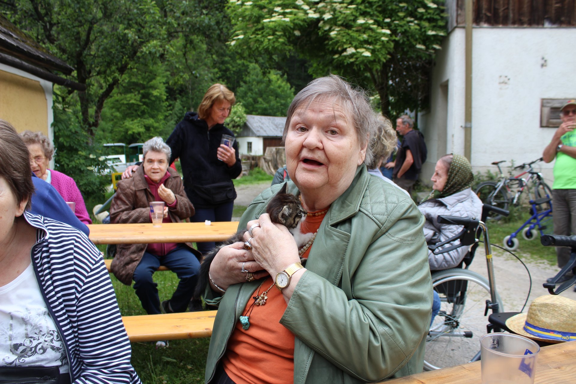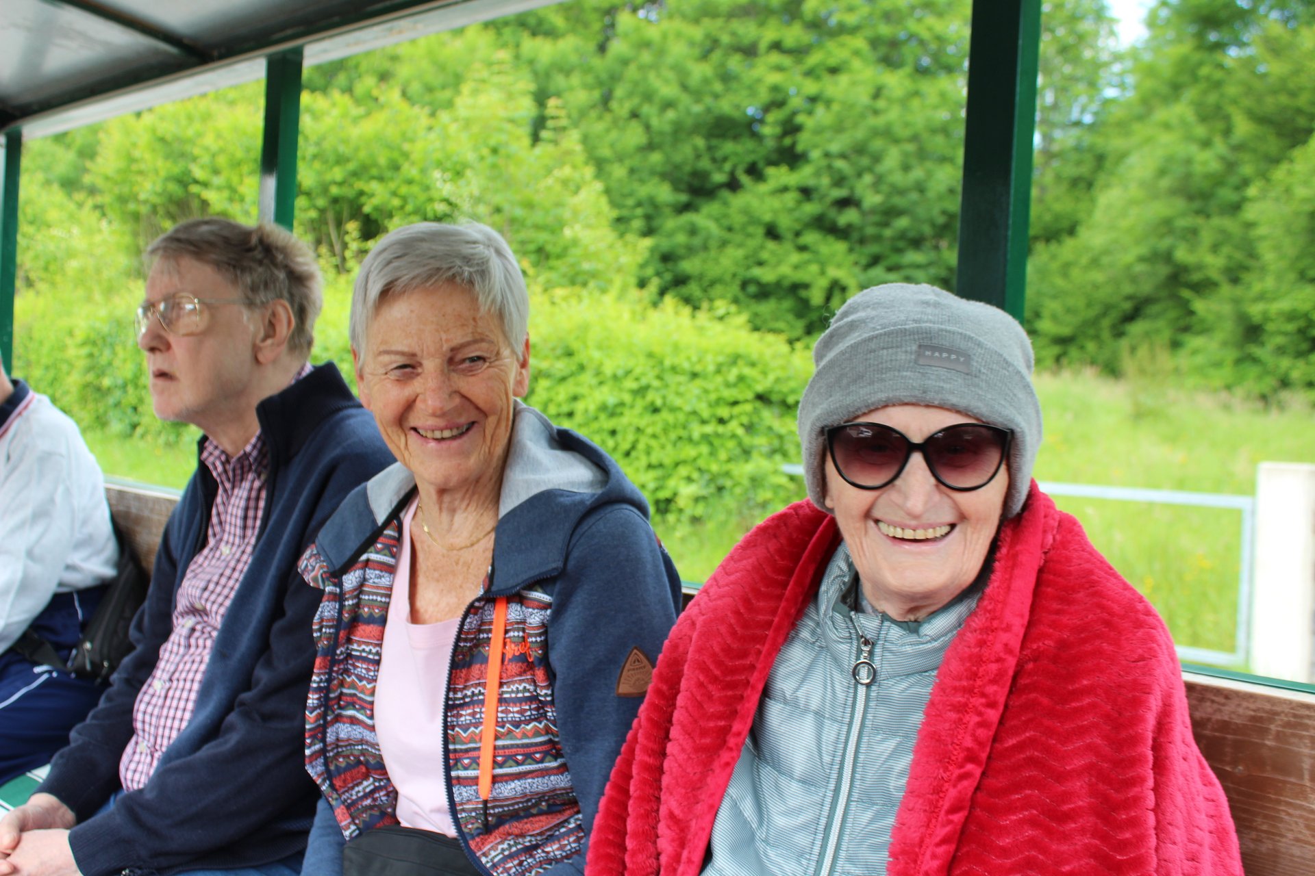 Am 14.06.2023 machten unsere Bewohnerinnen und Bewohner einen Ausflug mit dem Bummelzug. Die Bewohnerinnen und Bewohner, sowie ehrenamtliche Mitarbeiterinnen und Mitarbeiter wurden mit dem Bummelzug vor dem PBZ abgeholt. Unser erstes Ziel war der Traisengraben zur Fam. Anzberger (vulgo Hofbauer), wo wir ein kleines Picknick unter Tieren hatten, das schon etwas ganz Besonderes war. Danach fuhren wir zu einem großartigen Mittagessen in die Plöttigmühle der Fam. Sieber. Dieser Ausflug wäre ohne die vielseitige Hilfe unserer Mitarbeiter/innen und Ehrenamtsmitarbeiter/innen nicht möglich gewesen. Alleine der extra Aufwand durch die Beförderung der Rollstühle und Rollatoren nahm großes Einfallsreichtum in Anspruch. Somit konnten auch unsere nicht so mobilen Bewohner/innen diesen schönen Tag im Grünen genießen.