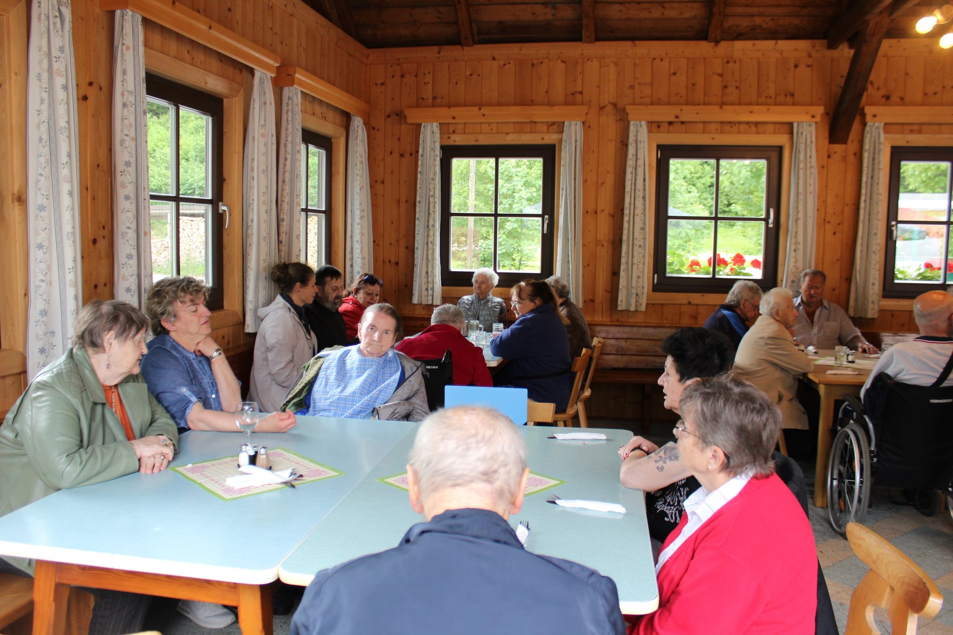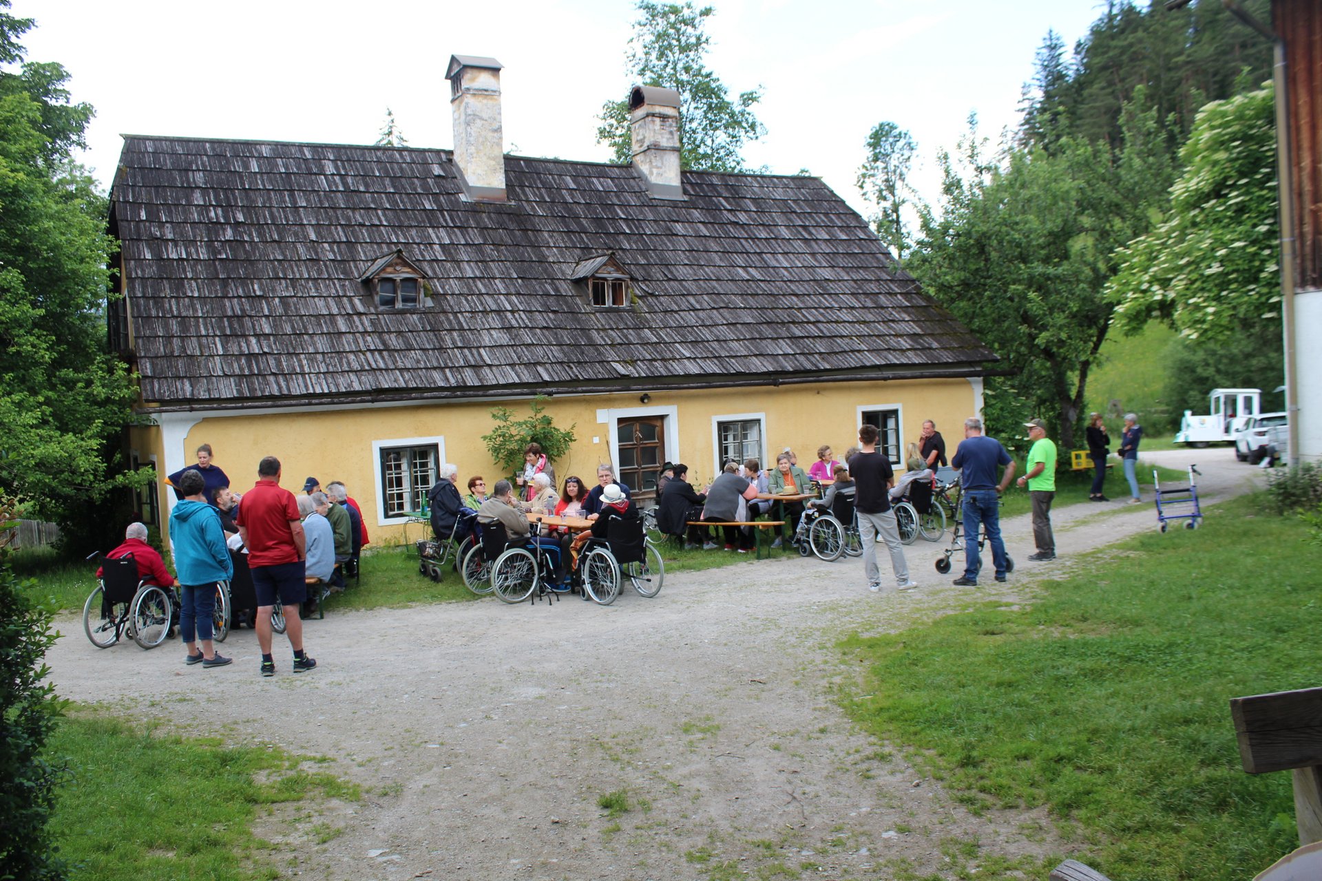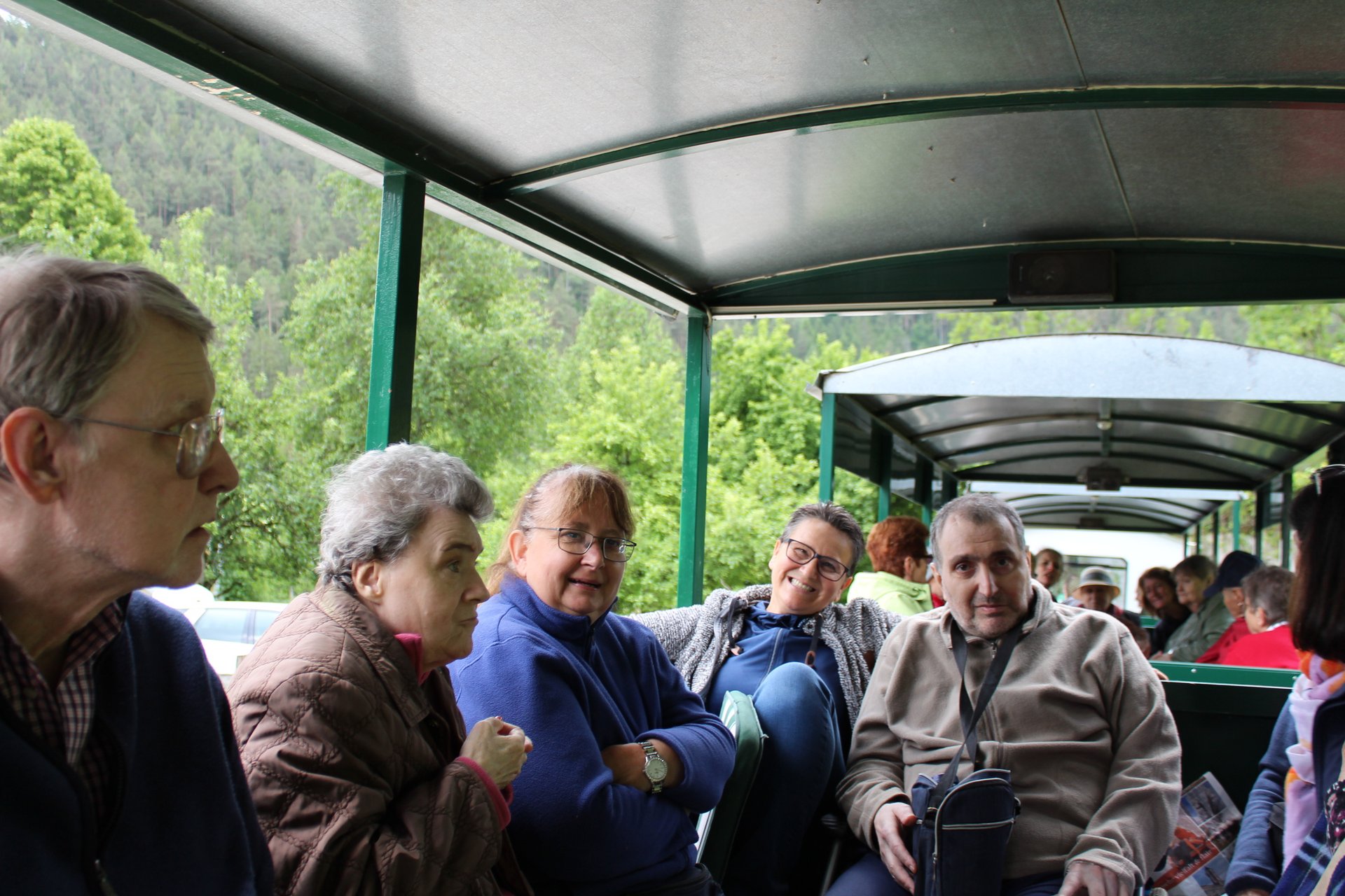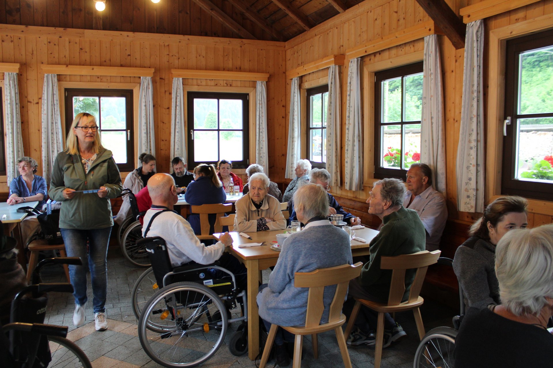 Am 14.06.2023 machten unsere Bewohnerinnen und Bewohner einen Ausflug mit dem Bummelzug. Die Bewohnerinnen und Bewohner, sowie ehrenamtliche Mitarbeiterinnen und Mitarbeiter wurden mit dem Bummelzug vor dem PBZ abgeholt. Unser erstes Ziel war der Traisengraben zur Fam. Anzberger (vulgo Hofbauer), wo wir ein kleines Picknick unter Tieren hatten, das schon etwas ganz Besonderes war. Danach fuhren wir zu einem großartigen Mittagessen in die Plöttigmühle der Fam. Sieber. Dieser Ausflug wäre ohne die vielseitige Hilfe unserer Mitarbeiter/innen und Ehrenamtsmitarbeiter/innen nicht möglich gewesen. Alleine der extra Aufwand durch die Beförderung der Rollstühle und Rollatoren nahm großes Einfallsreichtum in Anspruch. Somit konnten auch unsere nicht so mobilen Bewohner/innen diesen schönen Tag im Grünen genießen.