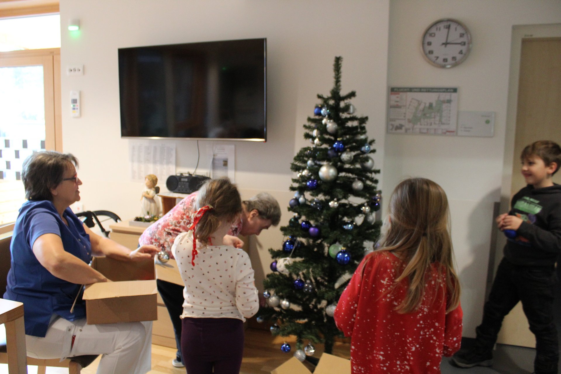 Dieses Jahr wurden unsere Bewohnerinnen und Bewohner, von den Kindern der Nachmittagsbetreuung der VS Türnitz, beim schmücken der Christbäume unterstützt. Gemeinsam wurde den Wohngruppen der letzte weihnachtliche Schliff verpasst. Natürlich blieb der Spaß dabei nicht aus und es wurden auch ein paar Weihnachtslieder angestimmt.
