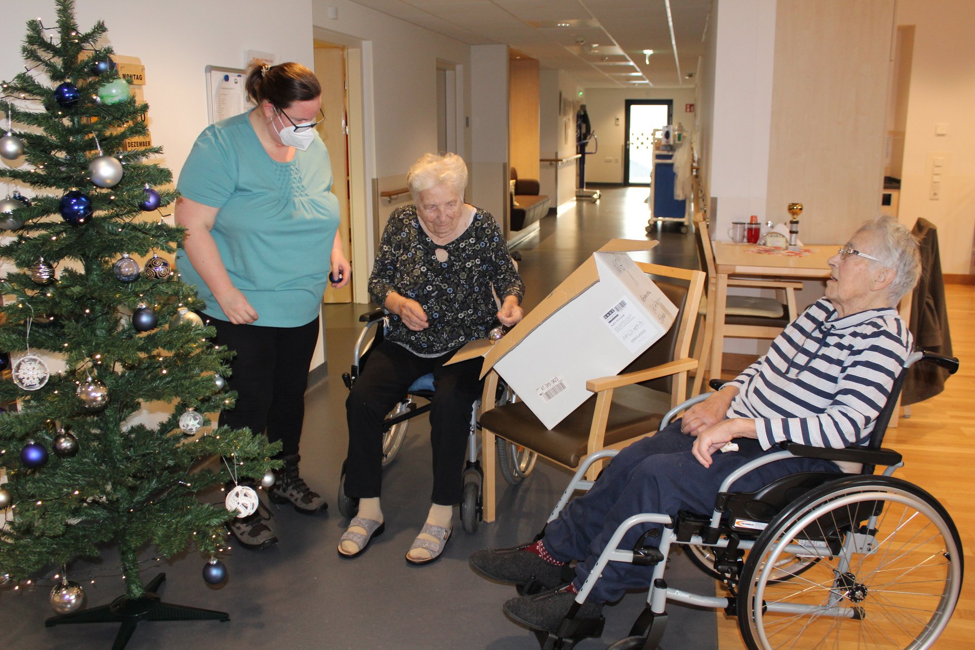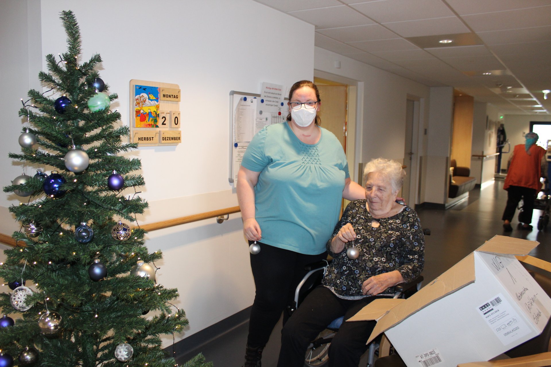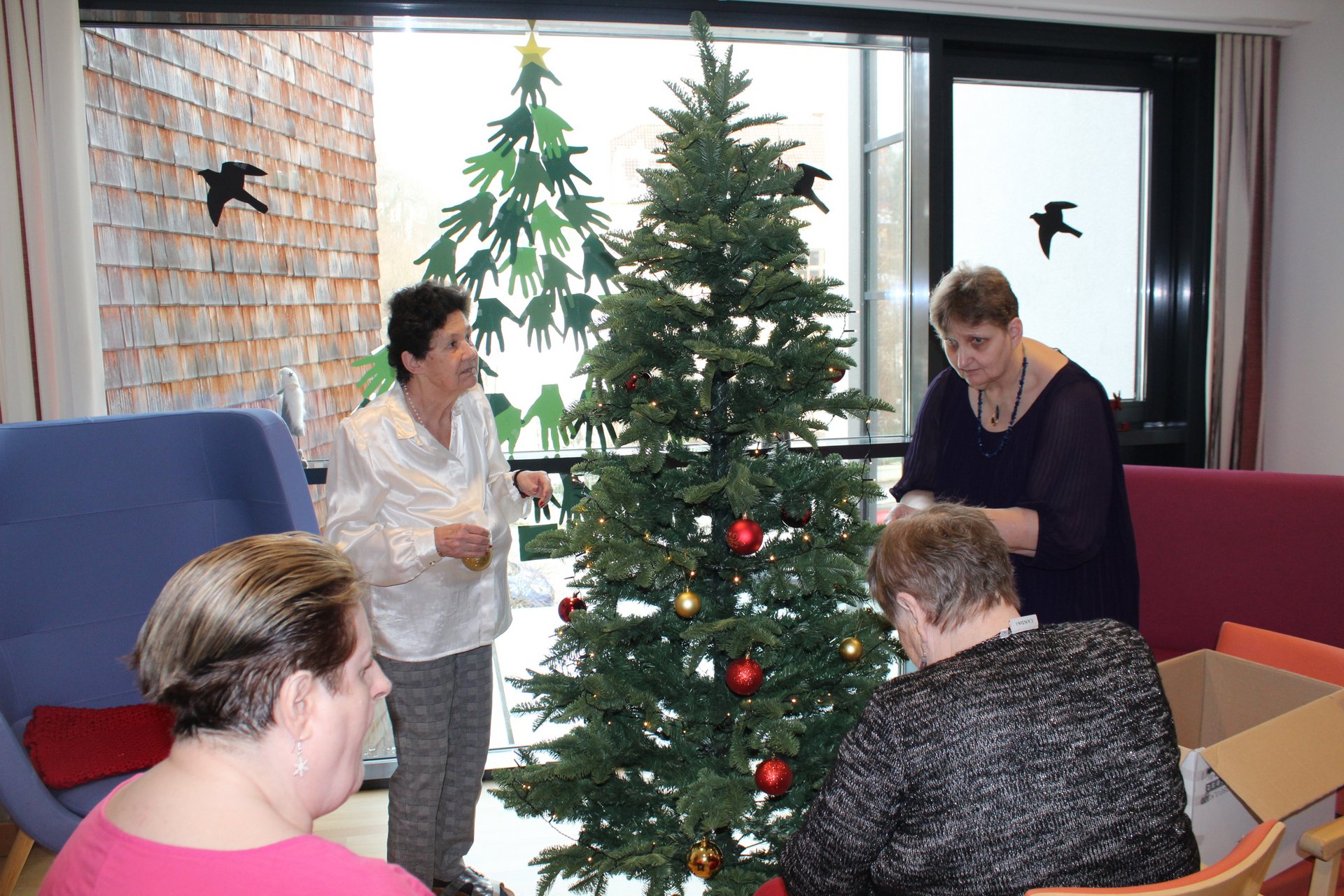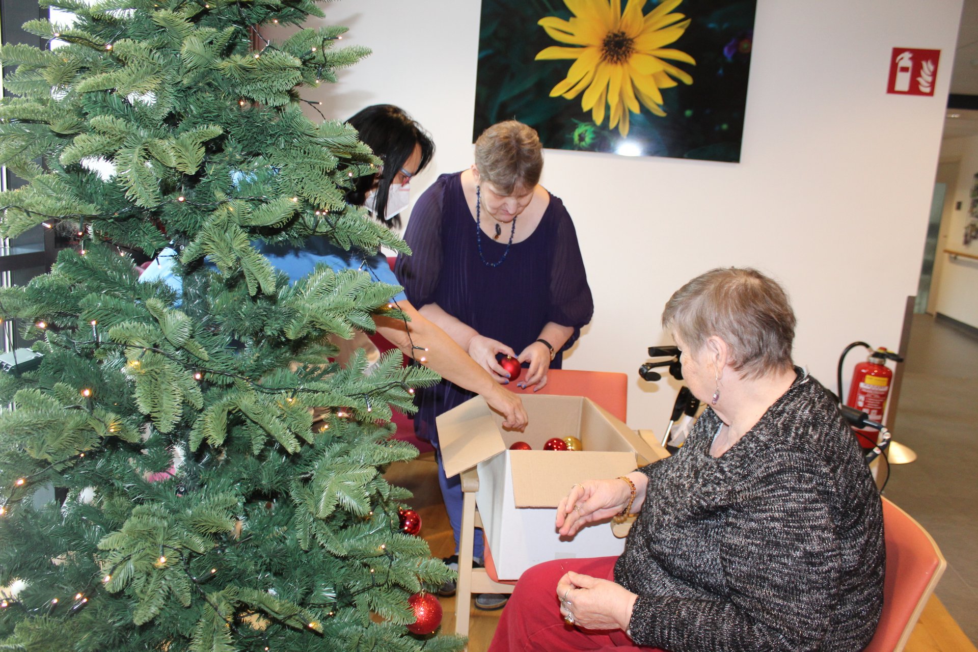 Unsere ehrenamtlichen Mitarbeiter und Mitarbeiterinnen, sowie einige unserer Pflegekräfte halfen unseren Bewohnern und Bewohnerinnen den Wohnraum weiter weihnachtlich zu verschönern. So wurden am 20.12. bereits Christbäume aufgestellt und auch wunderschön dekoriert. So kam gleich noch mehr Weihnachtsstimmung auf.