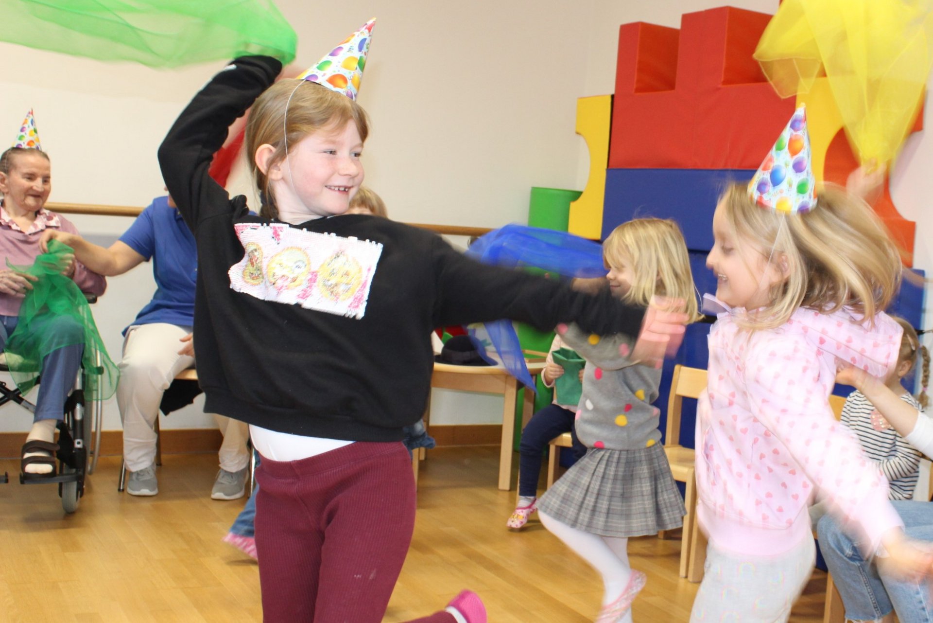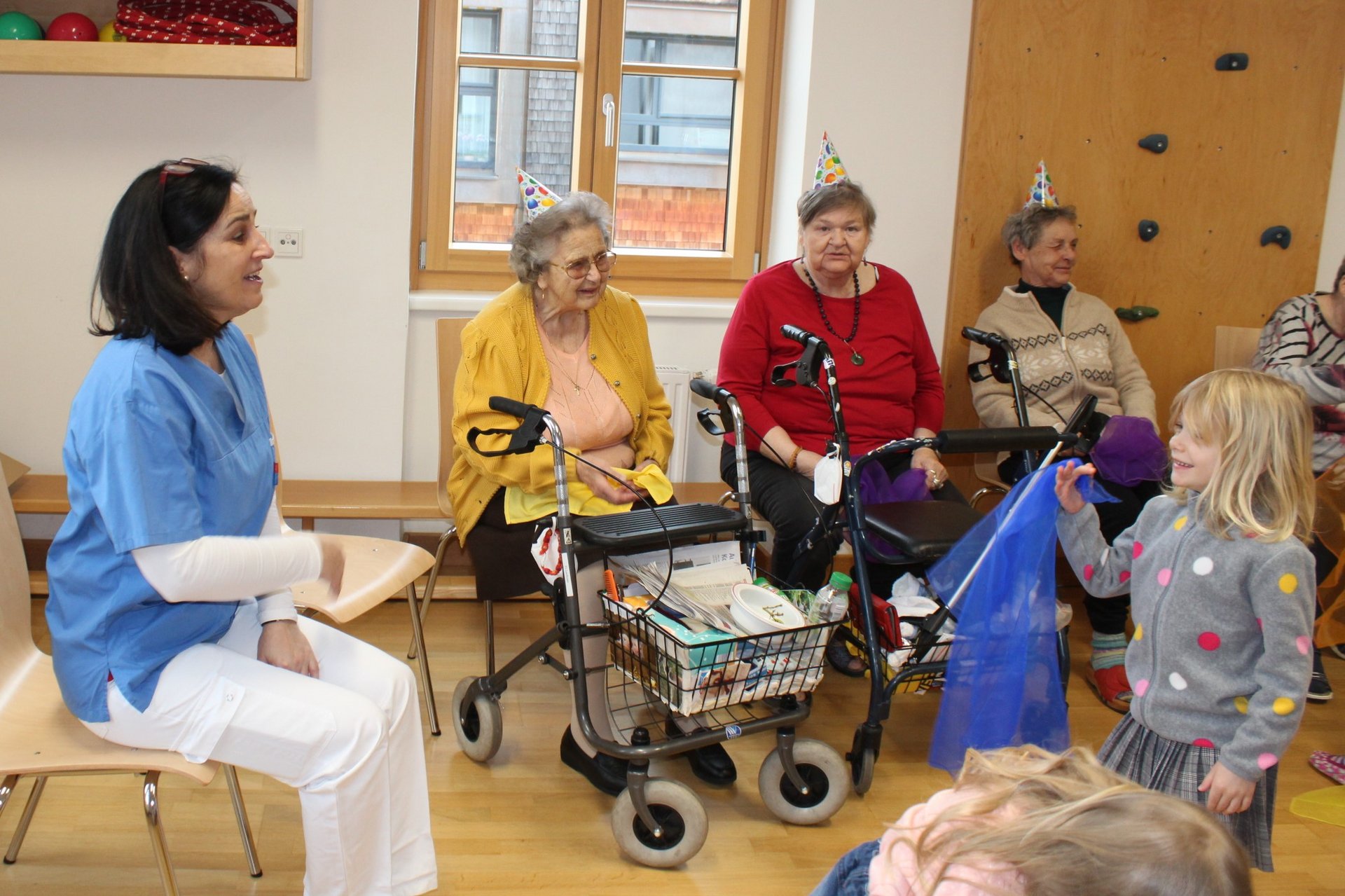 Das letzte Treffen zwischen interessierten Bewohnerinnen und Kindergartenkindern stand unter dem Motto: „Heute wird gelacht!“ – so beginnt auch das lustige Kindergarten-Faschingstanzlied.