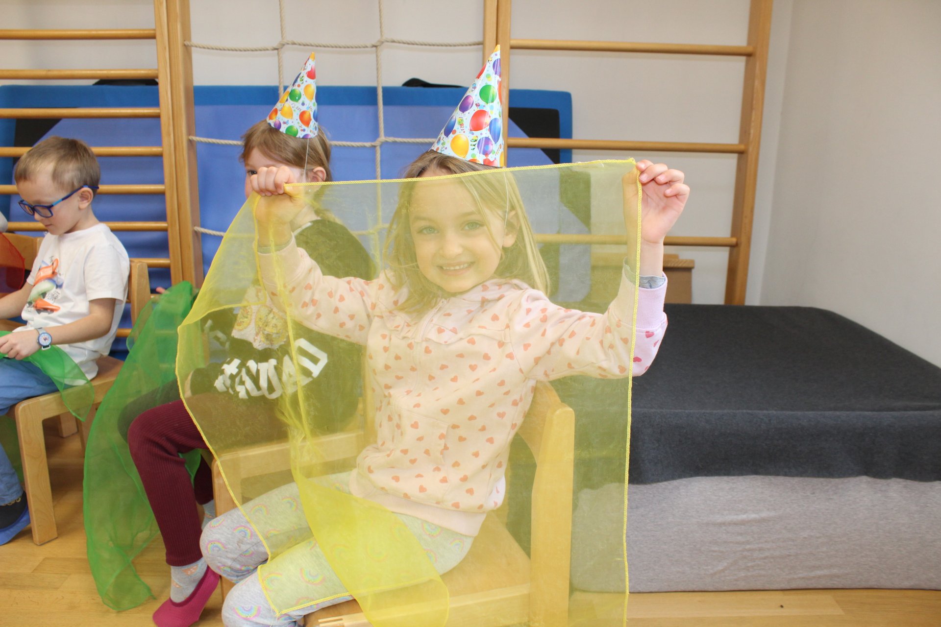 Nach einer bewegten Begrüßungsrunde mit bunten Tüchern und einer Faschingsgeschichte haben wir uns verschiedenste Hüte angesehen, aufgesetzt und ihre Formen entdeckt.