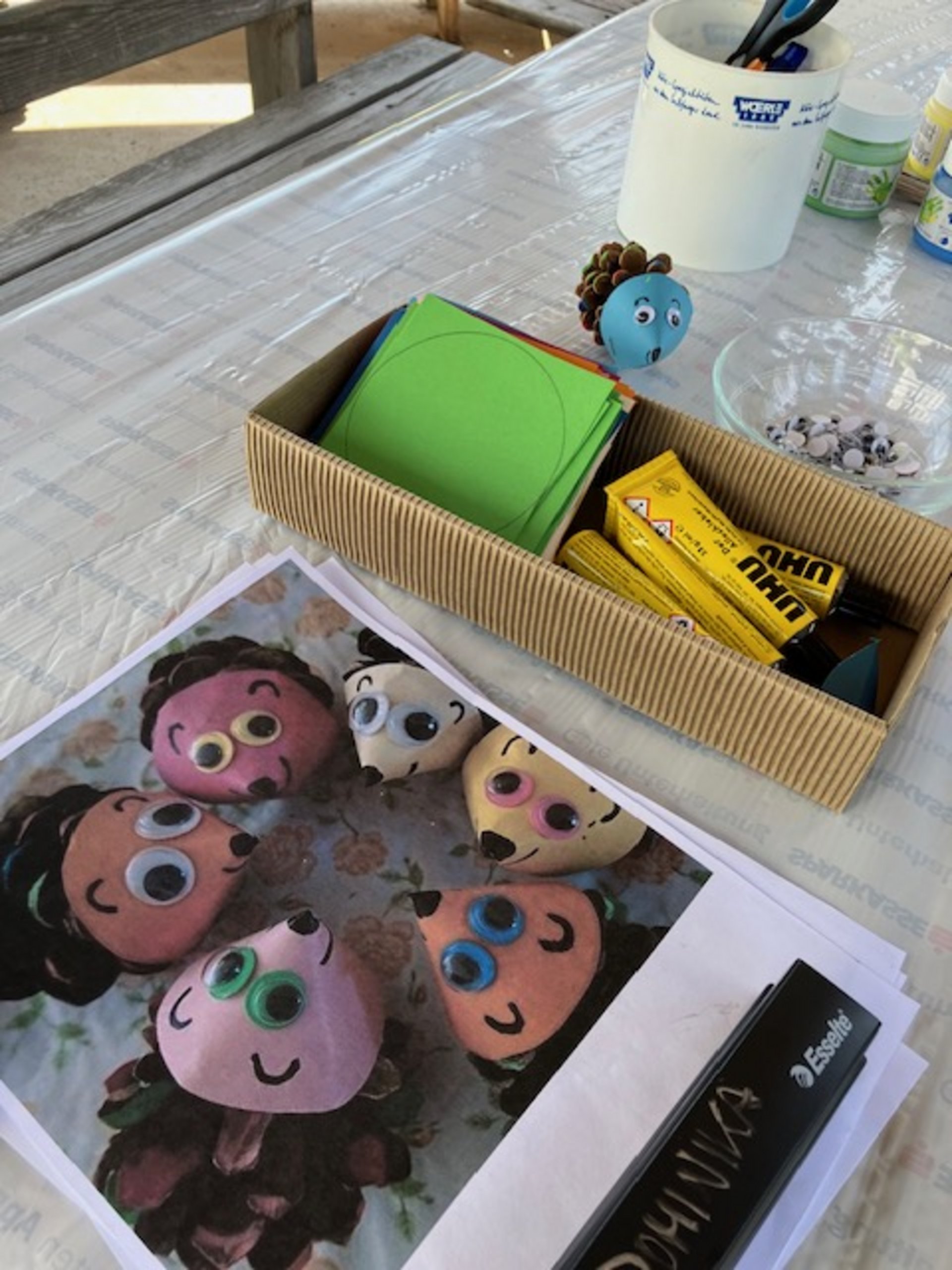 Unter dem Motto „Wir schützen den Igel“ war bei uns im Vorgarten eine Bastelstation aufgestellt, bei der die Kinder einen Igel aus Kiefernzapfen basteln konnten. Doch das war natürlich nicht alles: die Kinder malten mit Straßenkreiden, warfen Dosen um, machten ein Igel Quiz, versuchten sich im Sackhüpfen und im allseits beliebten Rollstuhlrennen.