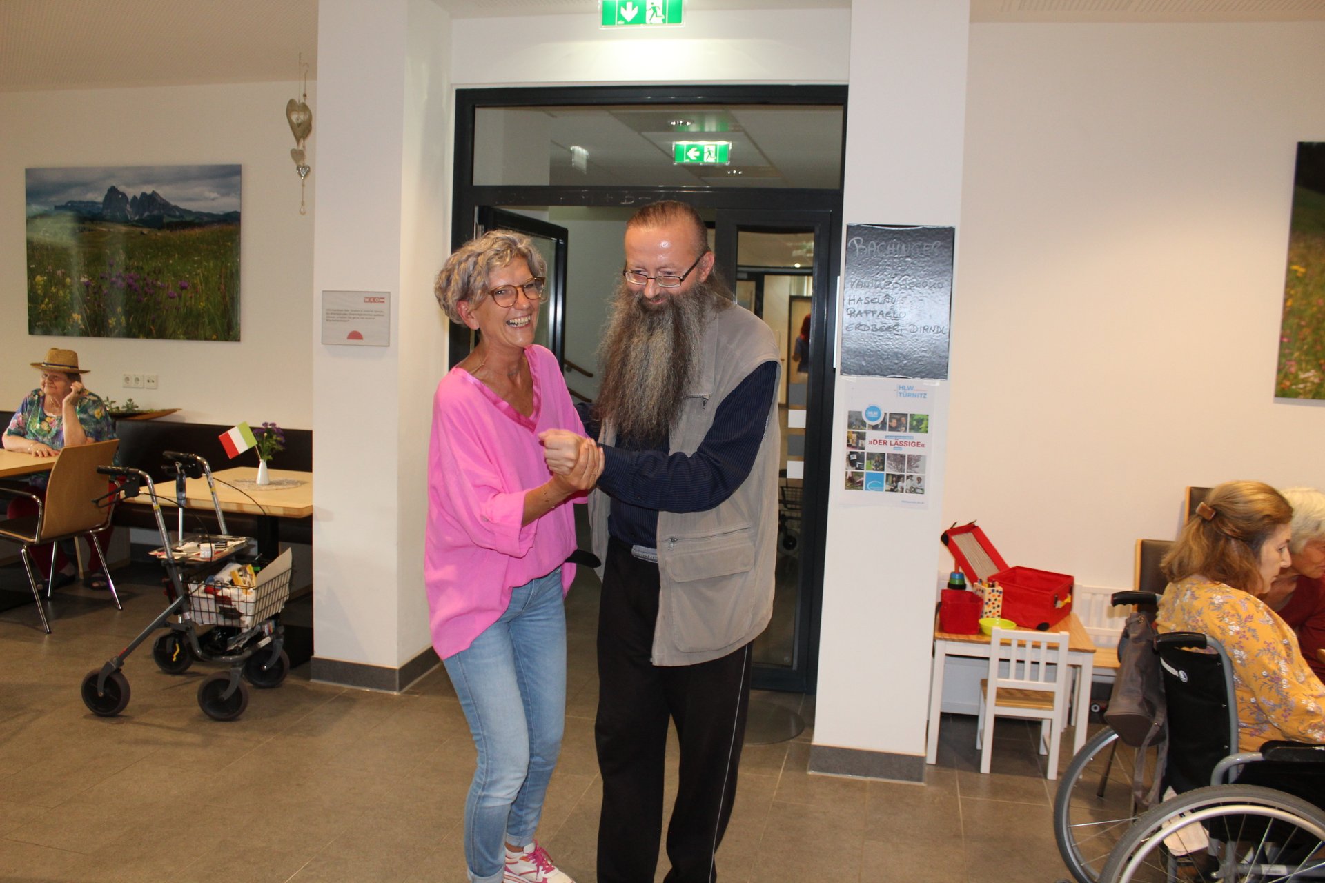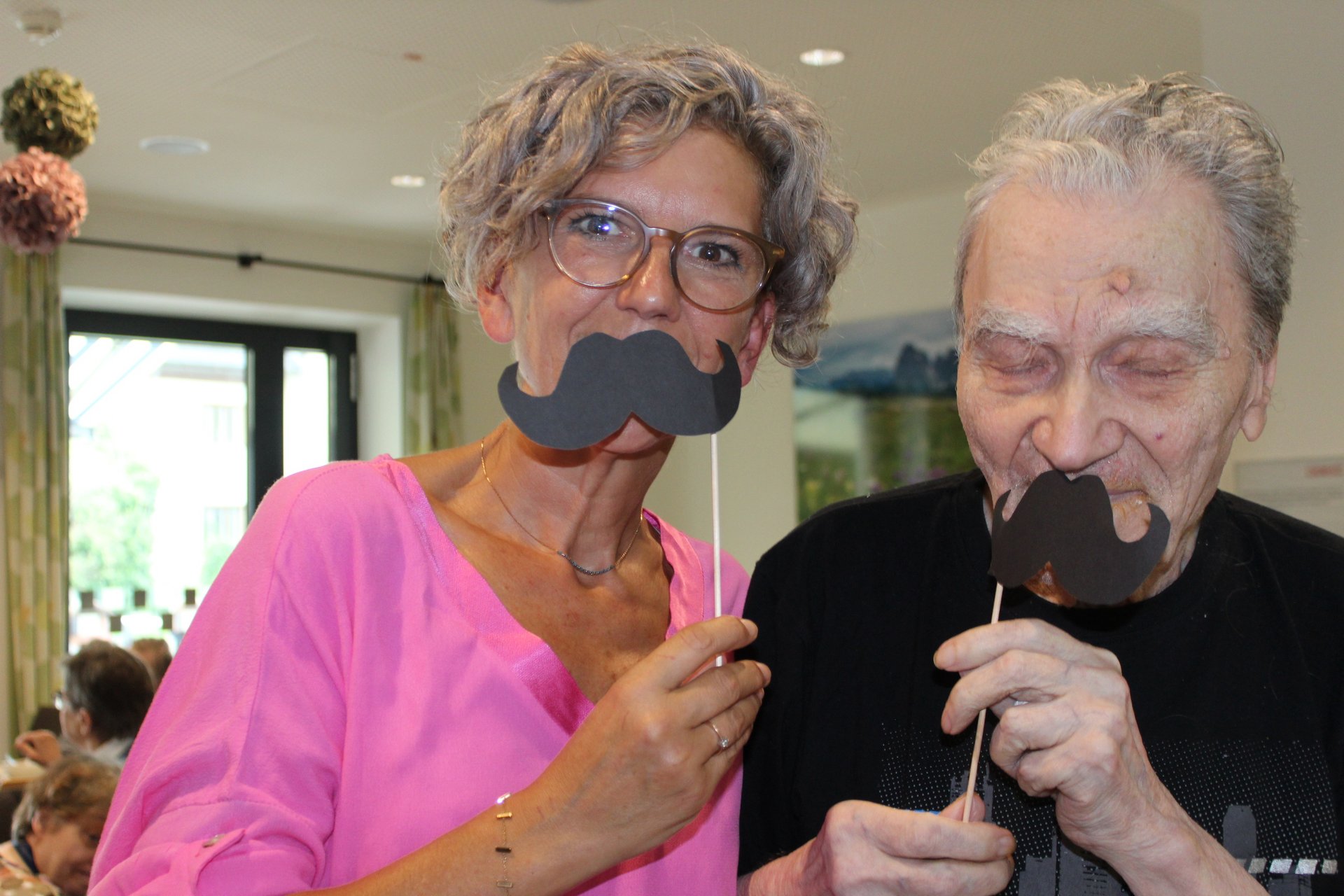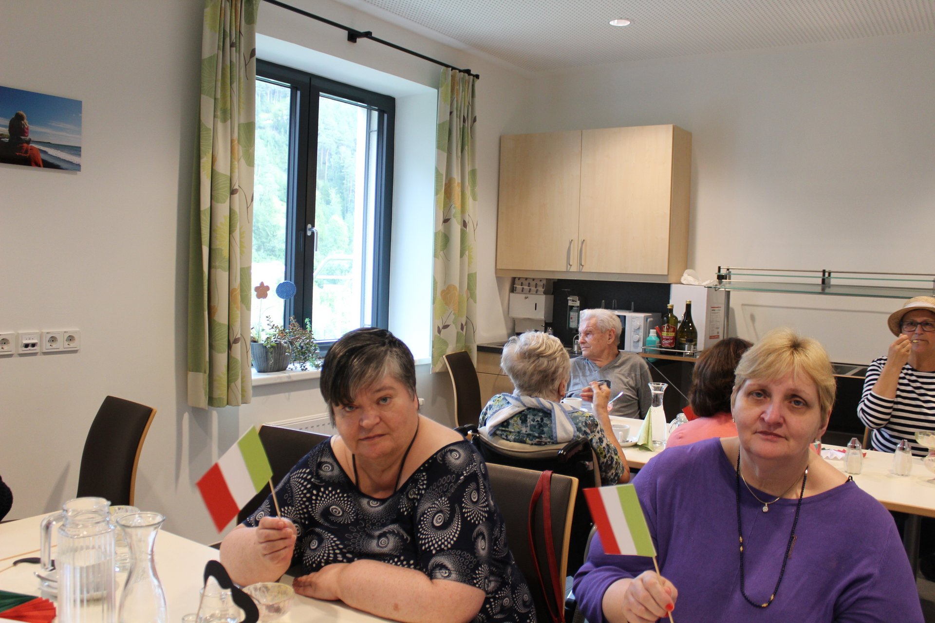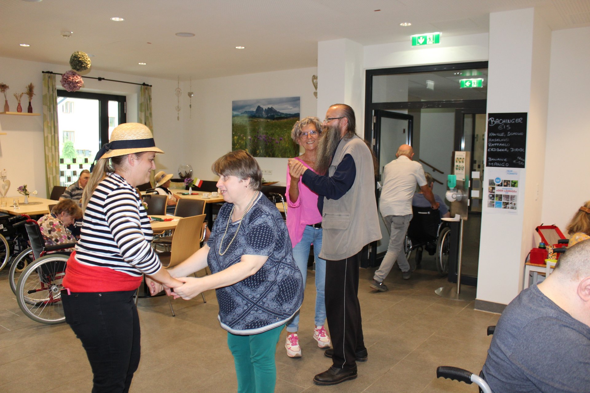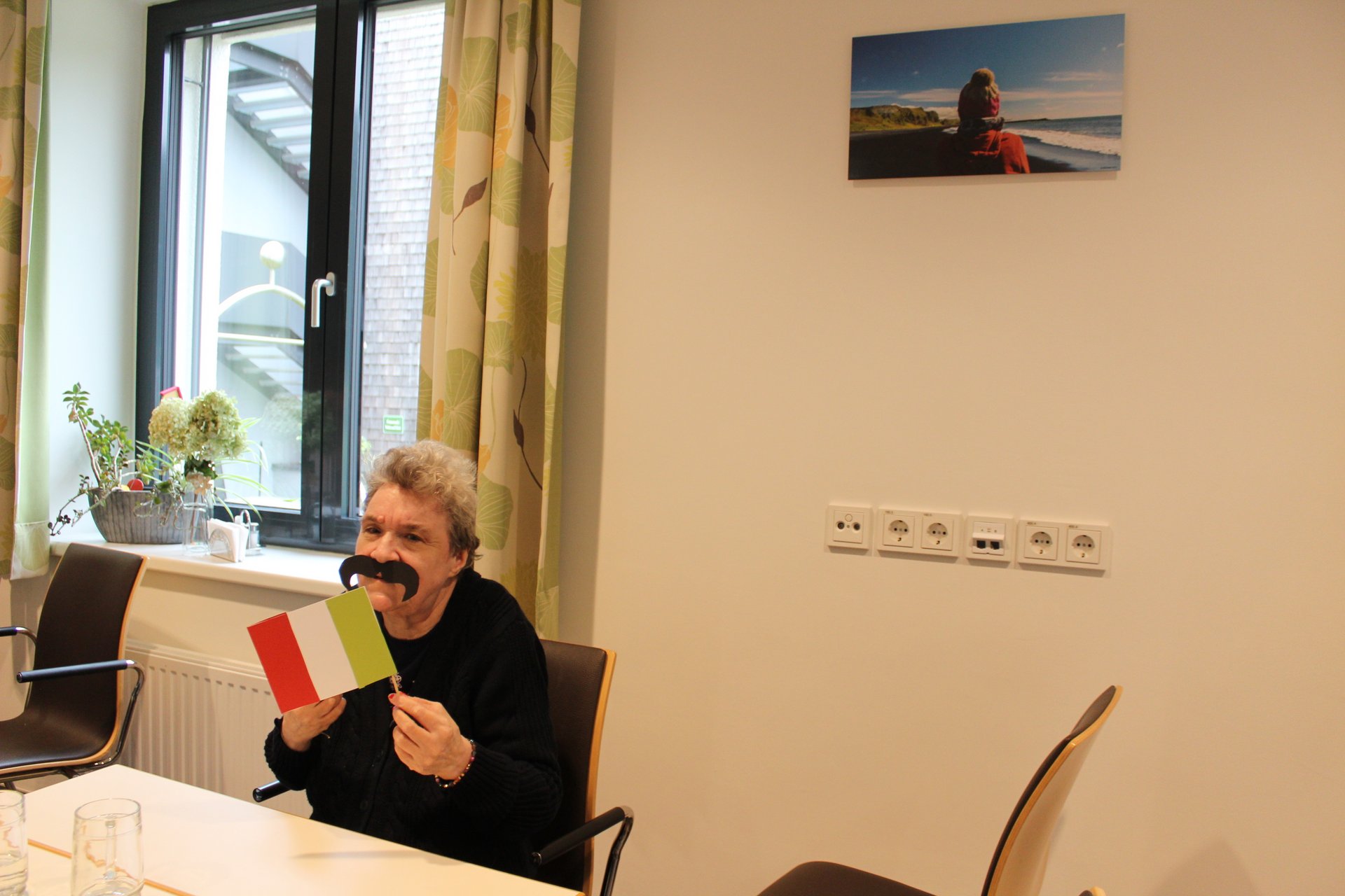 Am 19.09.2023 läutete das Raba Café im PBZ, mit einem kleinen Fest, das Ende der Eissaison ein. Unsere Bewohnerinnen und Bewohner bastelten für diesen Anlass kleine italienische Fahnen und lustige Schnurrbärte. Mit italienischer Musik untermalt, durften sich unsere Bewohnerinnen und Bewohner an Eis- und Café- Spezialitäten erfreuen. Unsere Mitarbeiterinnen und Mitarbeiter, die ehrenamtlichen Mitarbeiterinnen und Mitarbeiter, sowie unsere Bewohnerinnen und Bewohner tanzten die überschüssigen Kalorien danach auf der Tanzfläche wieder ab und hatten sichtlich Spaß dabei.