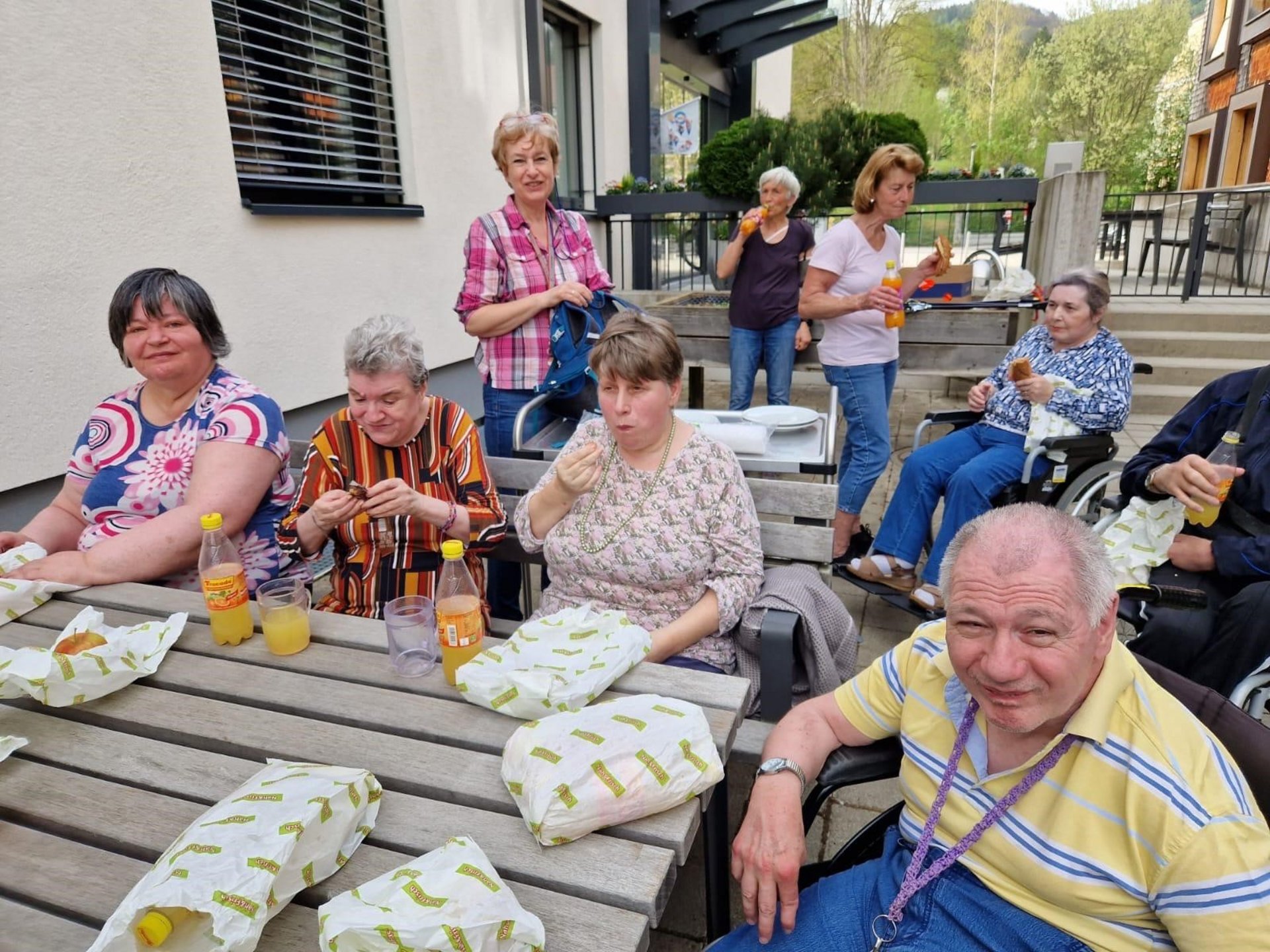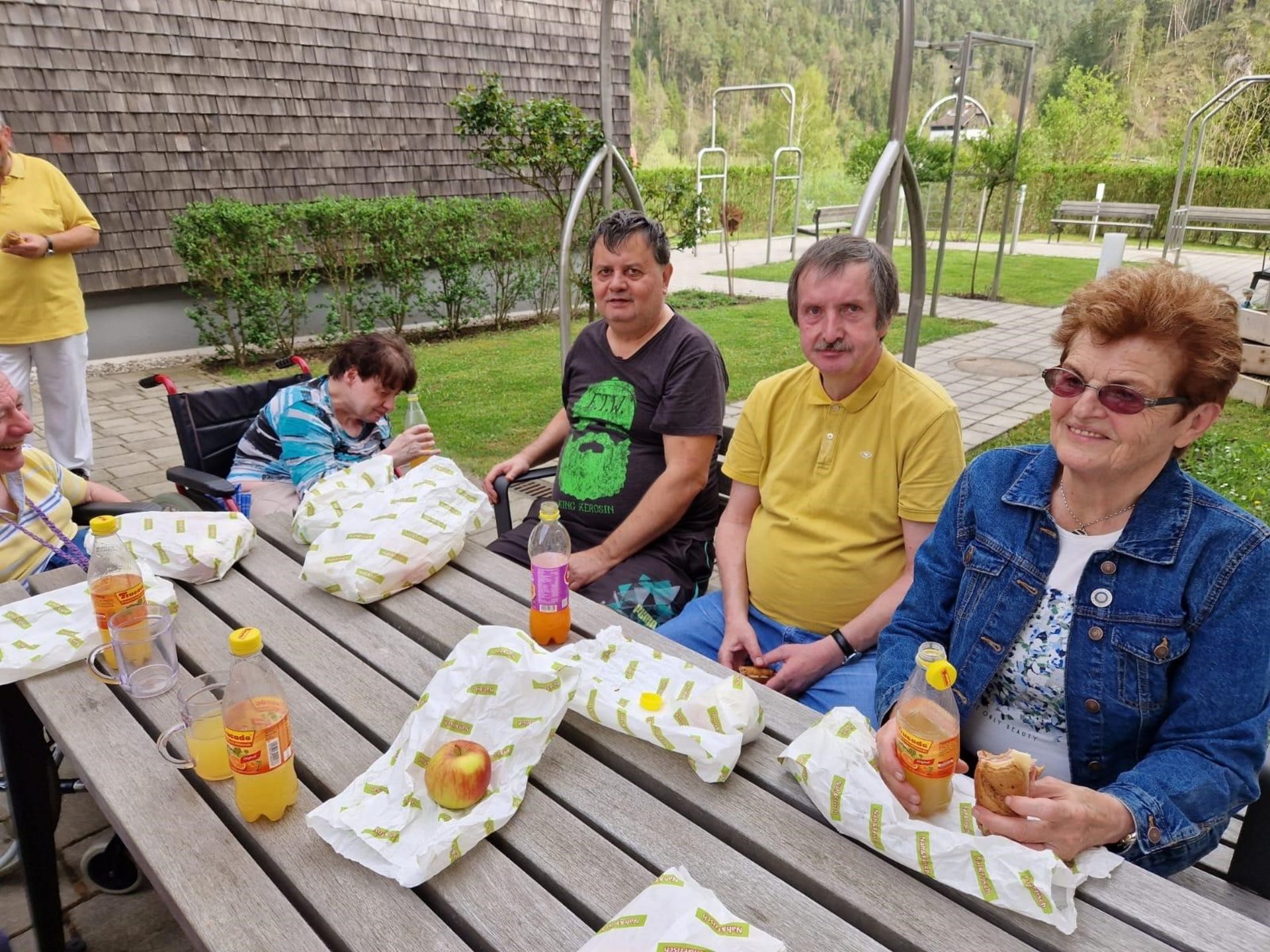An der Müllsammelaktion "Stop littering", ausgerufen von der Gemeinde Türnitz, nahmen unsere Bewohnerinnen und Bewohner wieder tatkräftig teil. Gemeinsam mit den ehrenamtlichen Mitarbeiterinnen und Mitarbeitern, sowie unseren Pflegemitarbeiterinnen und Mitarbeitern gingen 24 unserer Bewohnerinnen und Bewohner einen Teilabschnitt des Radweges sowie des Scharbach. Anschließend durften sich die "Sauberfrauen" und "Saubermänner" bei einer kleinen Jause, welche von der Gemeinde Türnitz gesponsert wurde, in unserem Rosengarten stärken.