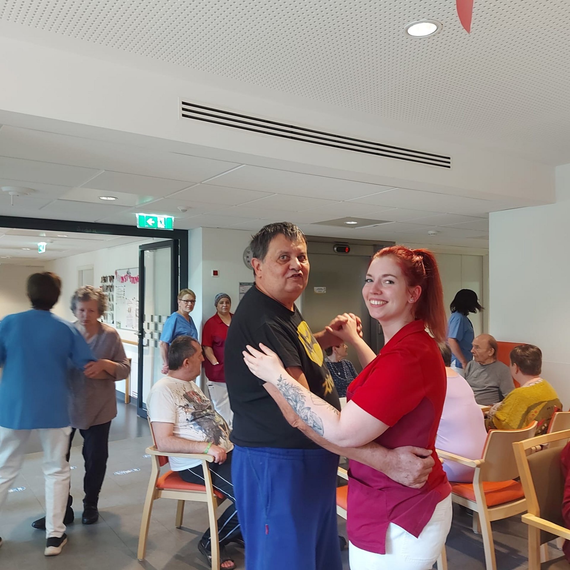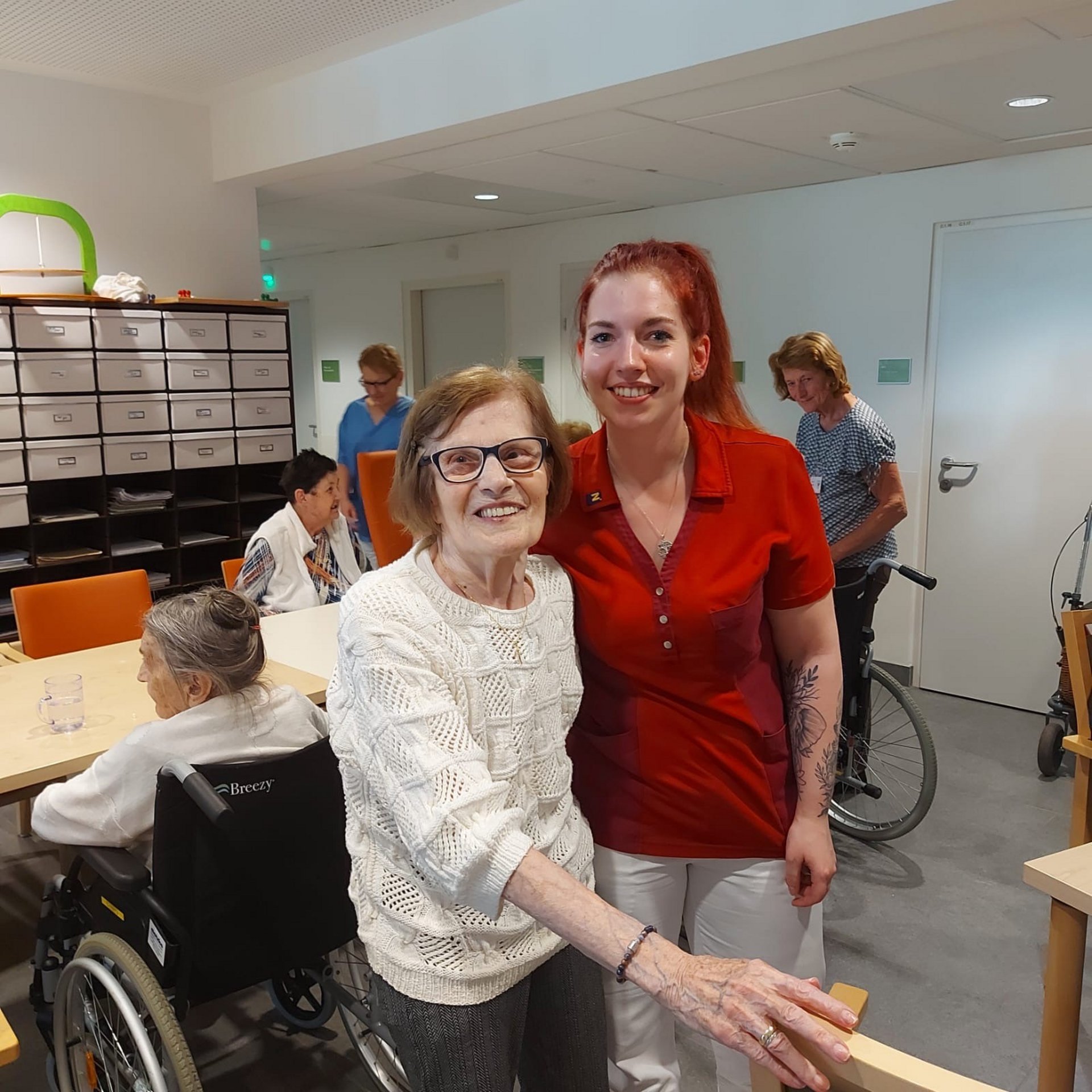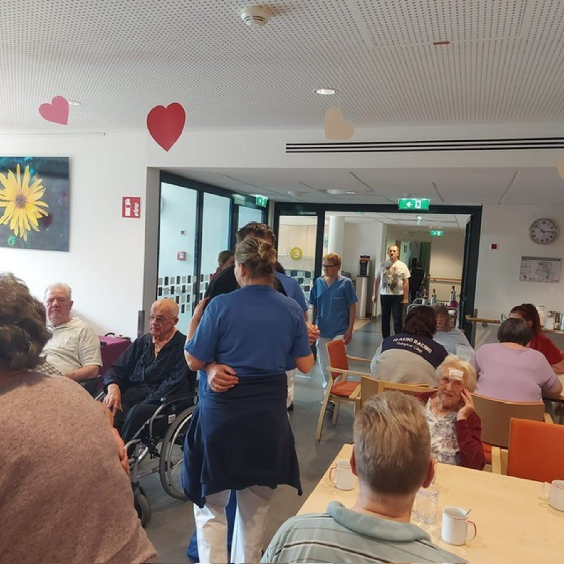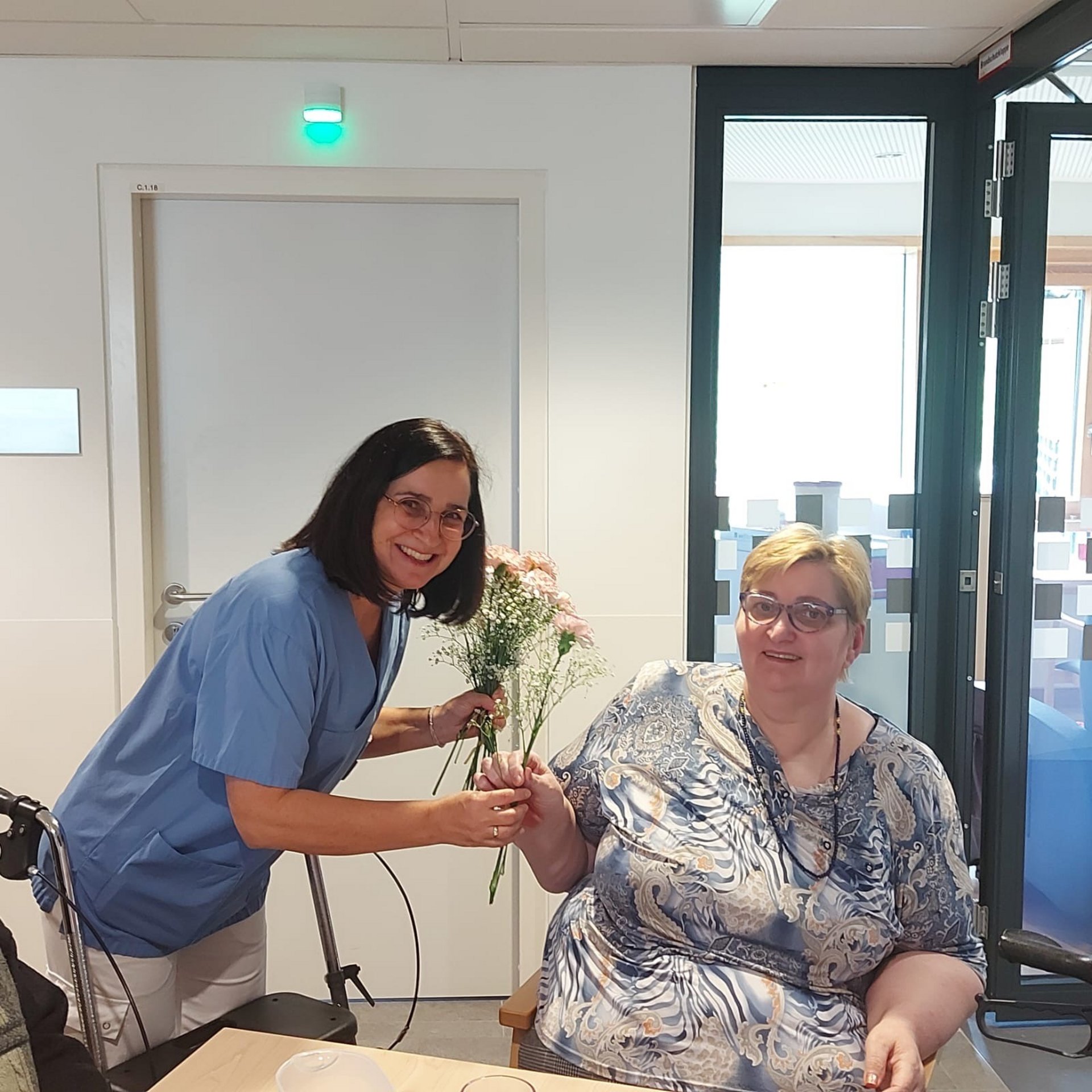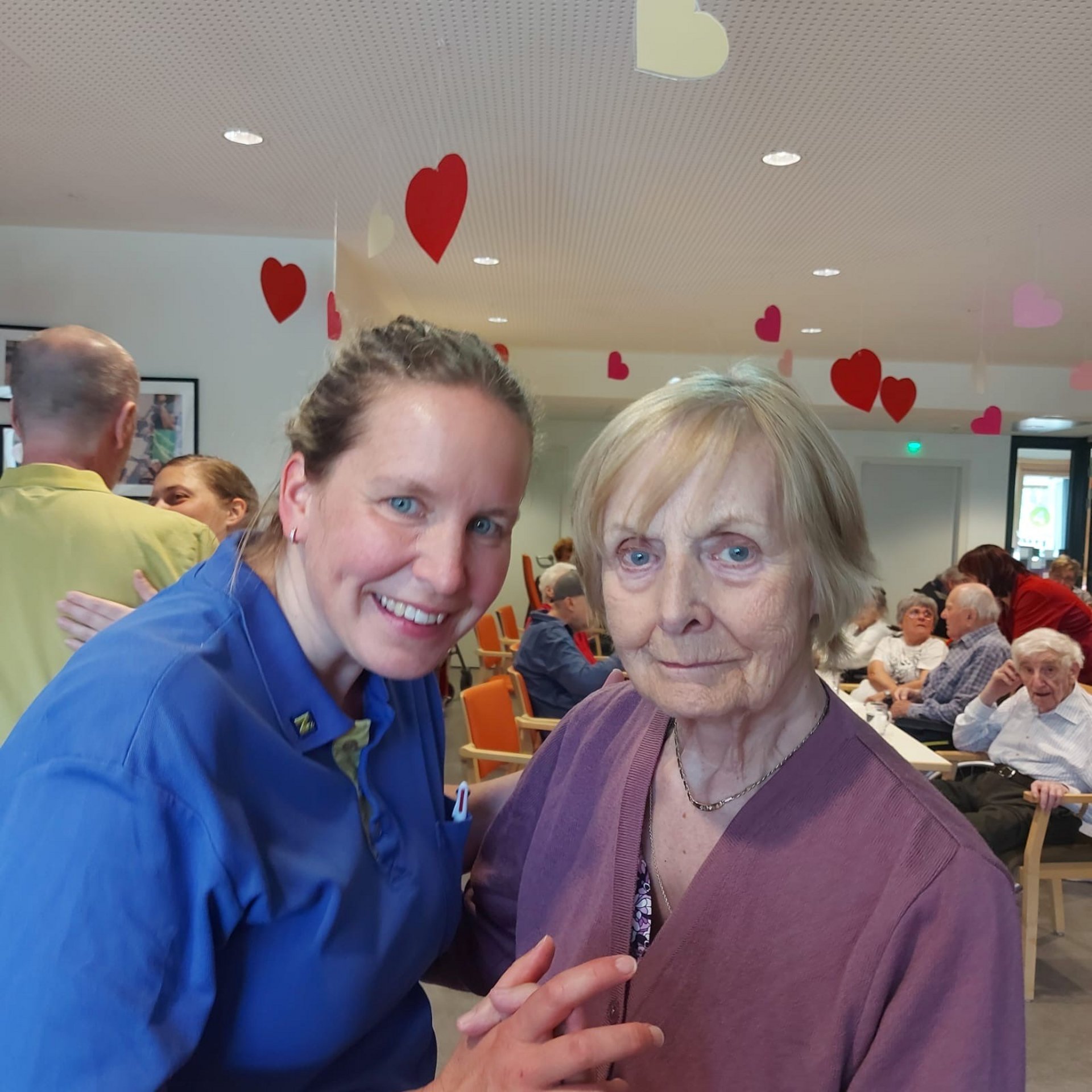 Bewohnerinnen und Bewohner, das Pflegepersonal sowie zahlreiche ehrenamtliche Mitarbeiterinnen und Mitarbeiter kamen zusammen, um diesen besonderen Tag gemeinsam zu begehen. Die Direktorin des Hauses sowie die Ehrenamtskoordinatorin ließen es sich nicht nehmen, persönlich kleine Nelkensträußchen zu überreichen – als kleines Dankeschön und Zeichen der Wertschätzung für Alle im Haus.