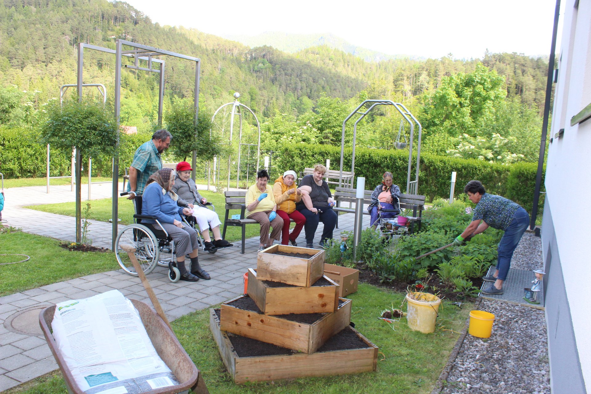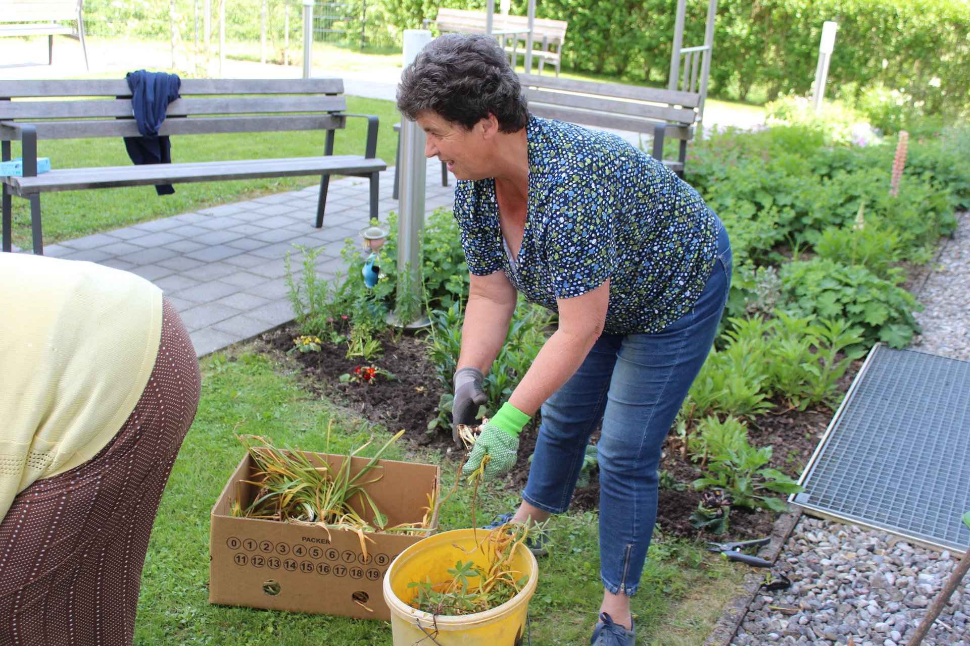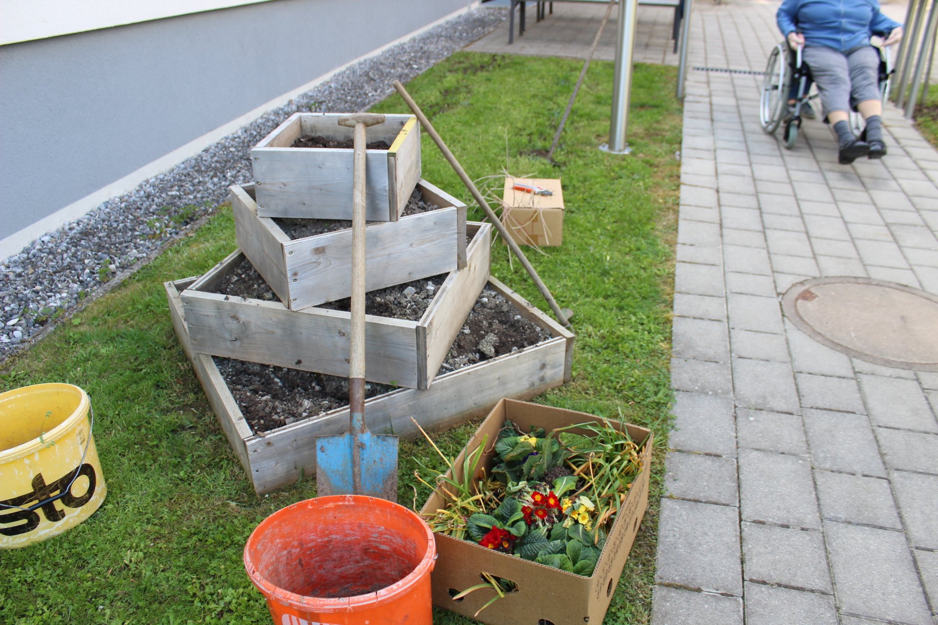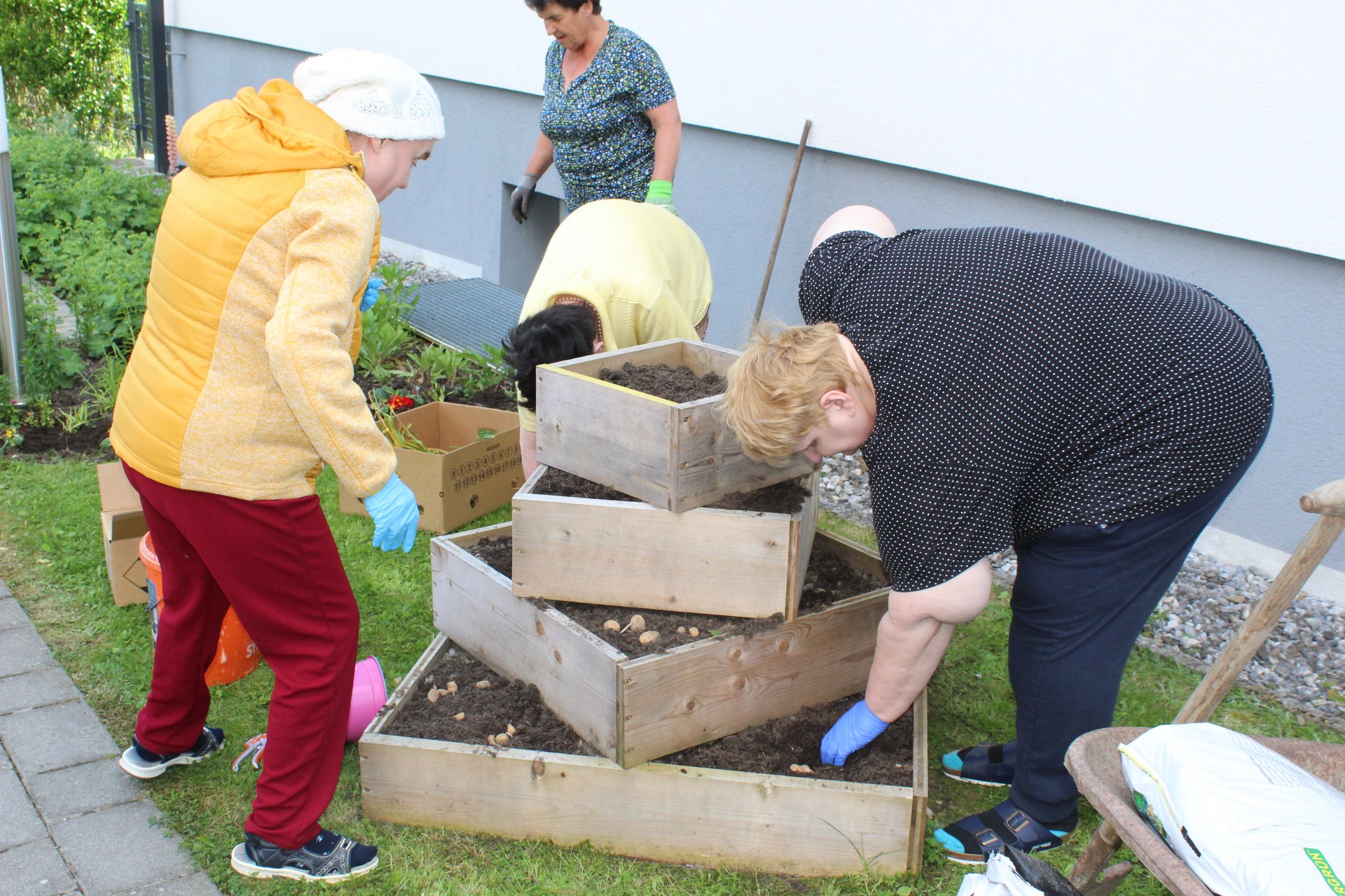 Wie jedes Jahr, machten sich unsere fleißigen Bewohnerinnen wieder im Garten zu schaffen. Da wurde umgegraben und Unkraut entfernt, frische Erde und neue Setzlinge gebracht und auch Samen ausgestreut. Mit viel Freude wurde so unsere Kartoffelpyramide und auch unser Hochbeet neu bepflanzt, so dass wir uns im Spätsommer und Herbst wieder auf frisches Gemüse und Kräuter freuen können.