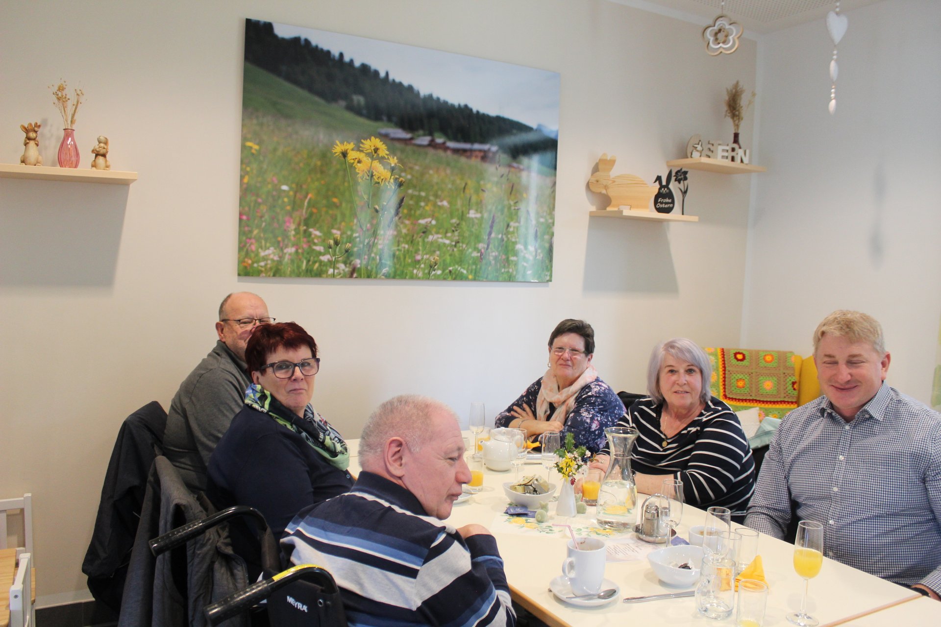 Am 27. und 28.03.2024 fand im Raba Café das Osterhaserlfrühstück statt. Viele kamen um das leckere Essen und die freundliche Atmosphäre zu genießen. Dank unseres Küchenpersonals und unserer "Kaffeehausdamen" waren die beiden Tage ein voller Erfolg! Nicht nur unsere Bewohnerinnen und Bewohner kamen mit ihren Angehörigen, sondern auch Türnitzerinnen und Türnitzer, die das Osterwochenende gemütlich beginnen wollten. Anschließend konnte man noch, auf unserem kleinen Ostermarkt, Selbstgebasteltes unserer Bewohnerinnen und Bewohner erstehen.