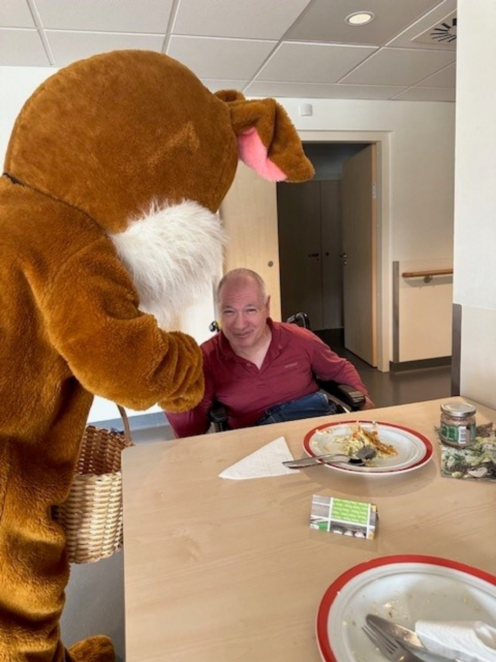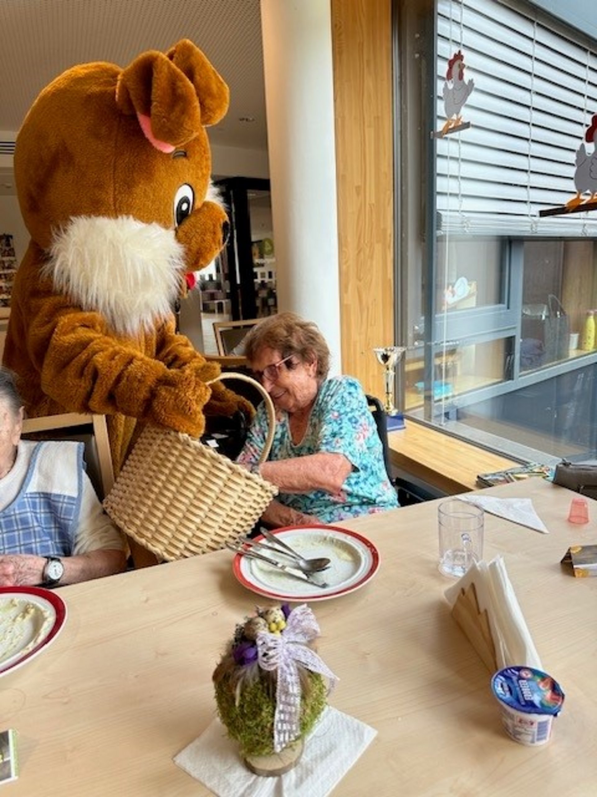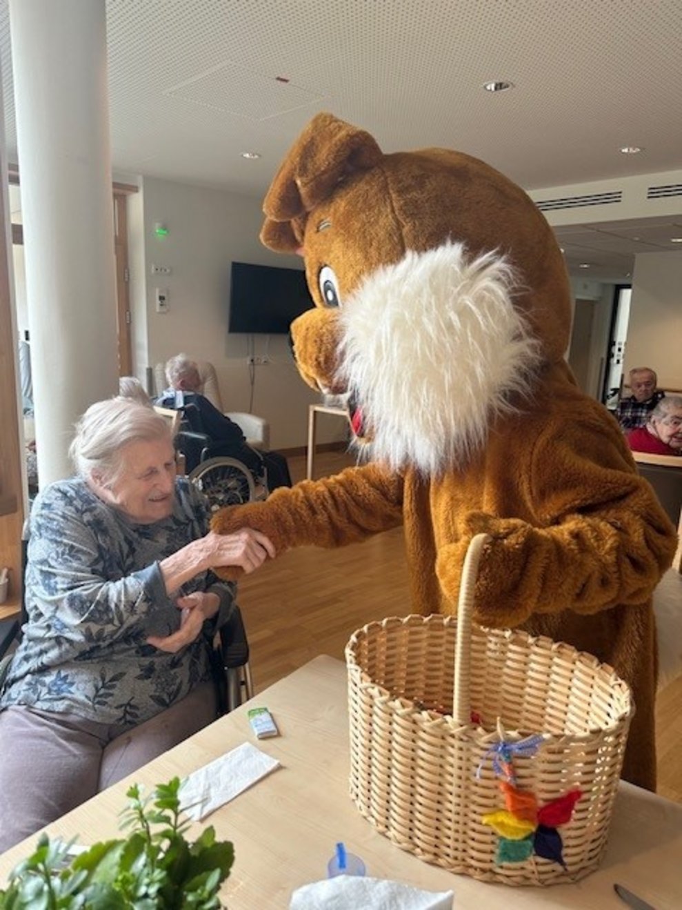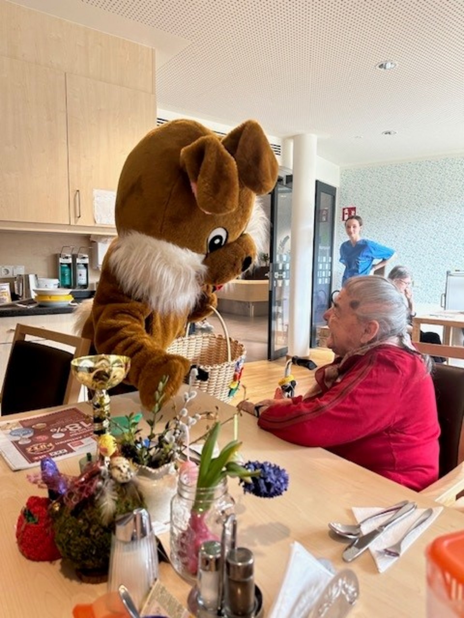 Wer hoppelt denn da durchs PBZ? Der Osterhase! Er besuchte unsere Bewohnerinnen und Bewohner und schenkte ihnen, sowie unseren Mitarbeiterinnen und Mitarbeitern eine kleine Aufmerksamkeit, denn nicht nur Kinder freuen sich auf ihn!