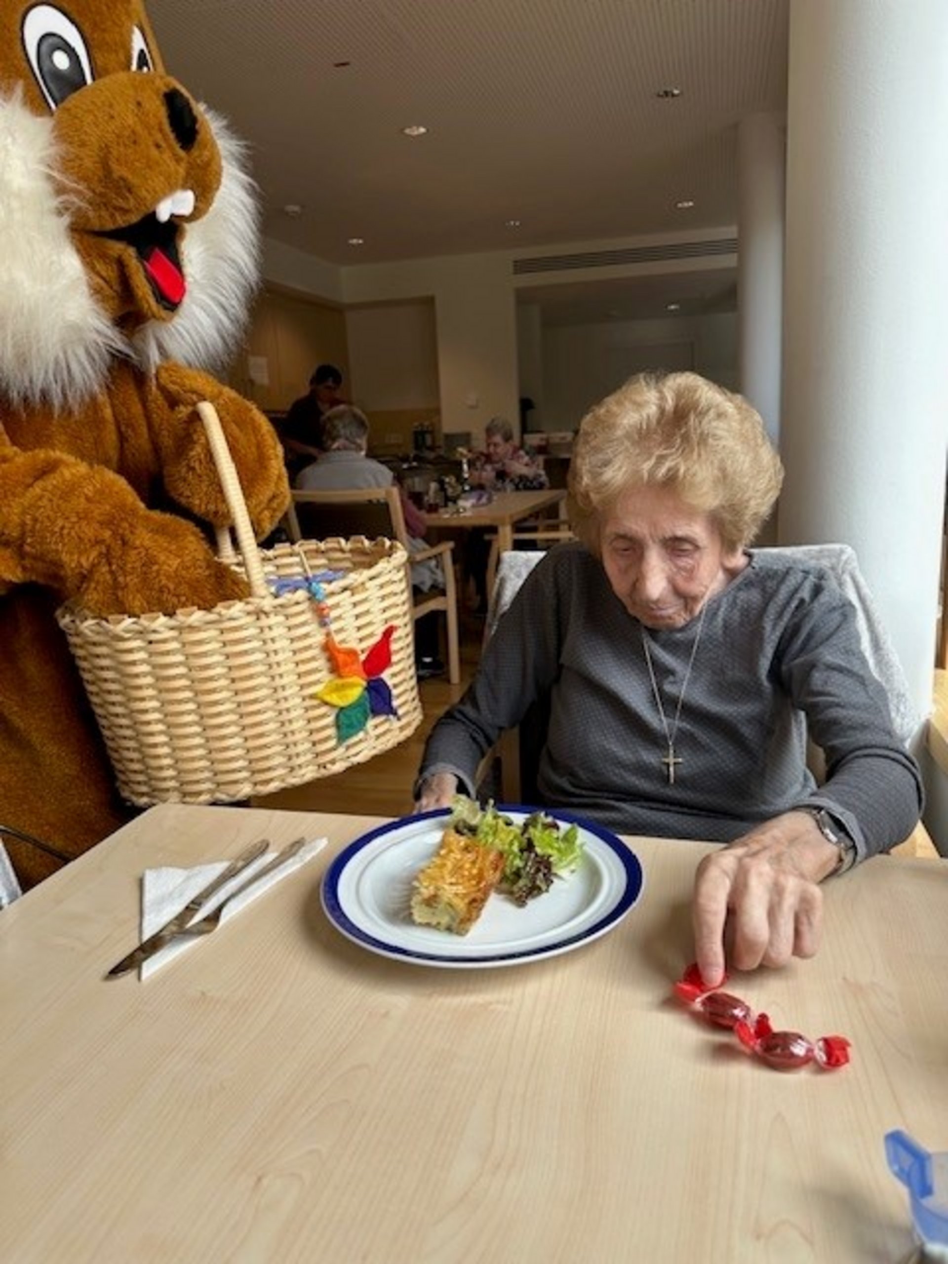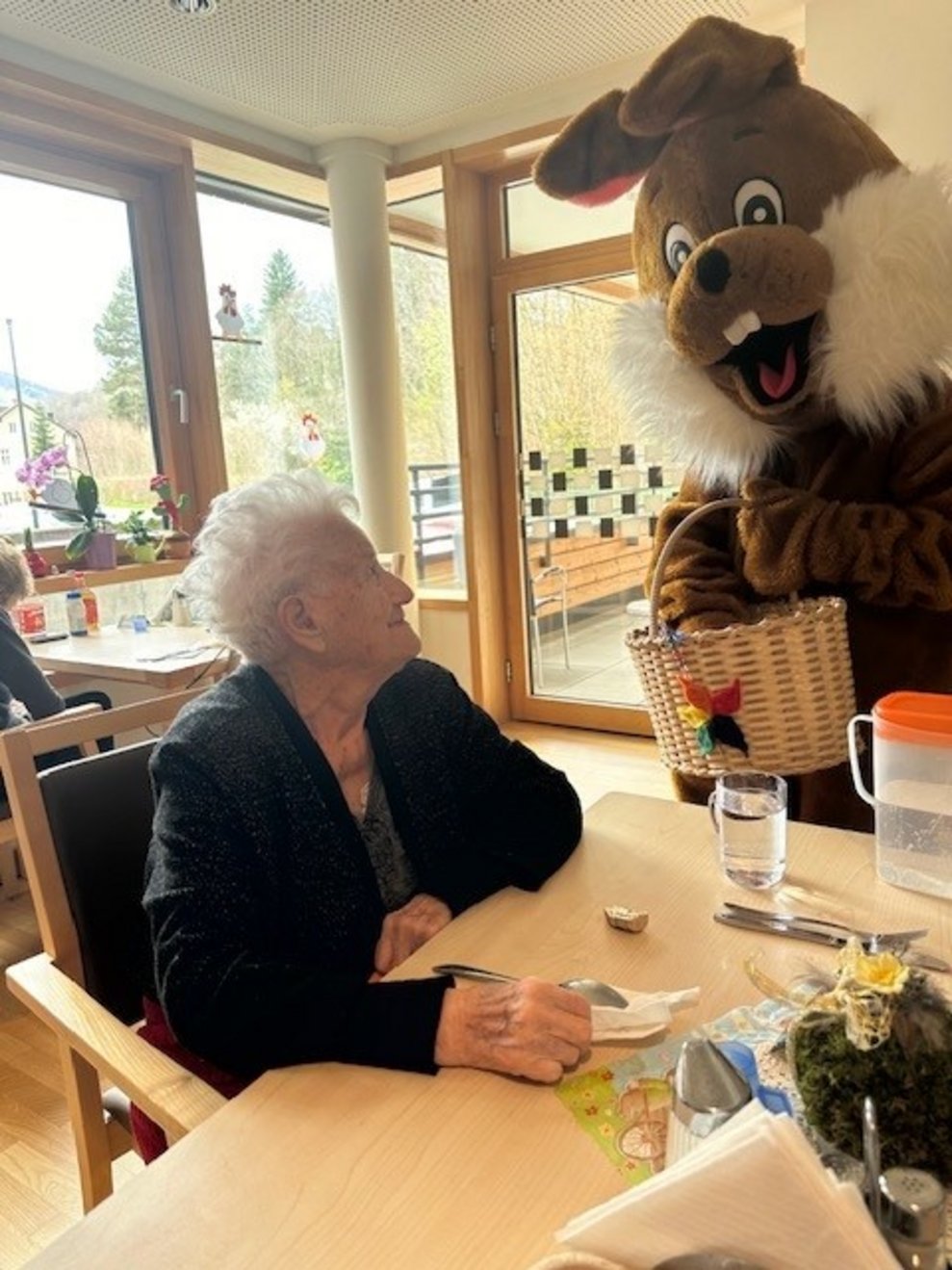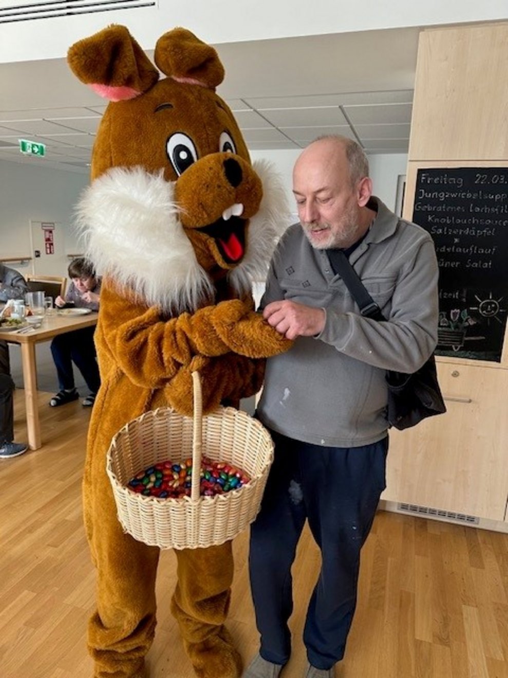 Wer hoppelt denn da durchs PBZ? Der Osterhase! Er besuchte unsere Bewohnerinnen und Bewohner und schenkte ihnen, sowie unseren Mitarbeiterinnen und Mitarbeitern eine kleine Aufmerksamkeit, denn nicht nur Kinder freuen sich auf ihn!