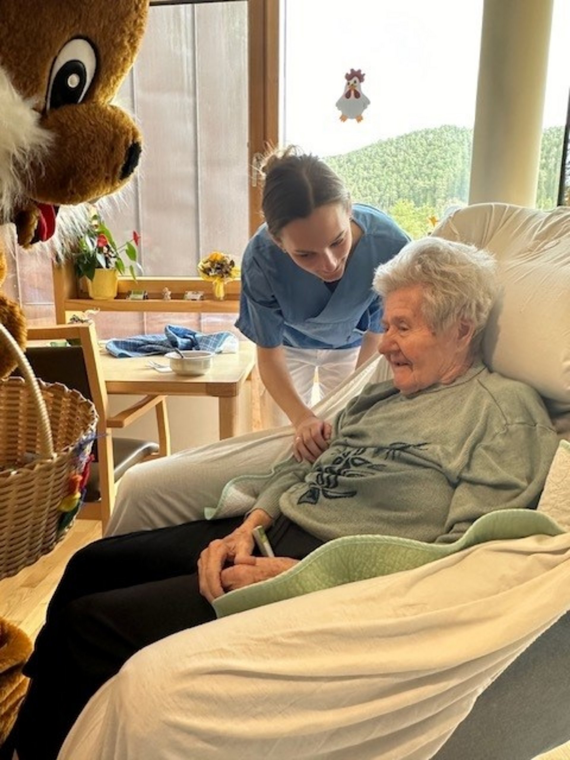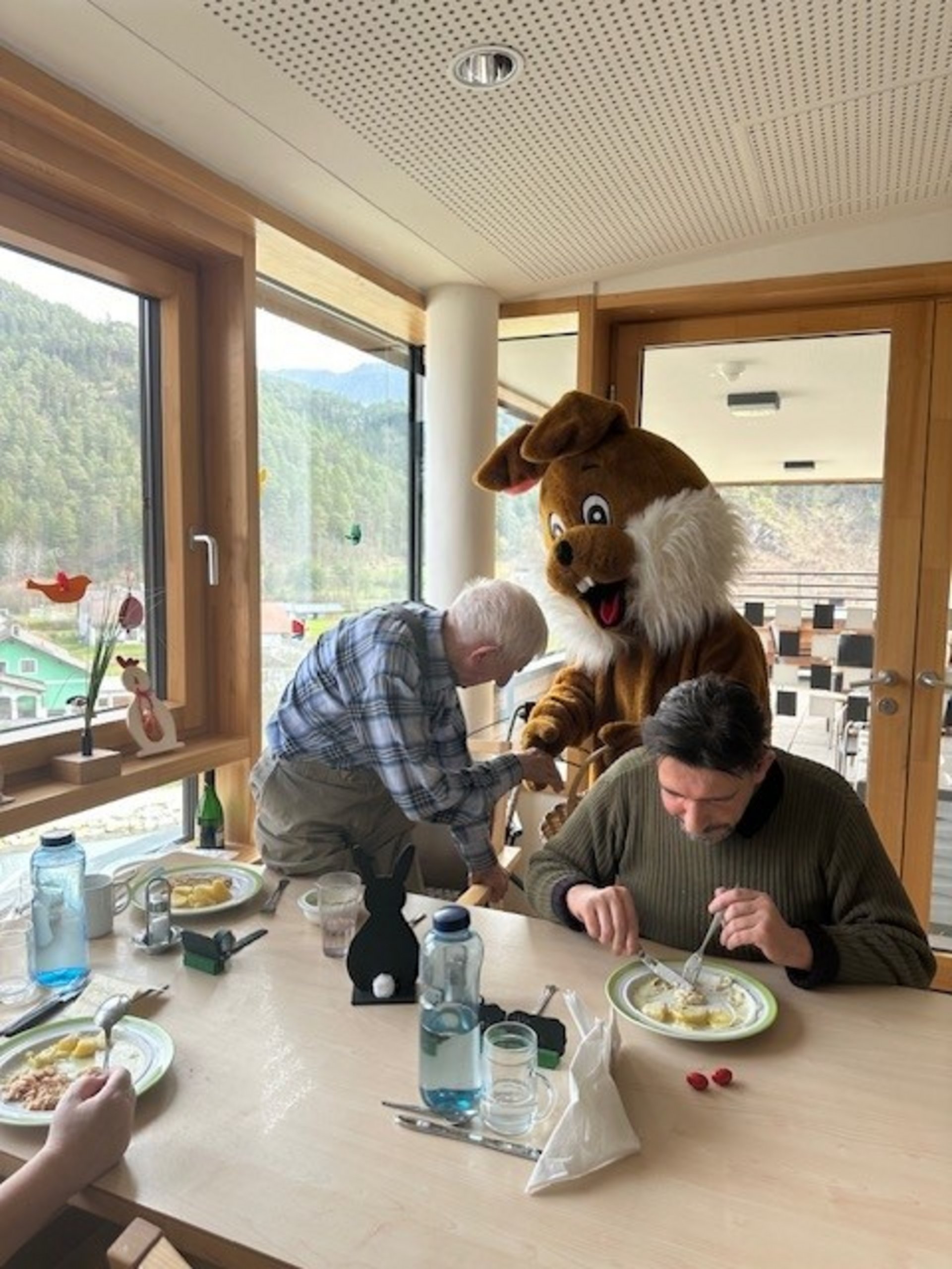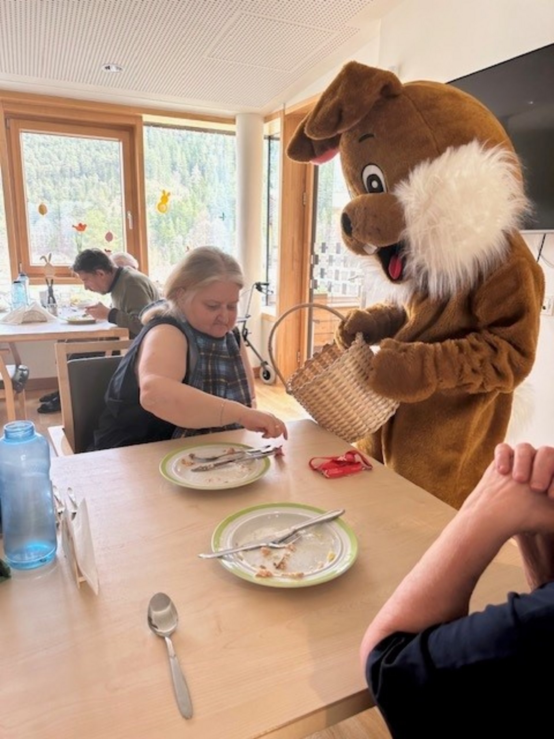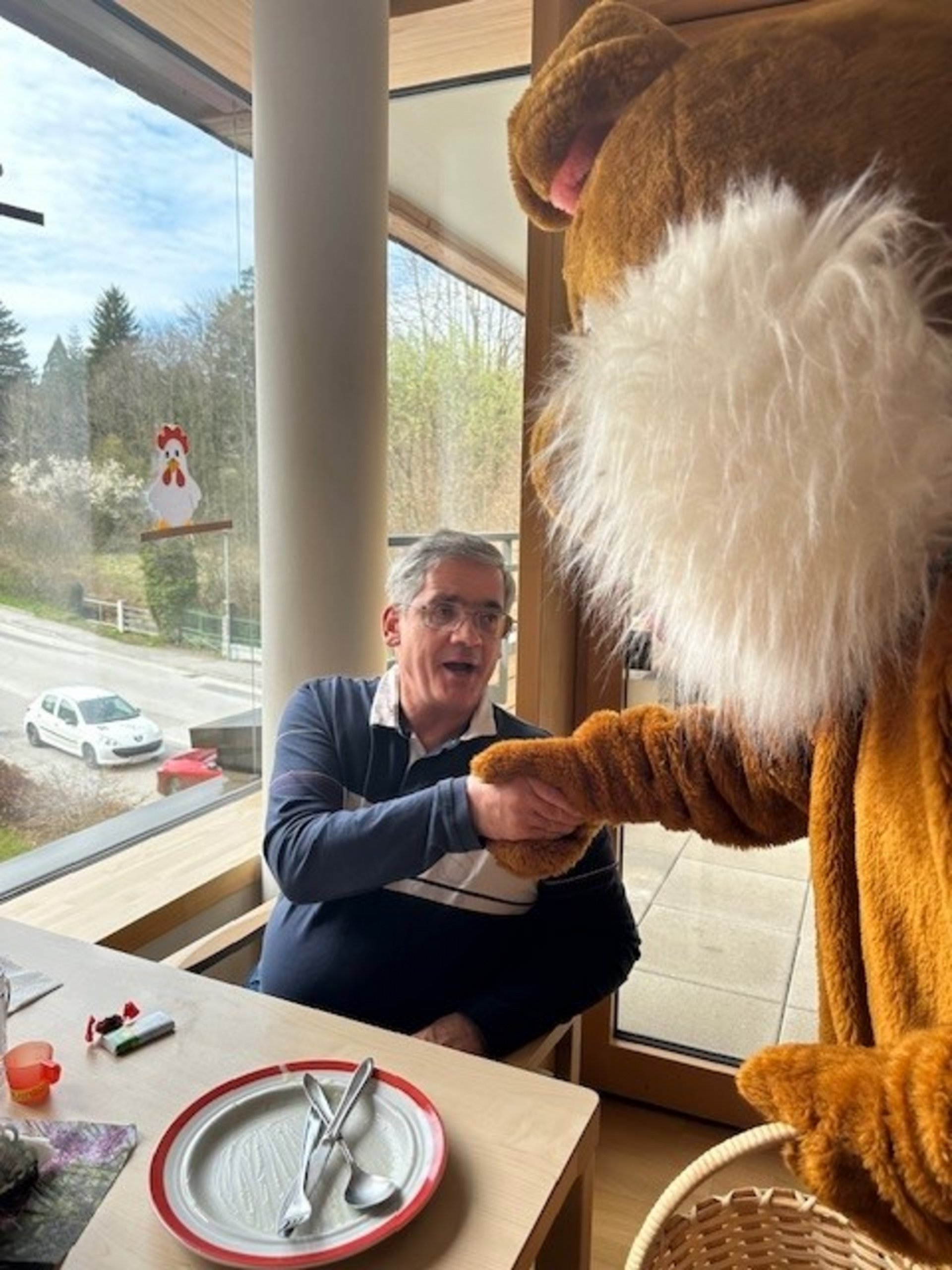 Wer hoppelt denn da durchs PBZ? Der Osterhase! Er besuchte unsere Bewohnerinnen und Bewohner und schenkte ihnen, sowie unseren Mitarbeiterinnen und Mitarbeitern eine kleine Aufmerksamkeit, denn nicht nur Kinder freuen sich auf ihn!