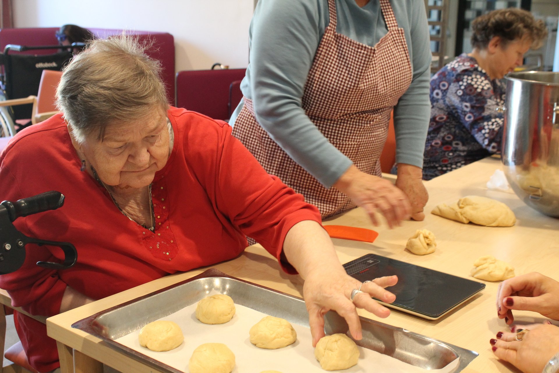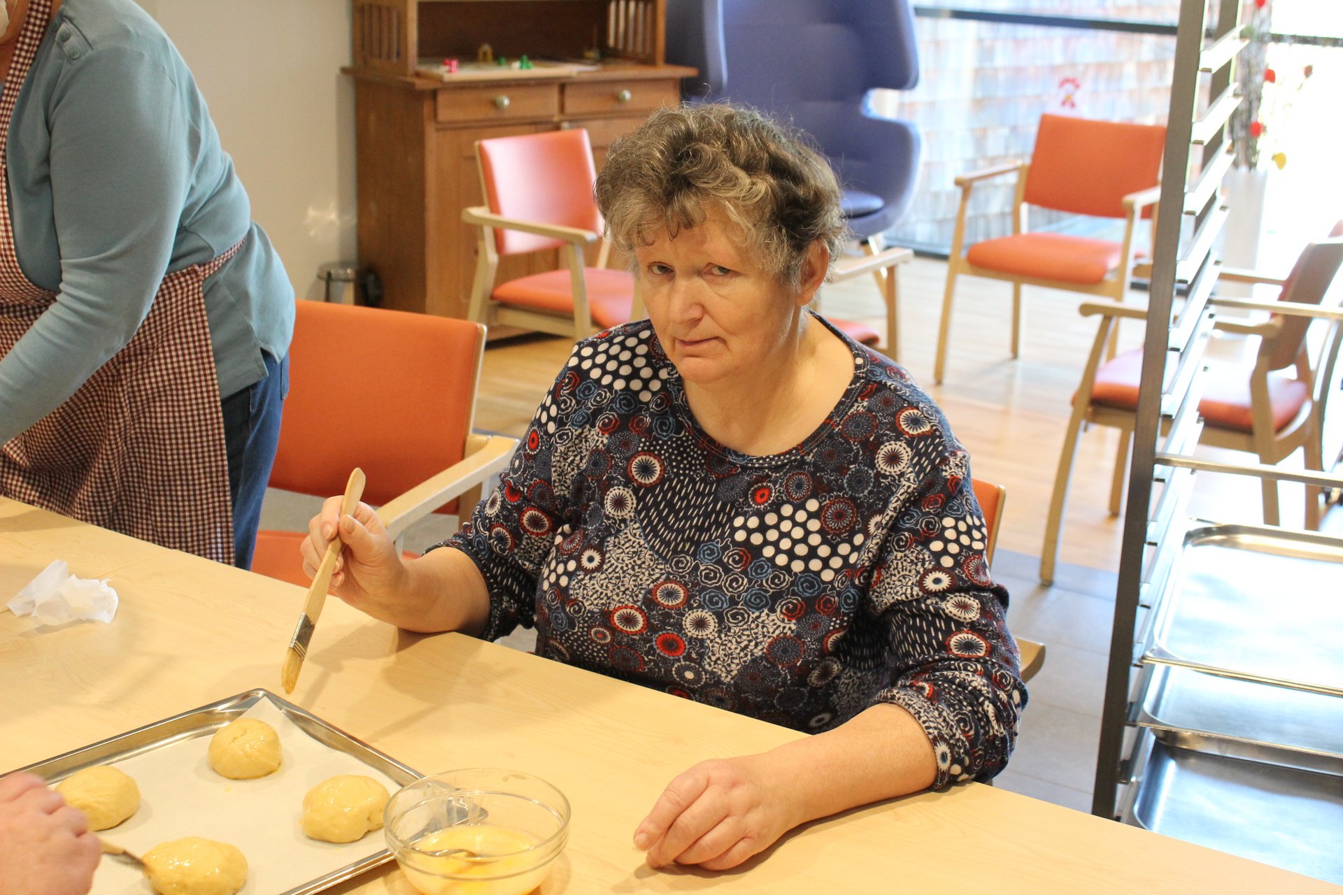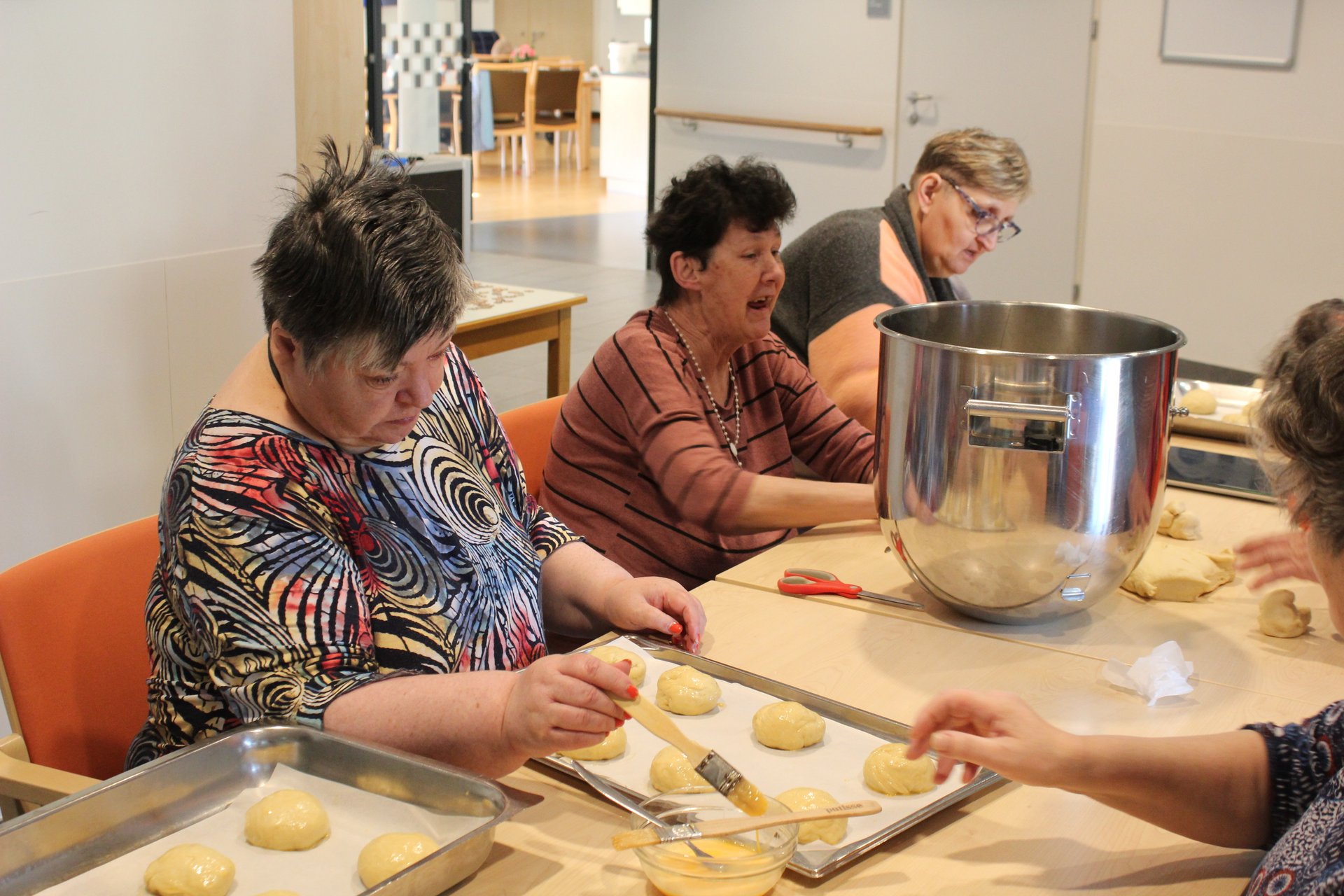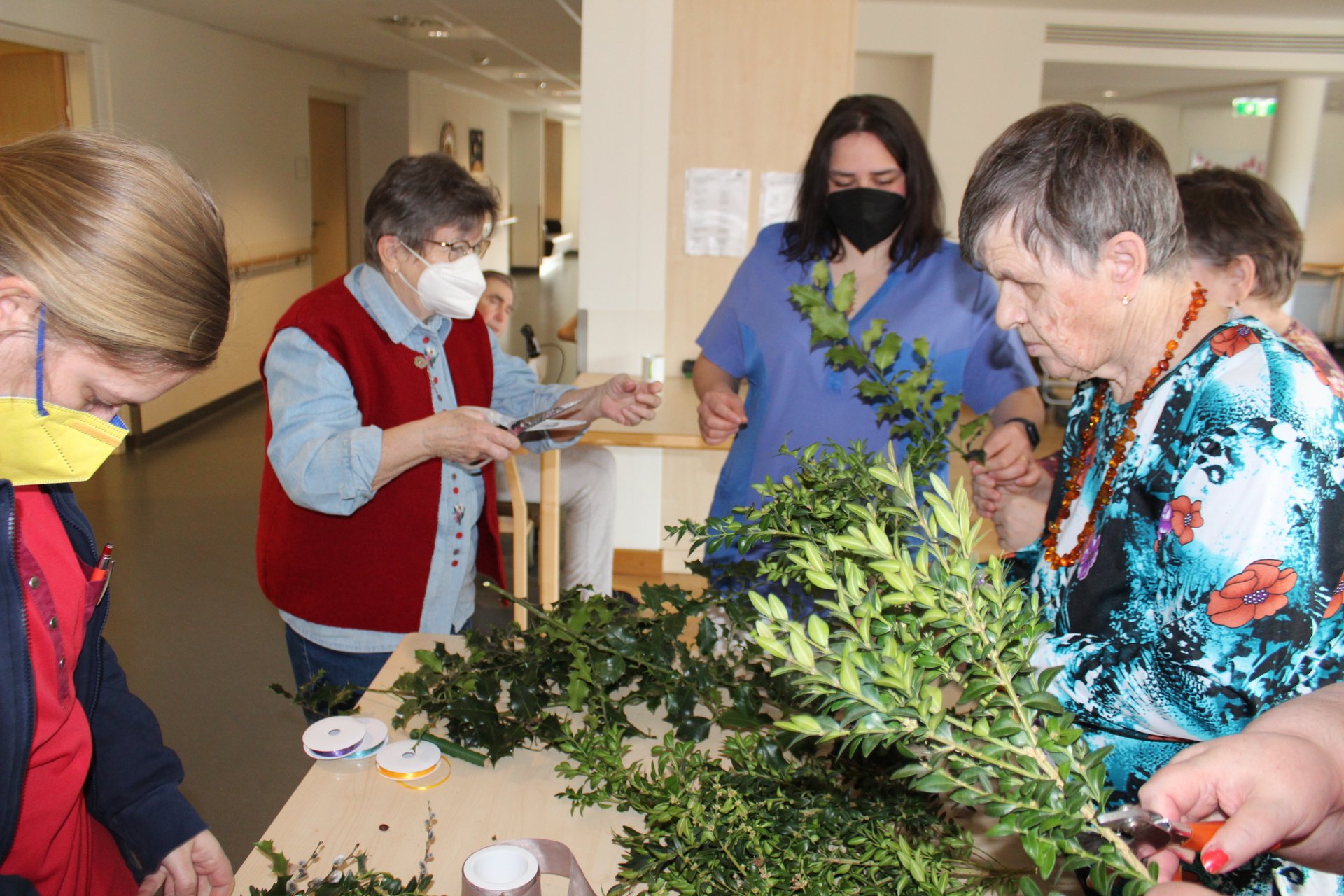 Beim Palmbuschen binden, Ostereier färben und Pinzen backen, kamen unsere Bewohnerinnen und Bewohner in Osterstimmung. Es wurde viel gelacht, gequatscht und auch gearbeitet, um allen ein schönes Osterfest zu bereiten.