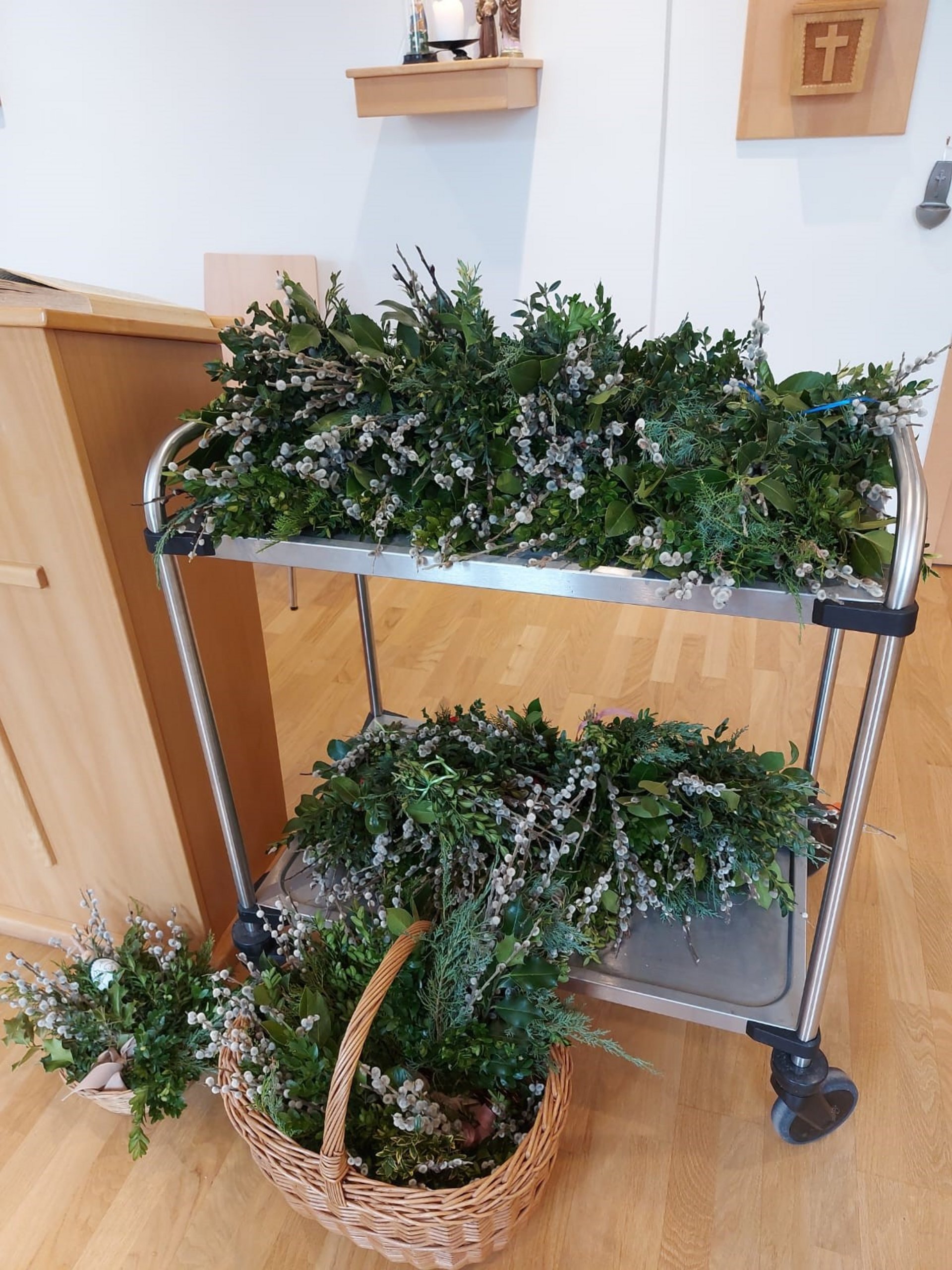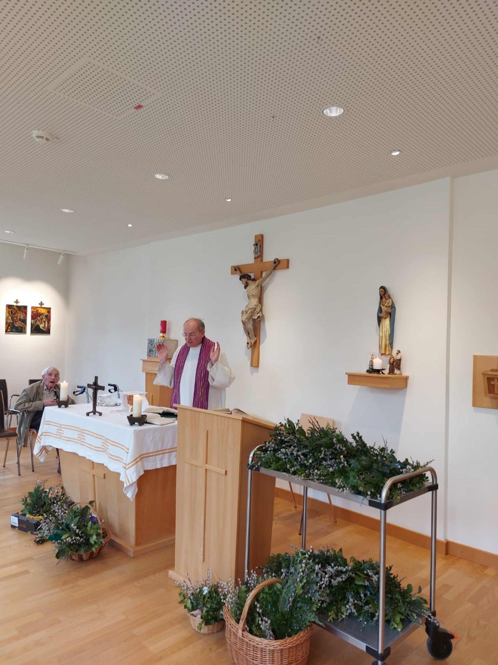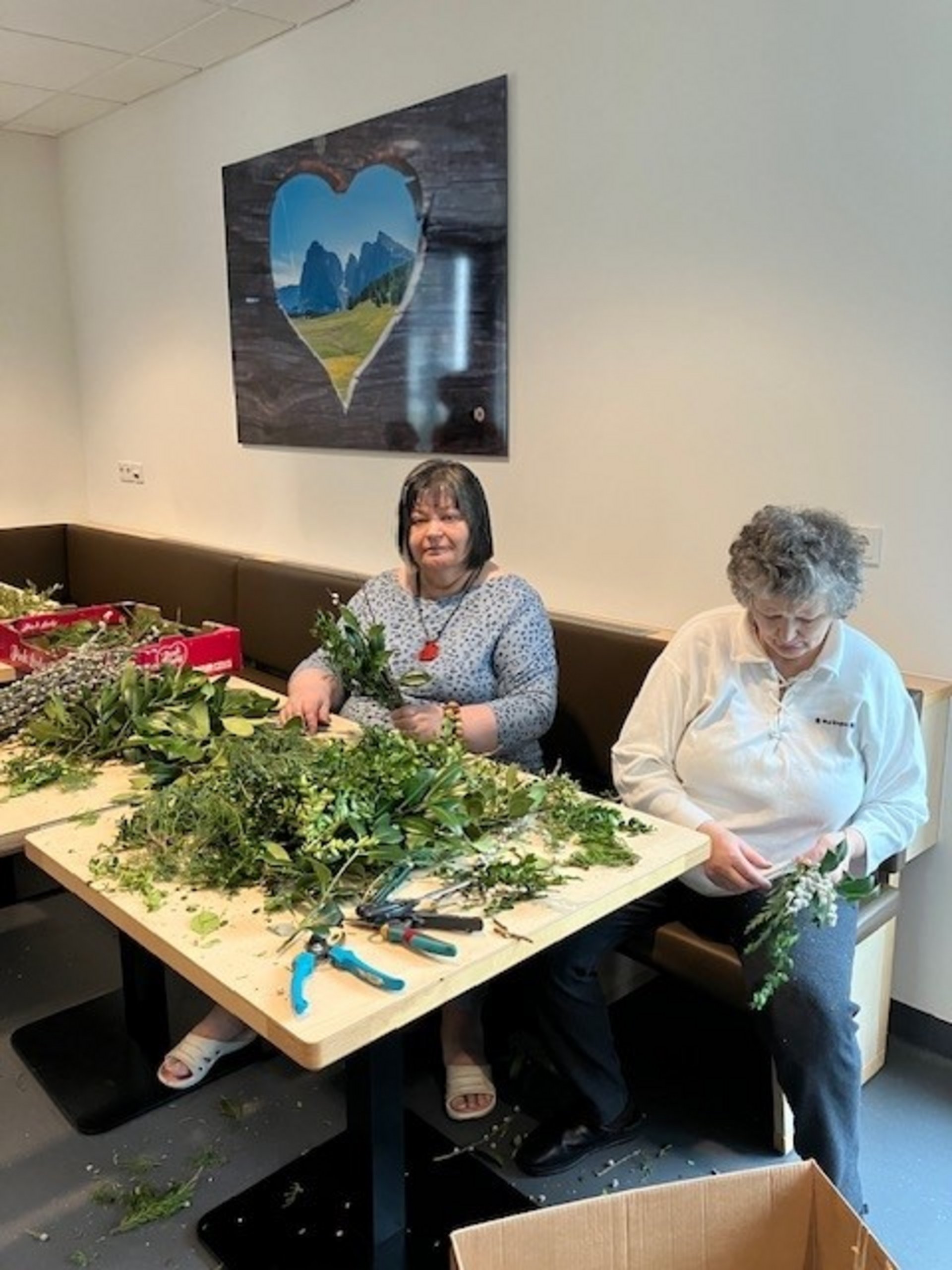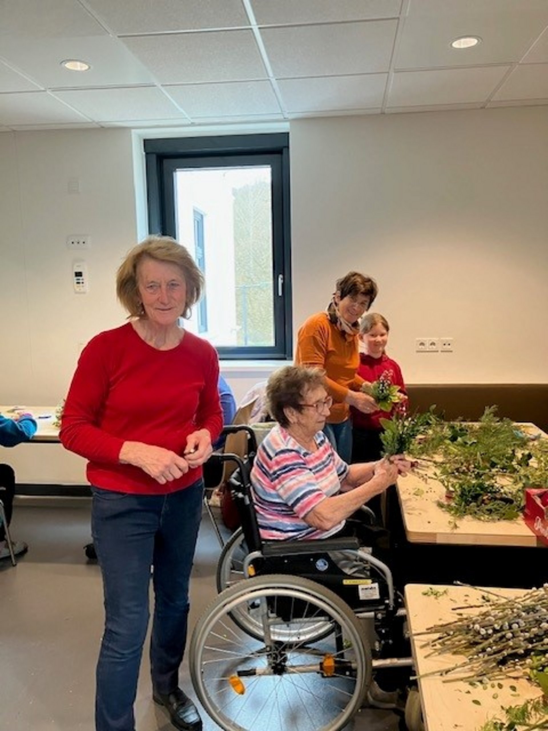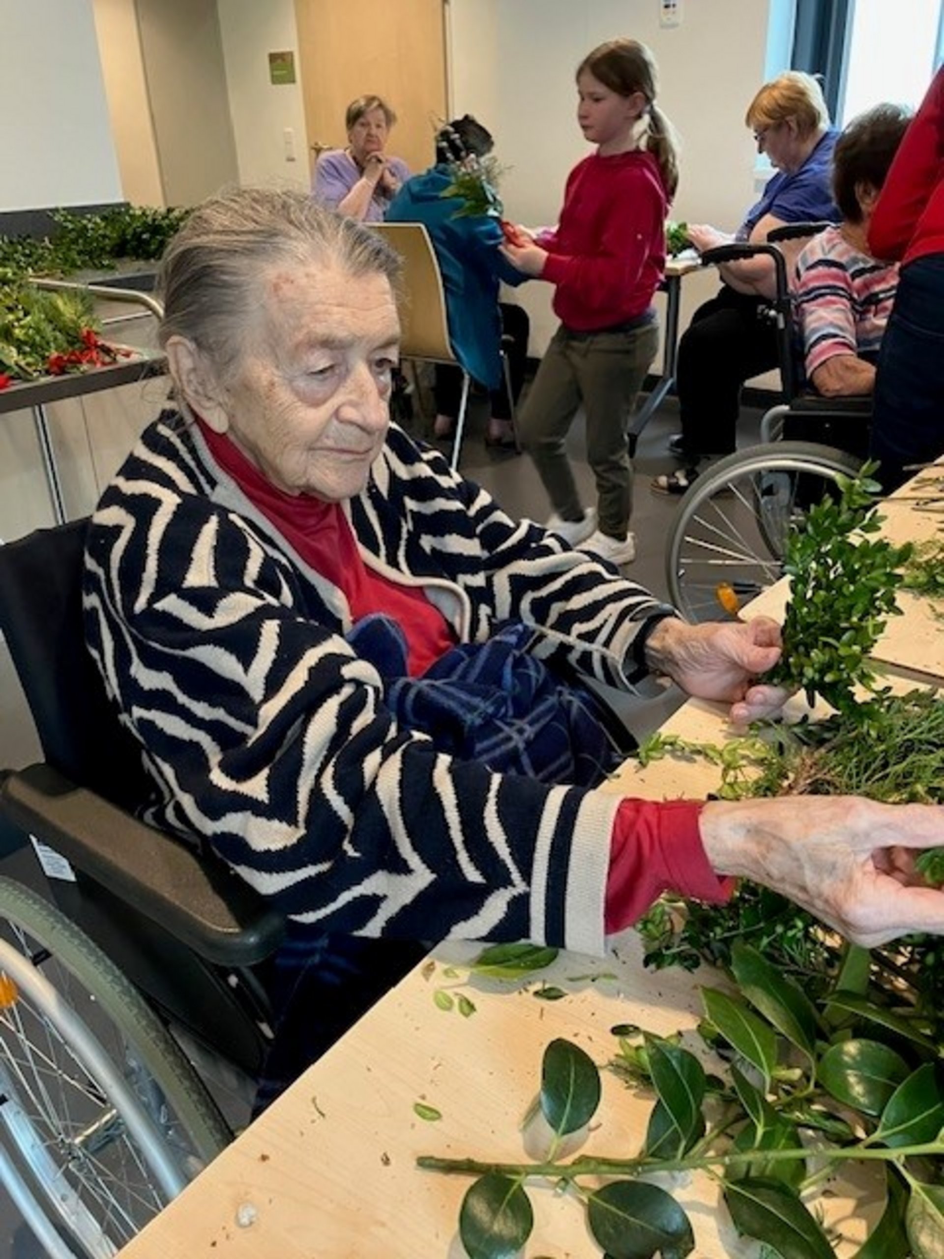 Mit viel Geschick und Liebe zum Detail wurden Palmbuschen gebunden. Dabei kamen klassische Palmkätzchen, Buchsbaum und andere frühlingshafte Zweige zum Einsatz. Die fertigen Palmbuschen wurden im feierlichen Rahmen in unserer hauseigenen Kapelle geweiht – ein besinnlicher Moment, der vielen sehr am Herzen lag und die Vorfreude auf das Osterfest noch verstärkte.