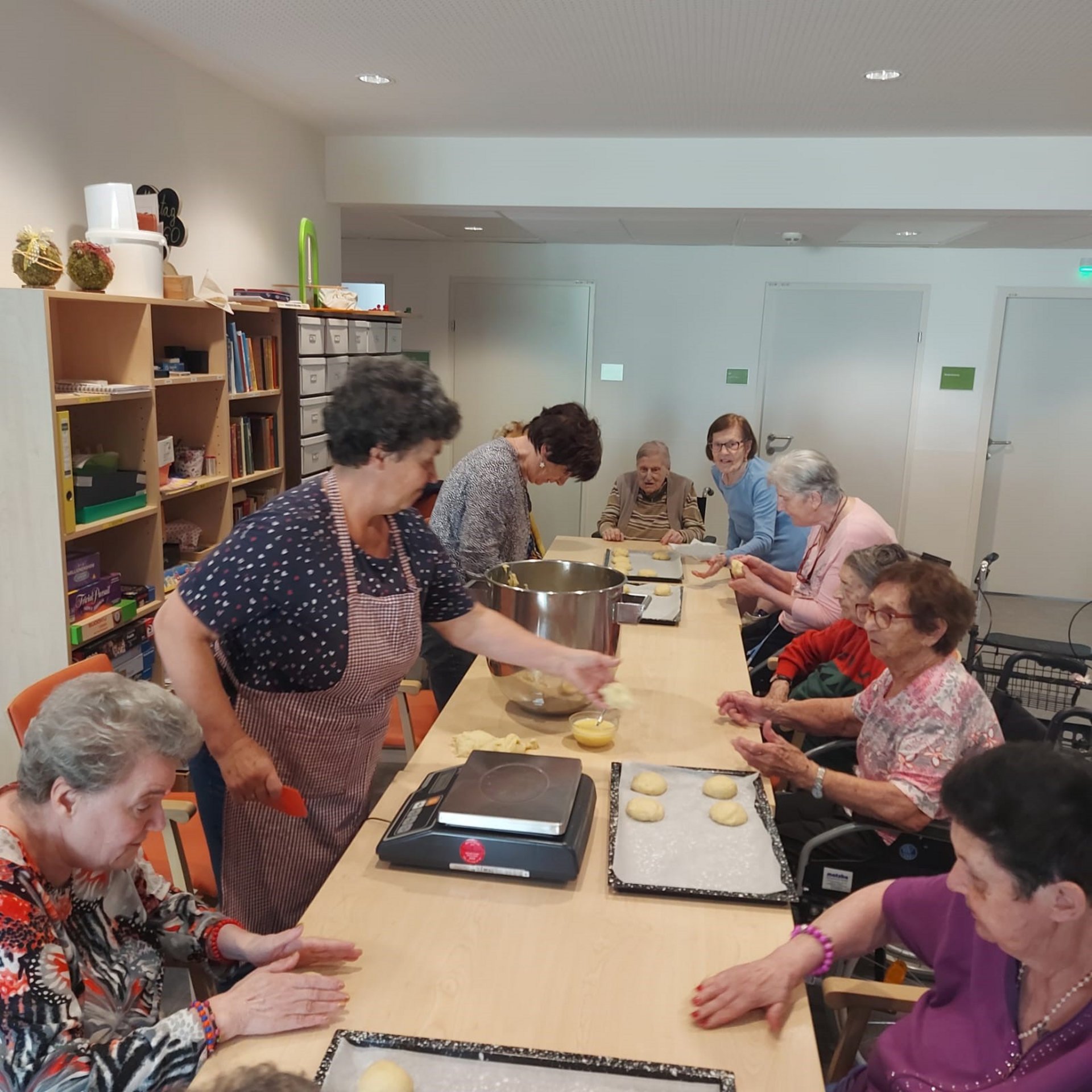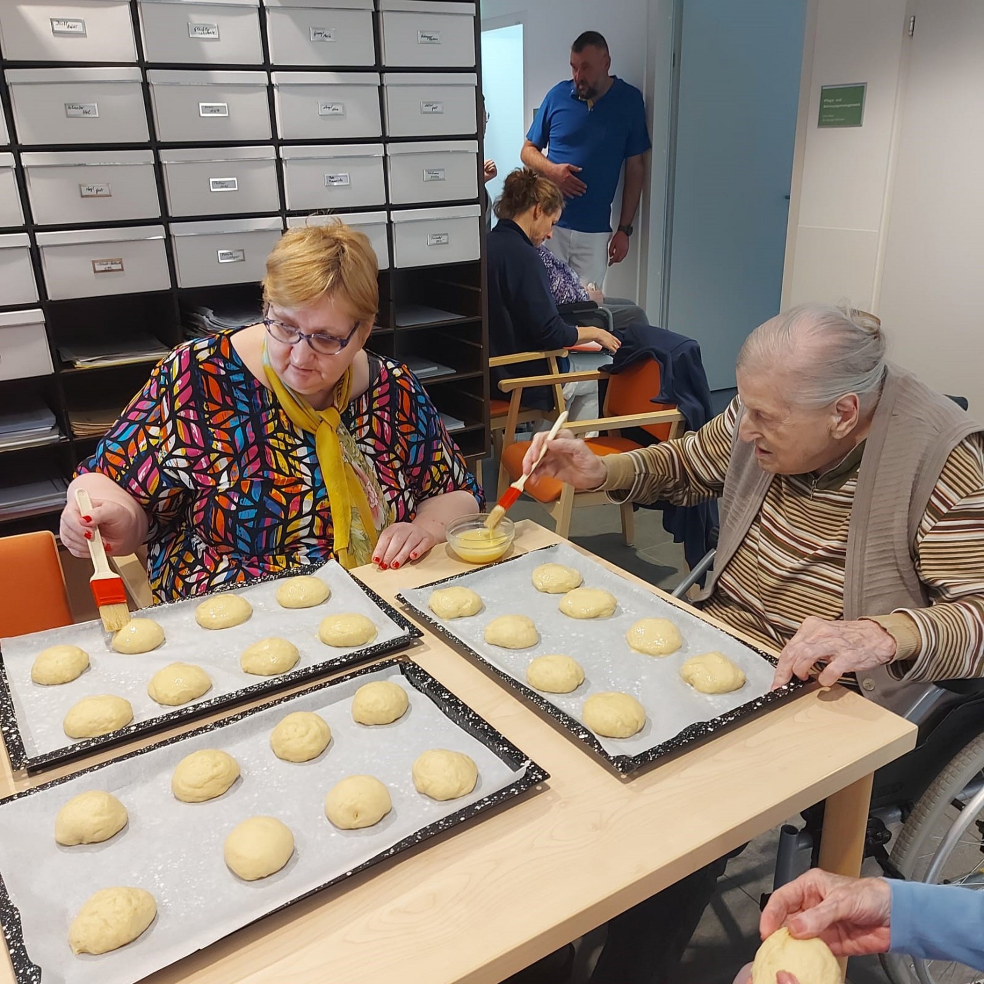 Ein weiteres Highlight war das gemeinsame Backen der traditionellen Osterpinzen. Der süße Duft frisch gebackener Pinzen erfüllte das Haus und sorgte nicht nur für Vorfreude, sondern auch für ein Gefühl von Zuhause und Geborgenheit. Selbstverständlich wurde auch gleich gekostet – ein Genuss für alle Sinne!