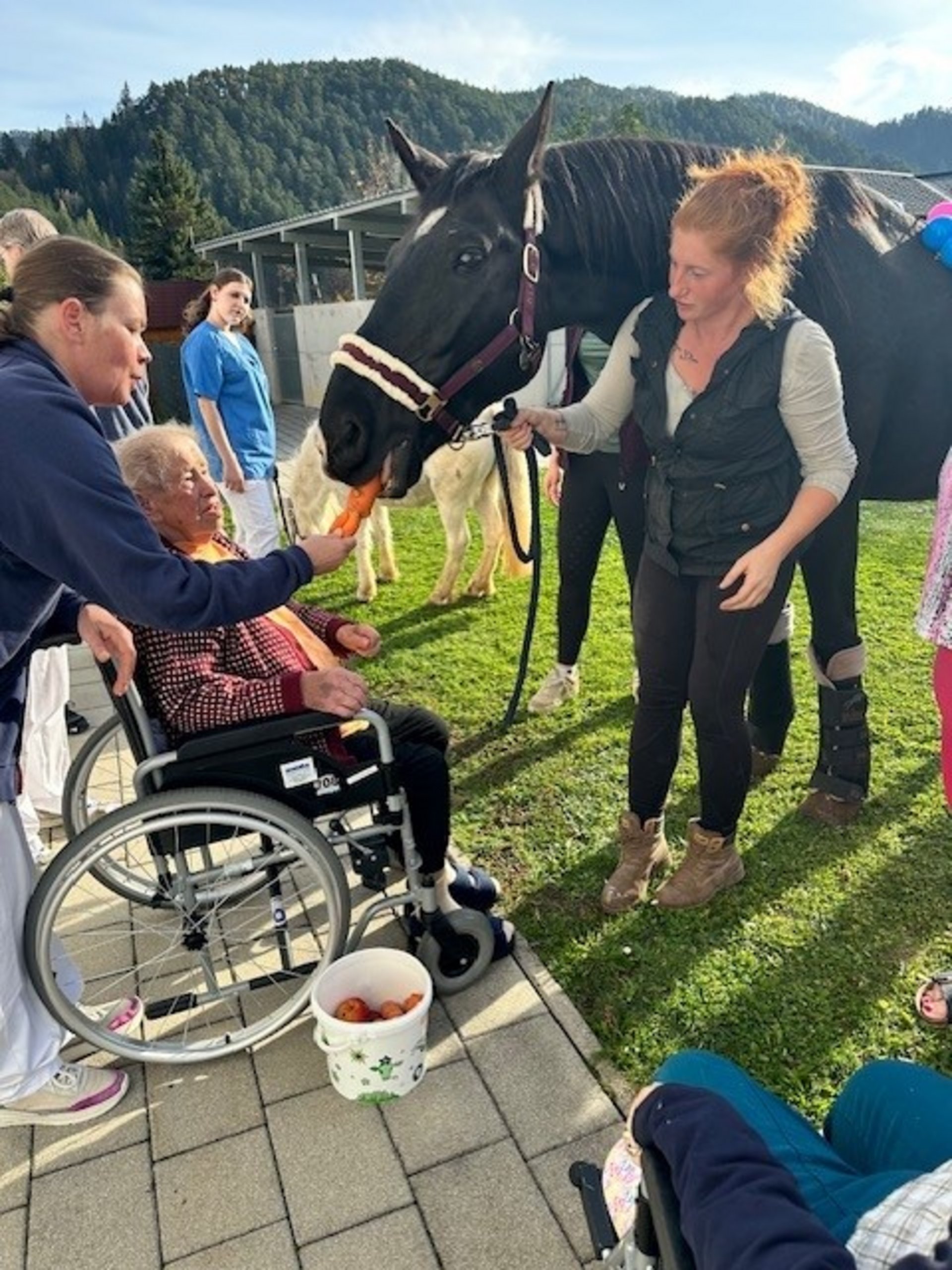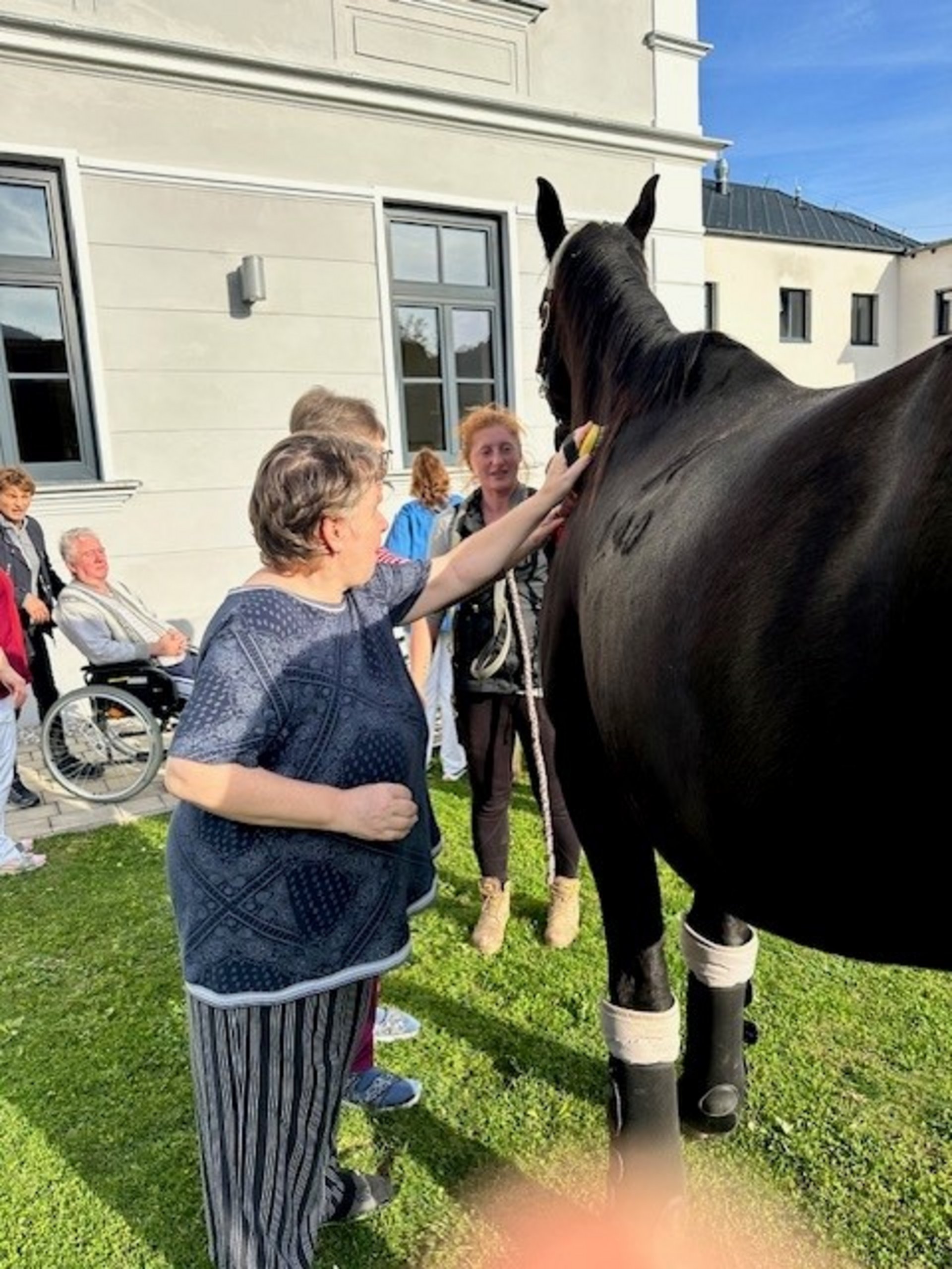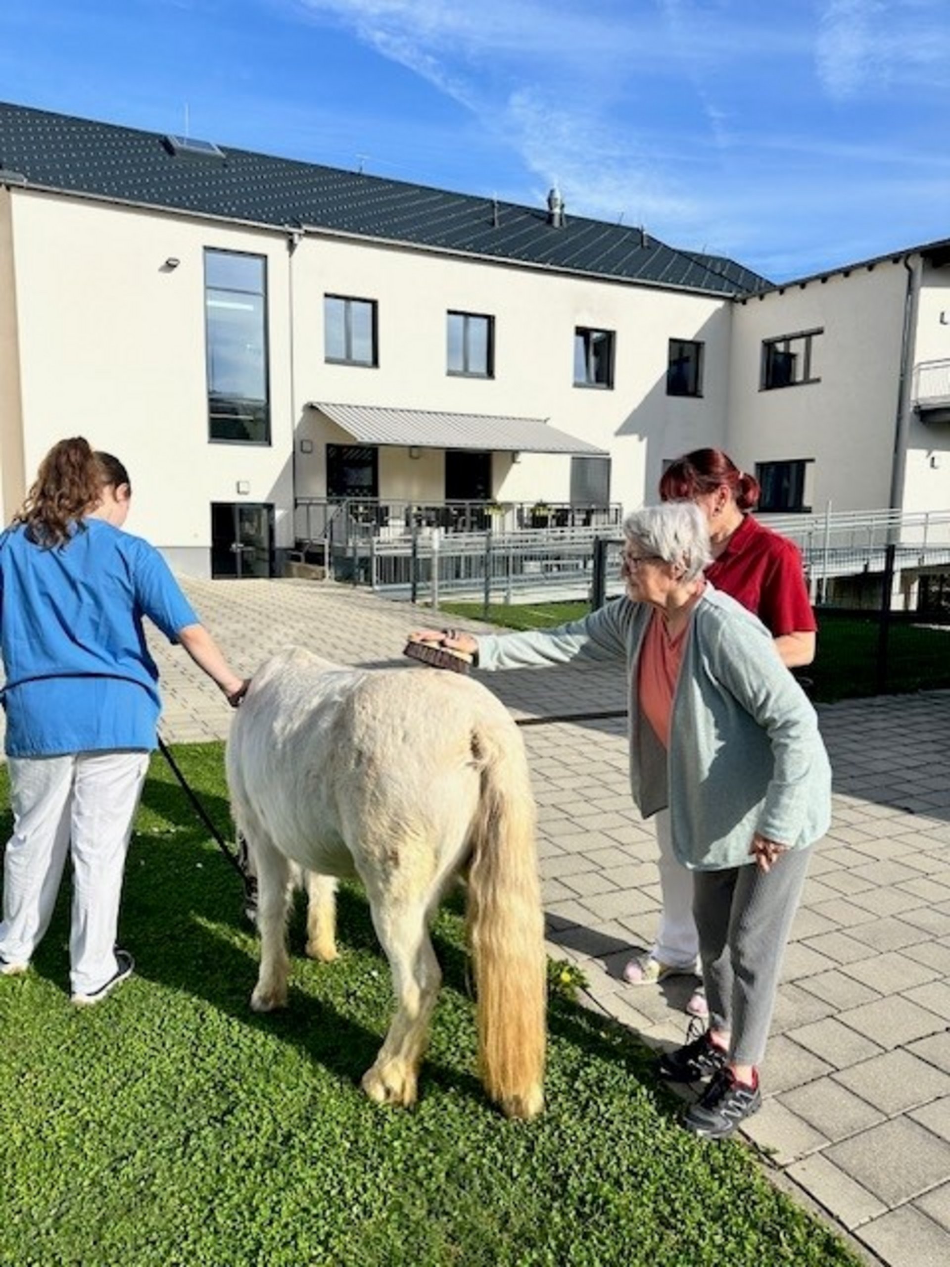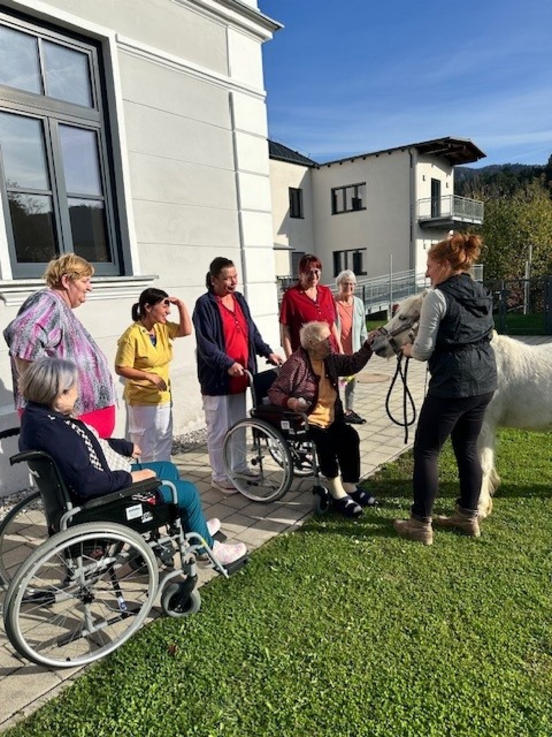 Als neues Therapiekonzept im PBZ Türnitz hat sich vor kurzem die Hippotherapie angeboten. Da eine unserer Mitarbeiterinnen in der Pflege eine Ausbildung in diesem Bereich macht, und auch privat eine "Pferdestube" leitet bei der Kinder Reitunterricht nehmen, hat es sich als sehr praktisch erwiesen, dieses Angebot auch hier im PBZ anzunehmen. Unsere Bewohnerinnen und Bewohner sind genauso begeistert über den tierischen Besuch wie unsere Mitarbeiterinnen und Mitarbeiter.