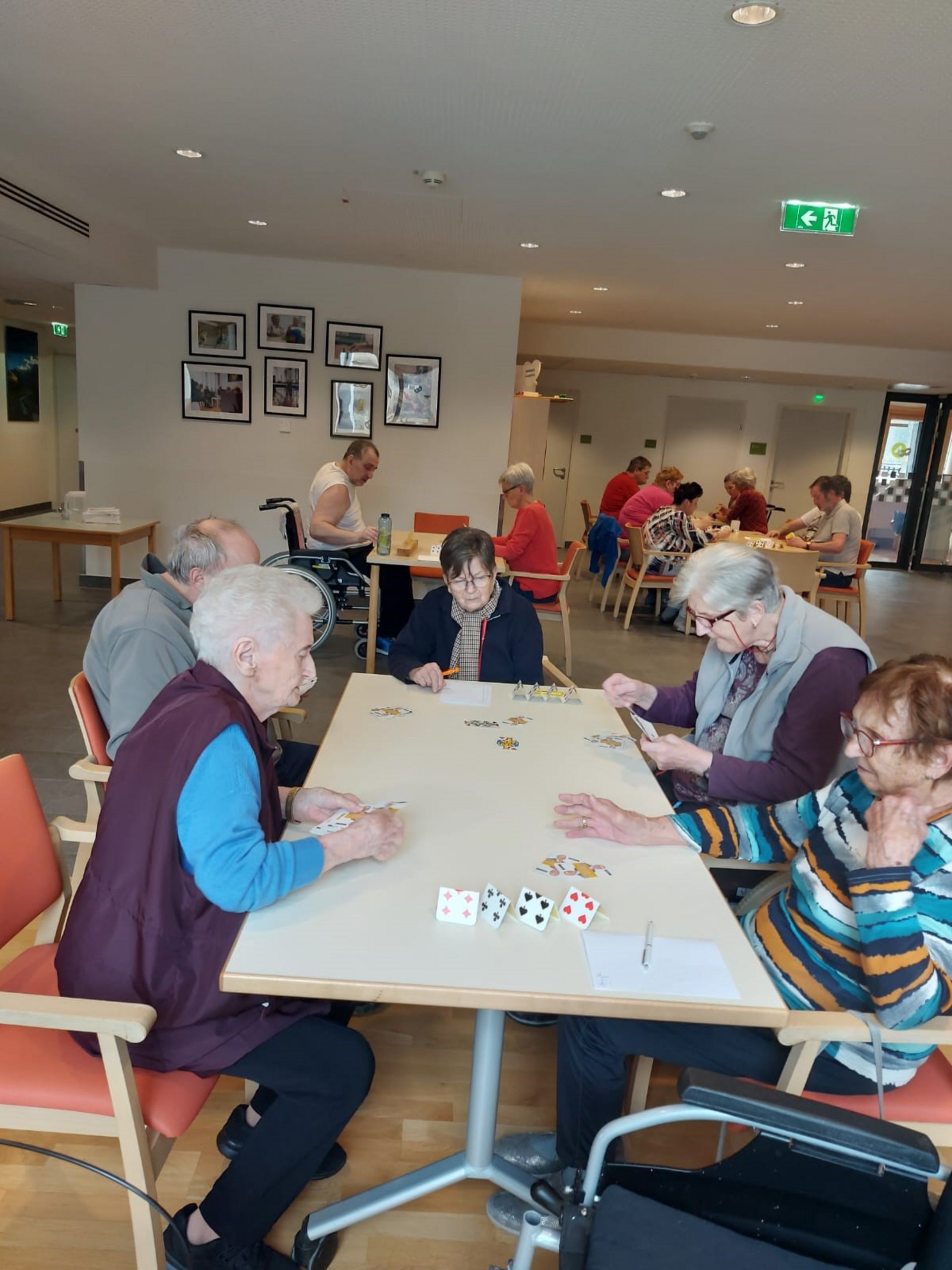 Vergangene Woche war es wieder soweit: Unser alljährliches Schnapserturnier sorgte für beste Stimmung im Pflegezentrum! Bewohnerinnen und Bewohner sowie Mitarbeiterinnen und Mitarbeiter trafen sich in geselliger Runde, um ihr Können beim beliebten Kartenspiel unter Beweis zu stellen.