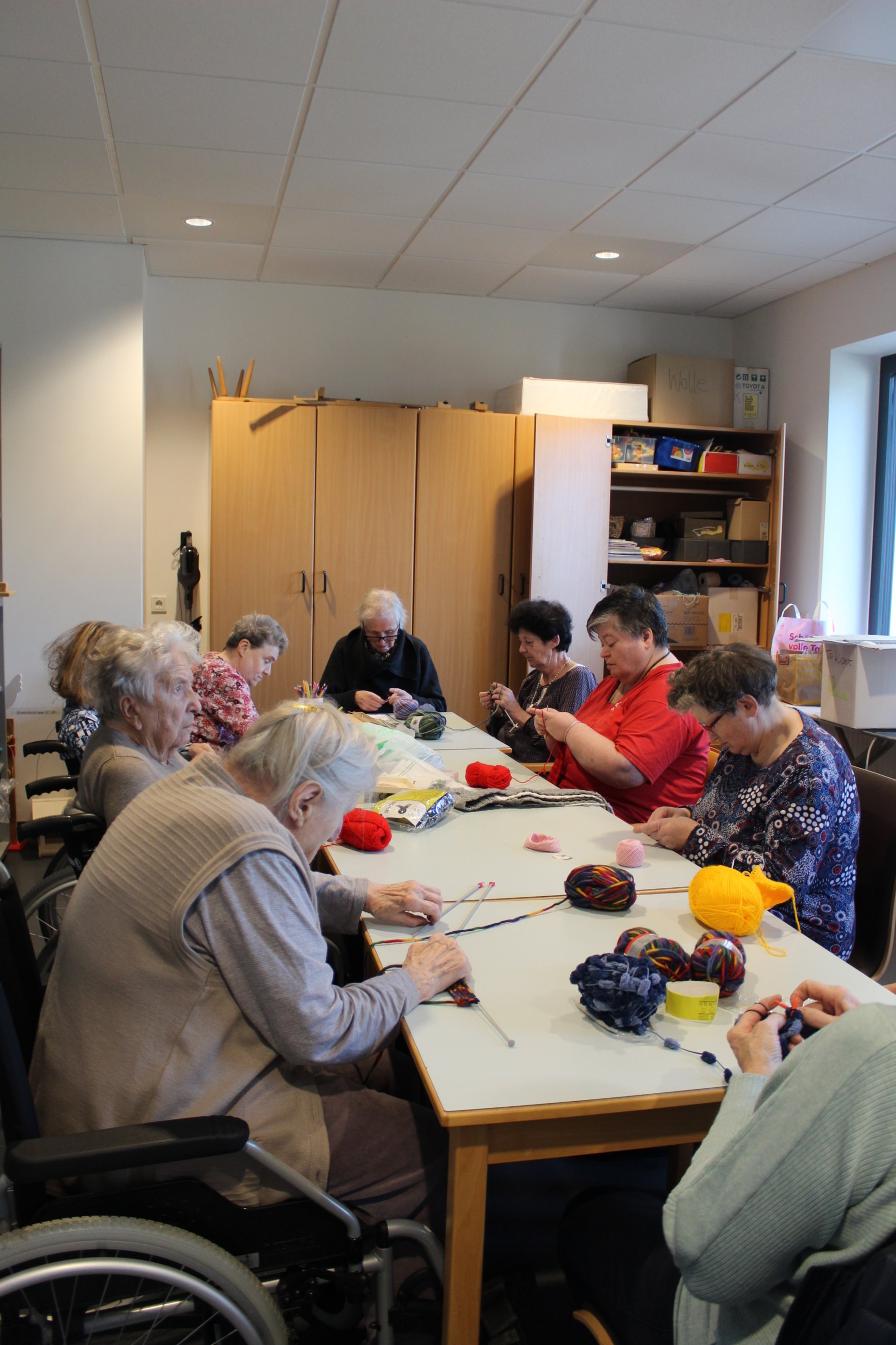 Unsere ehrenamtlichen Mitarbeiter/innen haben sich wieder eine neue und interessante Beschäftigung für unsere Bewohner einfallen lassen: Seit diesem Jahr gibt es dienstags einen Strickvormittag, bei dem die ehrenamtlichen Mitarbeiterinnen Fr. Wutzel Helga und Fr. Bichl Heidi unsere Bewohner/innen bei diversen Strickarbeiten unterstützen. So können unsere Bewohner/innen bei entspannter Atmosphäre ihre motorischen Fähigkeiten verbessern und gleichzeitig einen Vormittag mit Plauderei genießen.