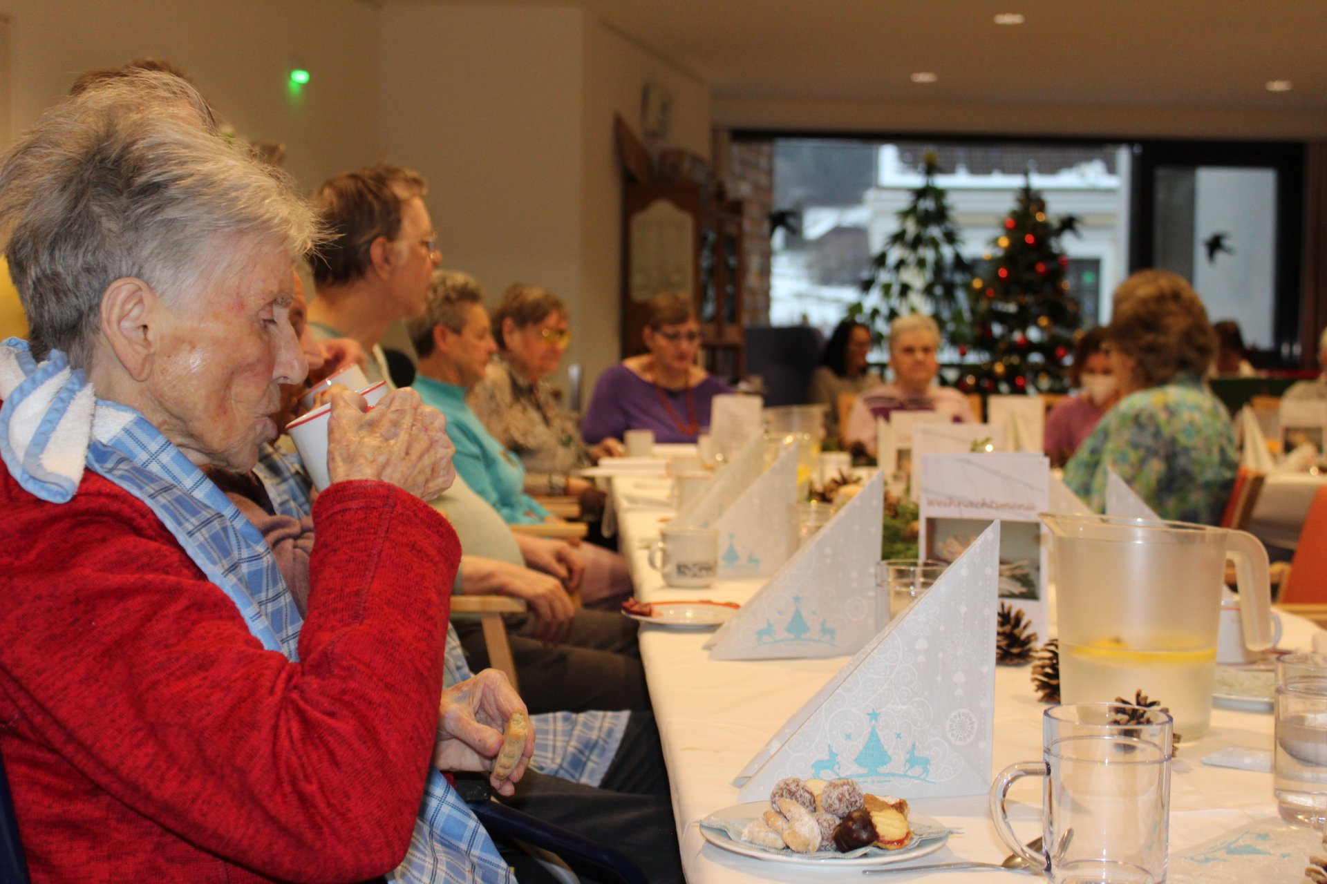 Wie jedes Jahr feierten unsere BewohnerInnen und MitarbeiterInnen wieder eine große, gemeinsame Weihnachtsfeier. Mit weihnachtlichen Liedern, Gedichten und Geschichten wurde ein gemütliches Festessen untermalt.