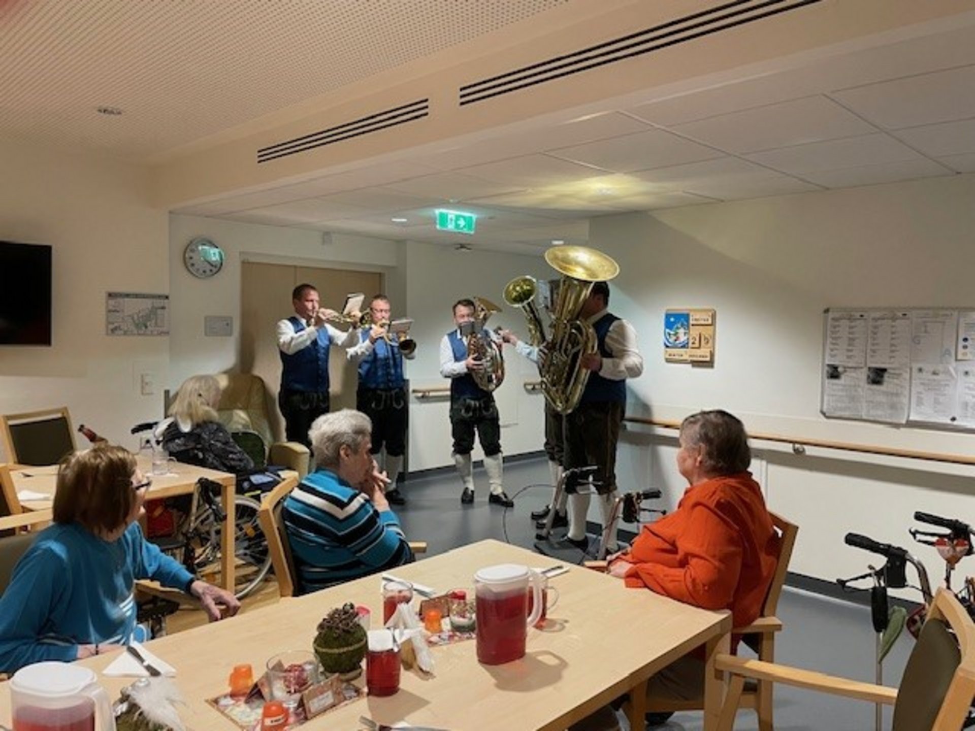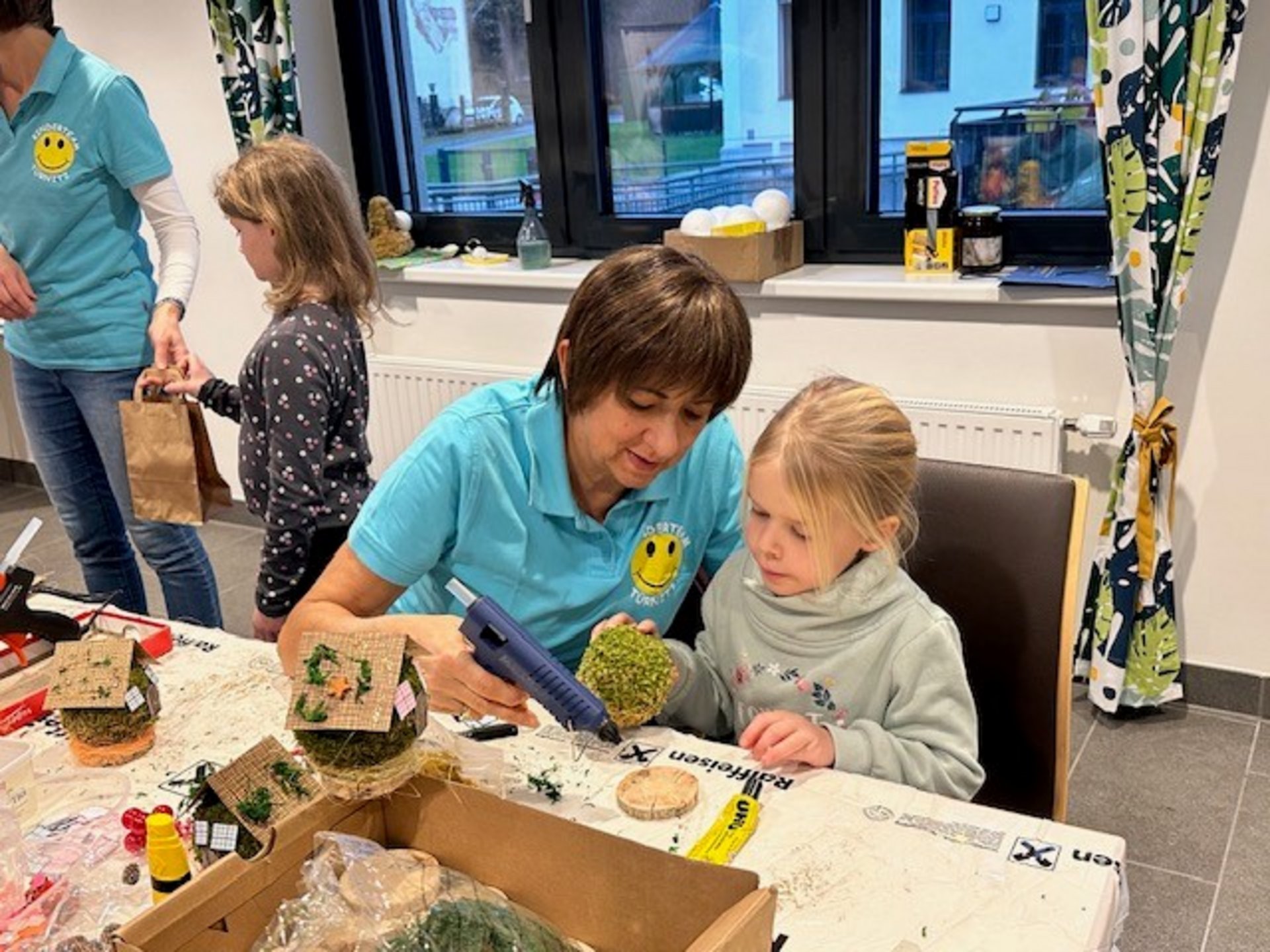 Das abwechslungsreiche Programm, welches im Raba Café, im Bewohnerhaus und im Außenbereich stattfand, lockte viele unserer Bewohnerinnen und Bewohner, sowie deren Angehörige auf den Markt. Doch nicht nur die genossen die angenehme und ungezwungene Atmosphäre, sondern auch viele Gäste aus der Umgebung erkundeten die Stände und stärkten sich schließlich im Raba Café bei Kaffee und Kuchen. Die Kinder freuten sich über die nette Betreuung des Kinderteams und bastelten, natürlich mit etwas Unterstützung, kleine Häuschen aus Moos, Englein aus Pfeifenreinigern oder auch Schneemänner. So konnten die Erwachsenen die Klänge des Tennenberger Viergesangs und der Turmbläser der Trachtenkapelle Türnitz genießen.