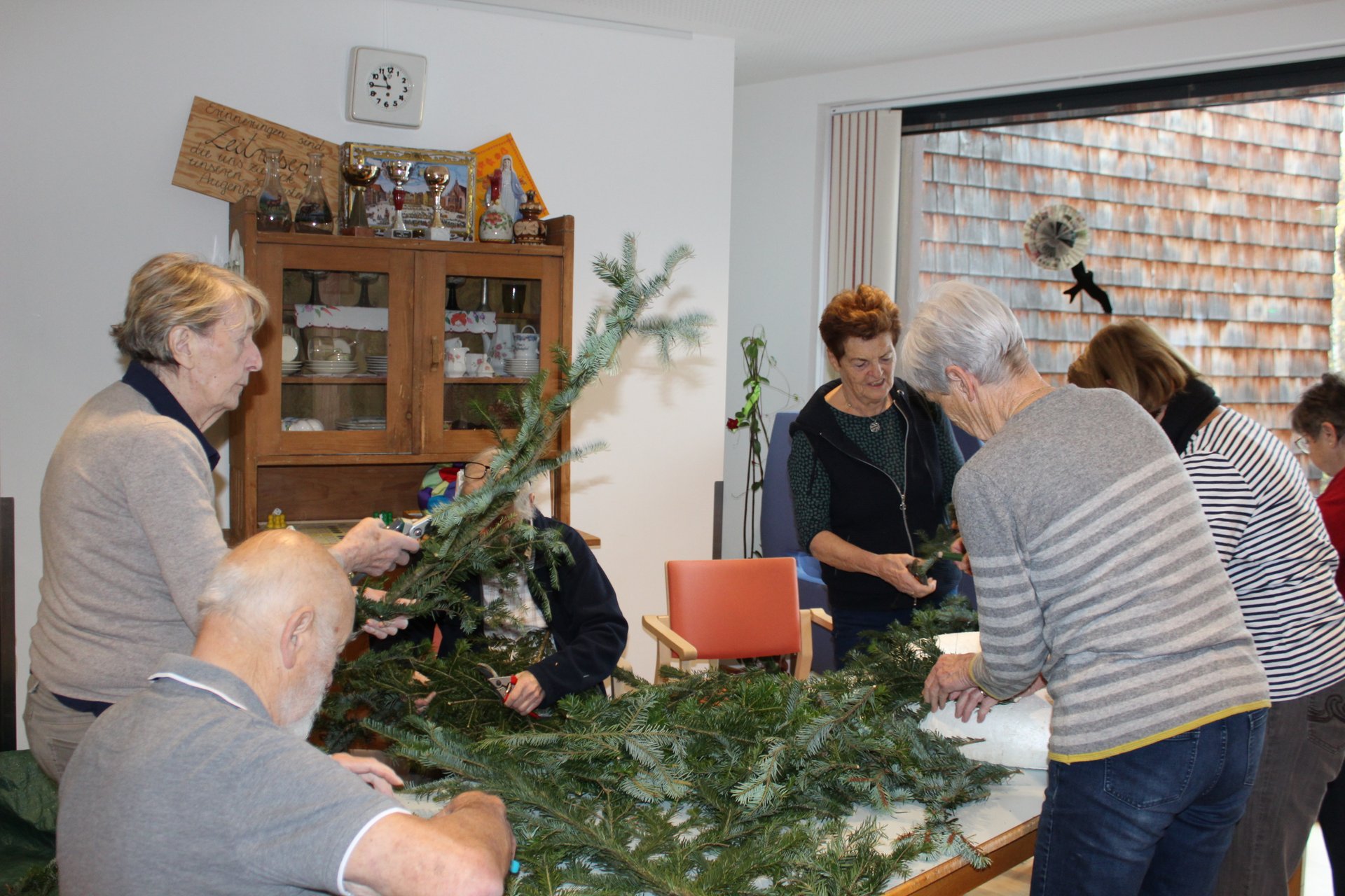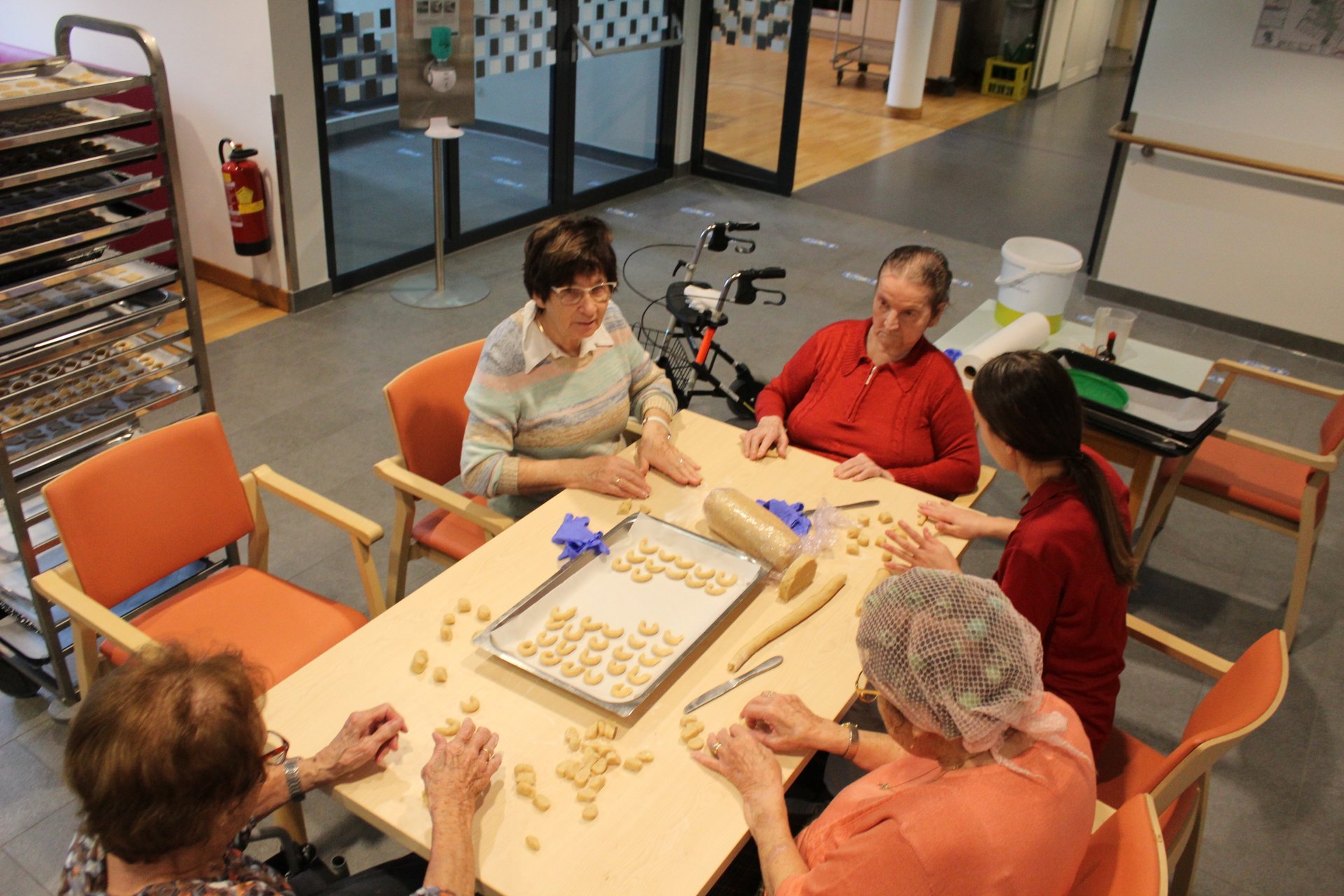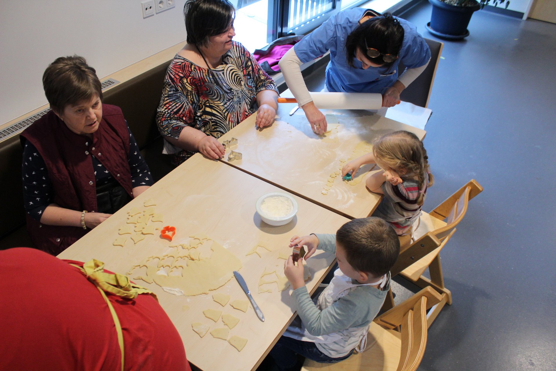 Bereits im November bereiteten sich unsere Bewohnerinnen und Bewohner auf Weihnachten vor. Mit Hilfe der ehrenamtlichen Mitarbeiterinnen und Mitarbeiter stellten sie wunderschöne Adventtassen für die Wohngruppen her. Für den Eingangsbereich des PBZ wurde ein riesiger Adventkranz gebunden und geschmückt, so wird auch den Besucherinnen und Besuchern etwas weihnachtliche Stimmung mitgegeben. Mitte Dezember ging es dann daran sich an die kleinen Leckereien zu machen. Gemeinsam mit den Kindern der Kindergartengruppe, die in unserem Haus untergebracht ist, wurden Kekse gebacken...
