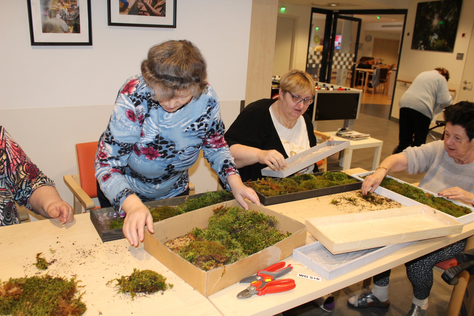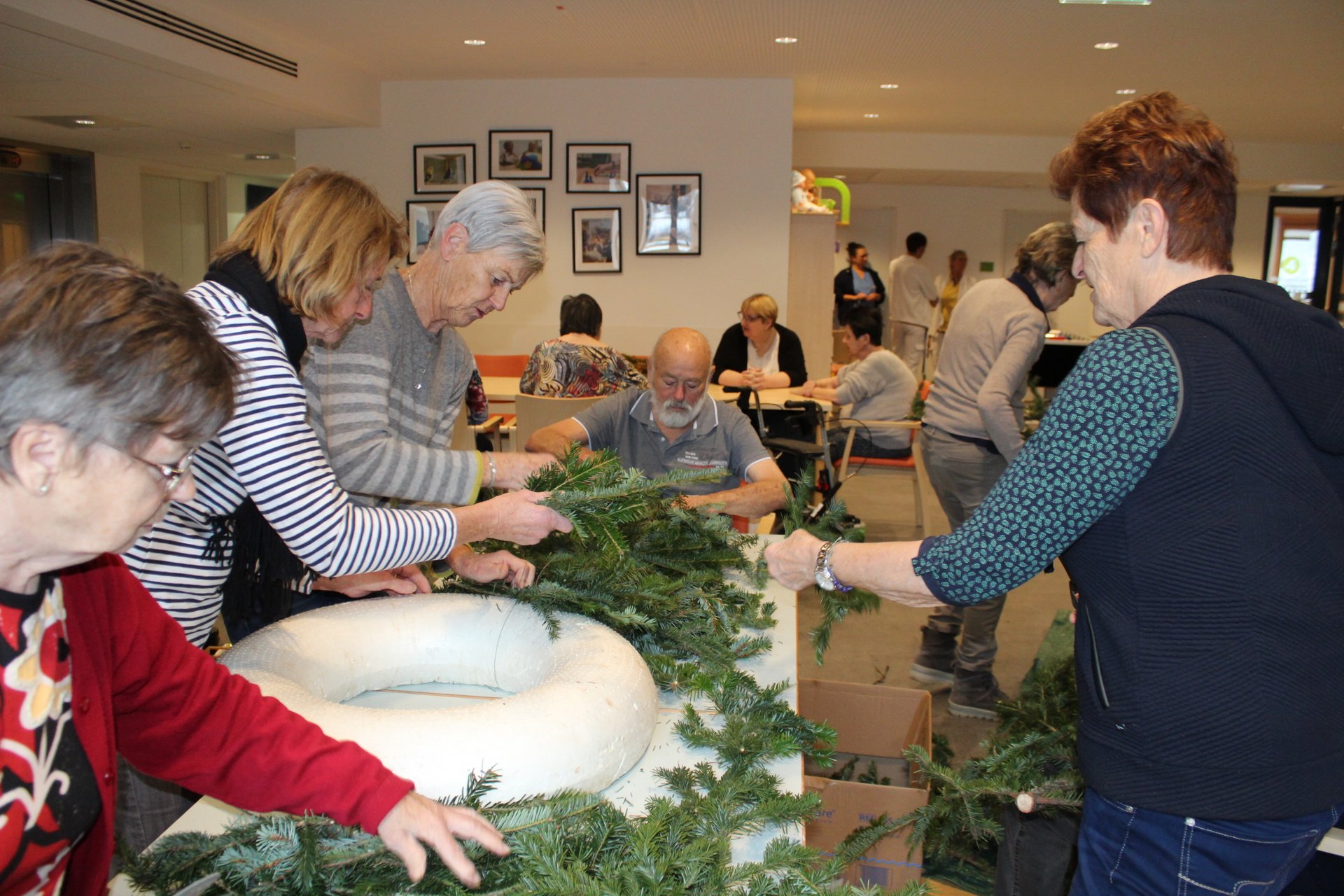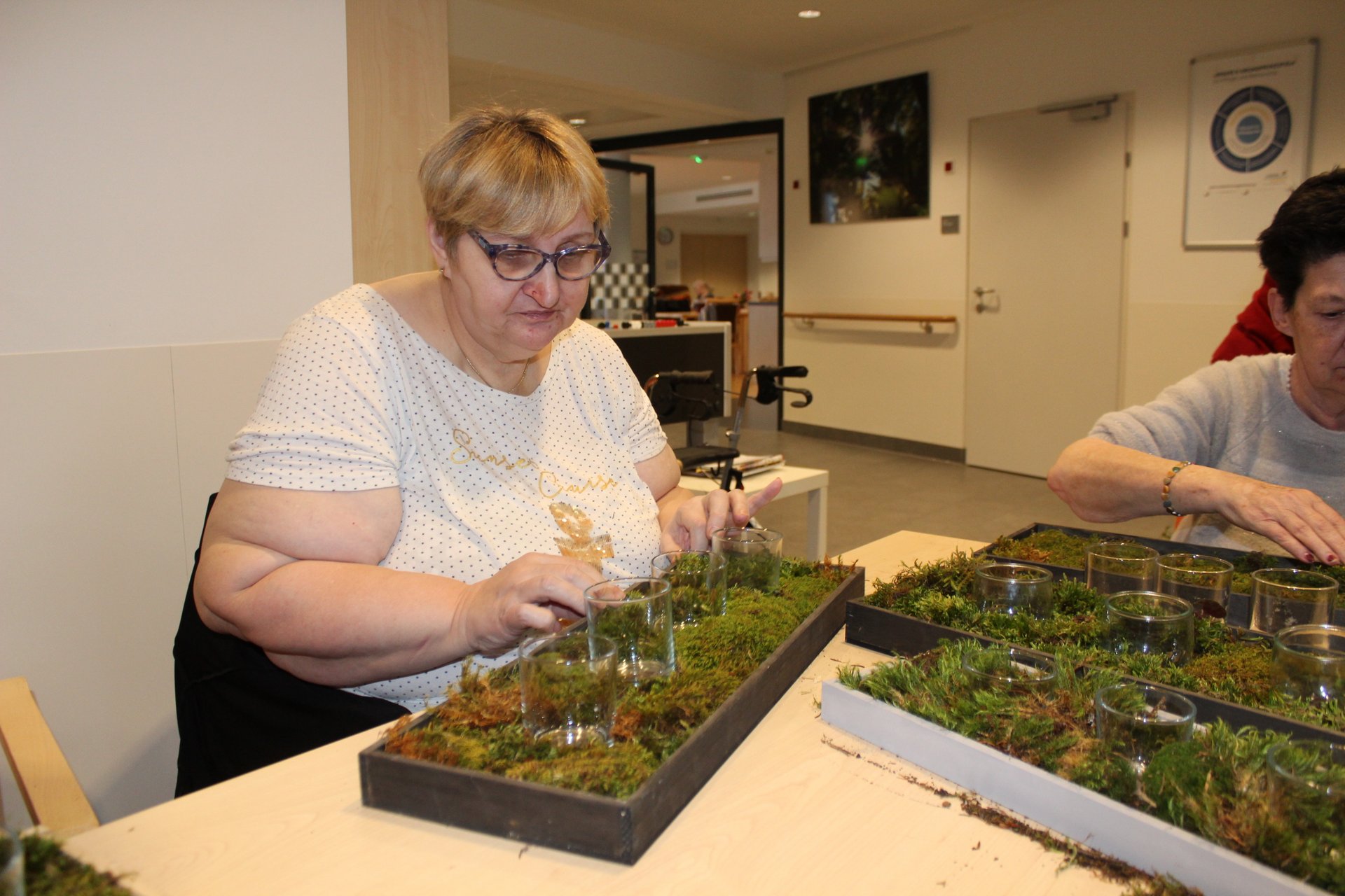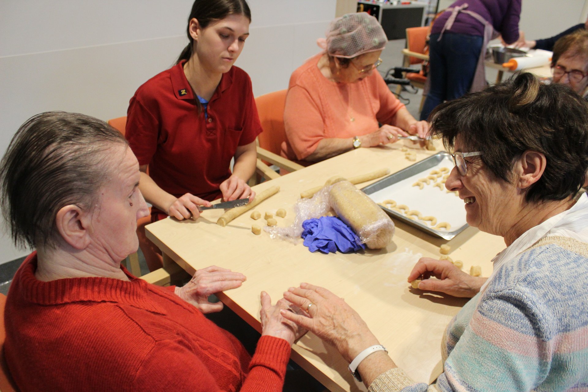 Bereits im November bereiteten sich unsere Bewohnerinnen und Bewohner auf Weihnachten vor. Mit Hilfe der ehrenamtlichen Mitarbeiterinnen und Mitarbeiter stellten sie wunderschöne Adventtassen für die Wohngruppen her. Für den Eingangsbereich des PBZ wurde ein riesiger Adventkranz gebunden und geschmückt, so wird auch den Besucherinnen und Besuchern etwas weihnachtliche Stimmung mitgegeben. Mitte Dezember ging es dann daran sich an die kleinen Leckereien zu machen. Gemeinsam mit den Kindern der Kindergartengruppe, die in unserem Haus untergebracht ist, wurden Kekse gebacken...